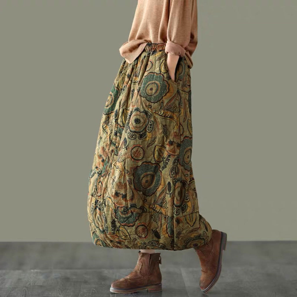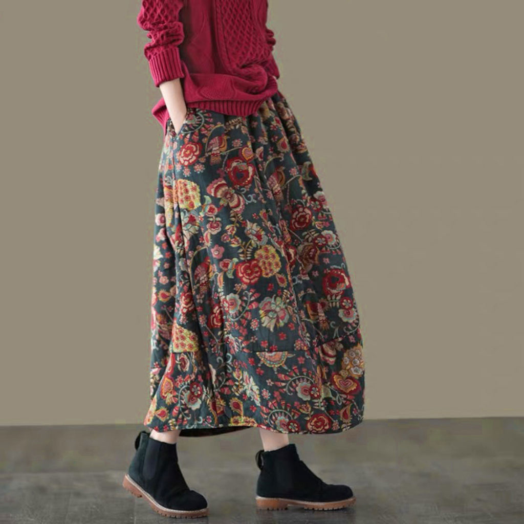 裙子 長款 秋冬 網購 A字裙 長裙 褶皺裙 最大長度裙子 蓬鬆裙 氣球裙 下裝 圖案 花卉 女士 時尚 優雅