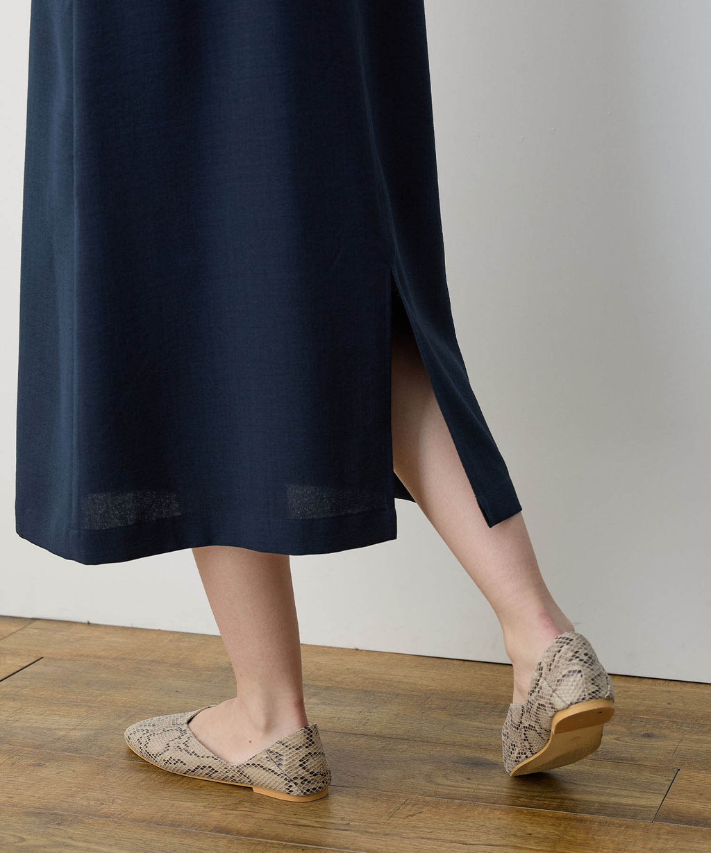 裾部設有開衩,為造型增添了輕盈感的印象。