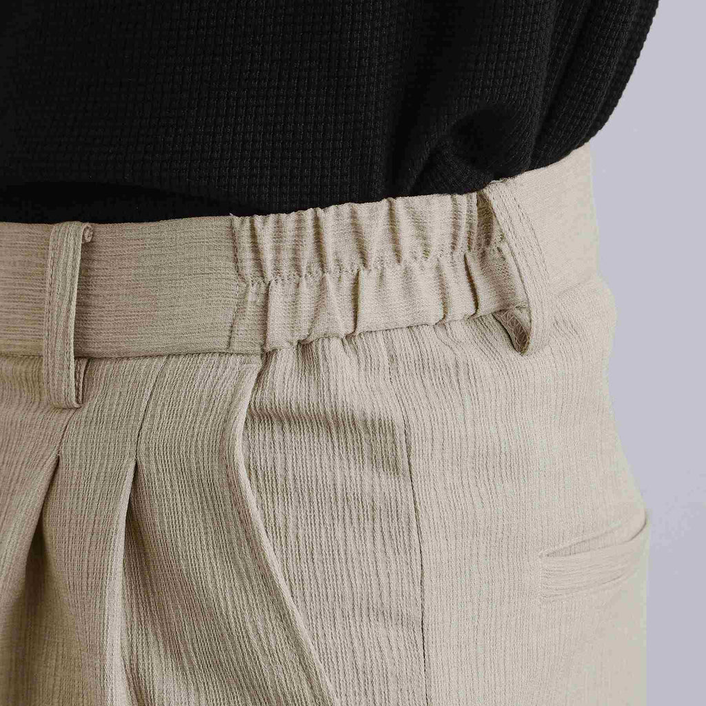 腰圍サイドにはゴムシャーリングを配することで、尺寸の許容範囲が広いのもポイント。