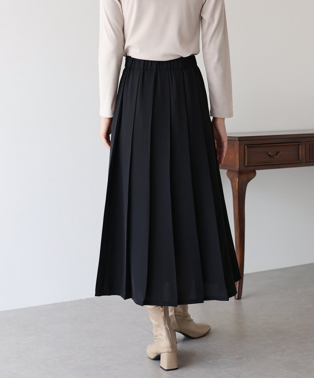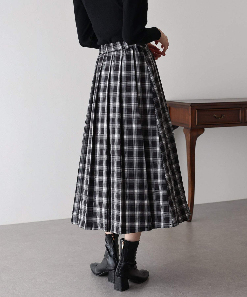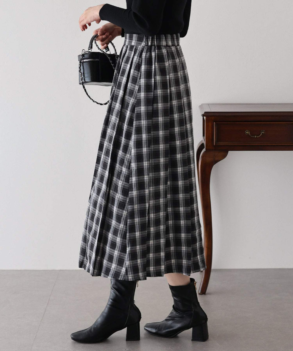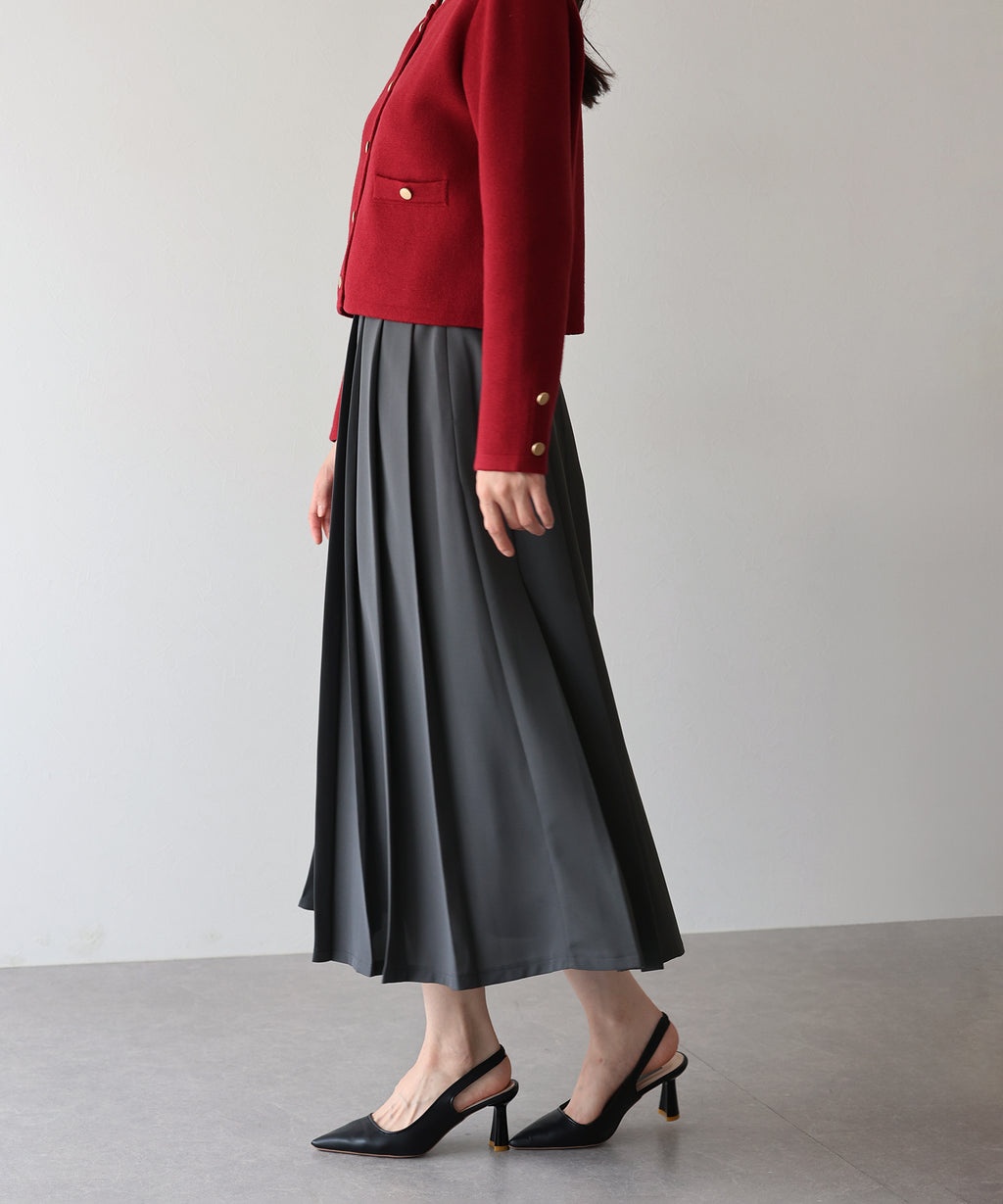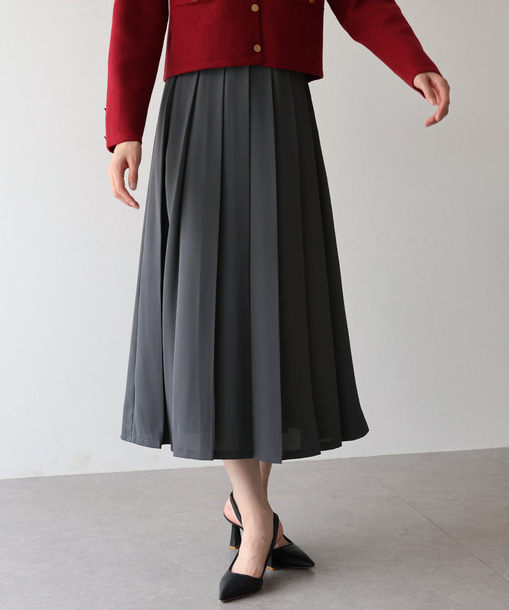 具有垂感的粗百褶為裙子帶來動感,展現出端莊且高雅的印象。