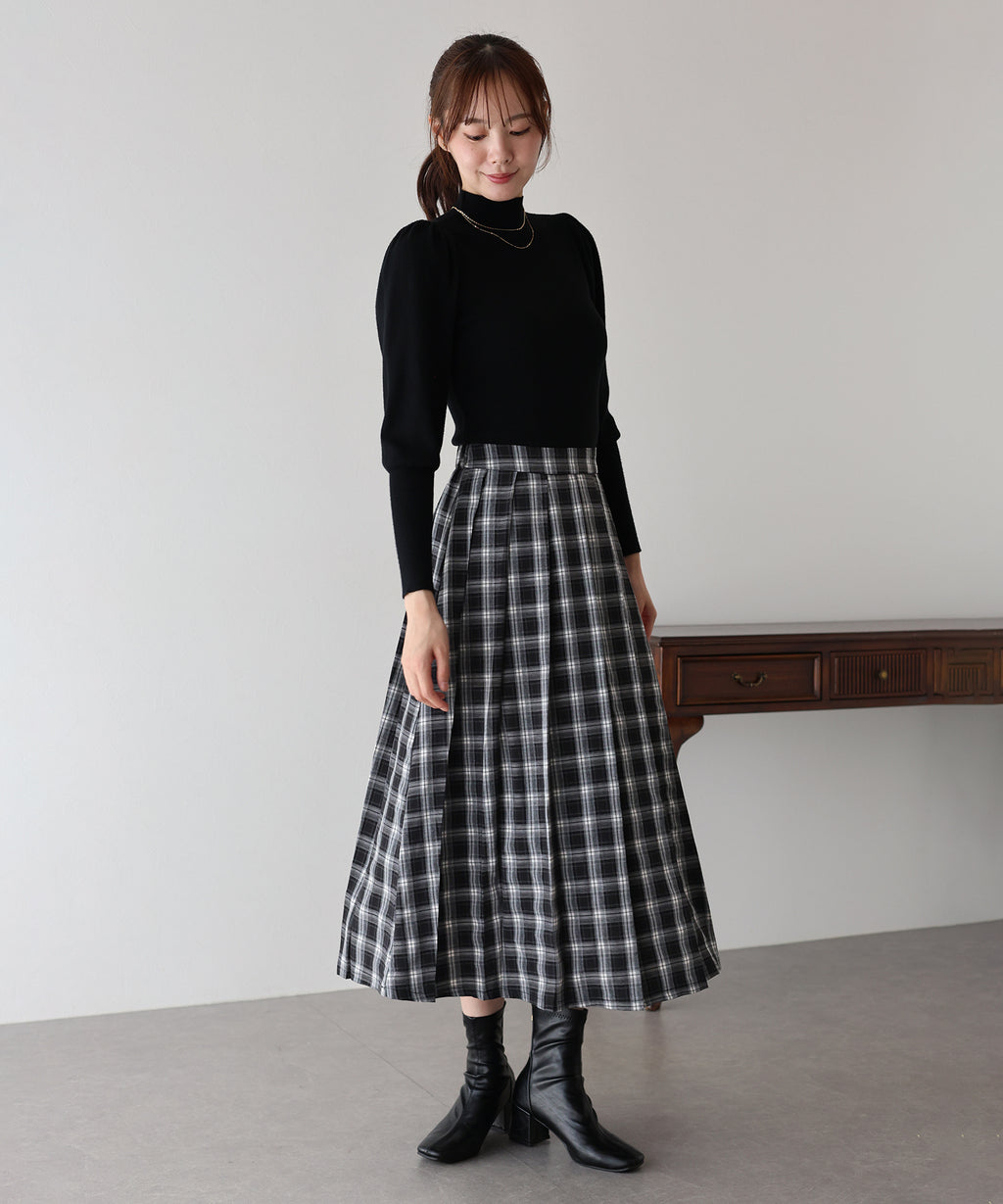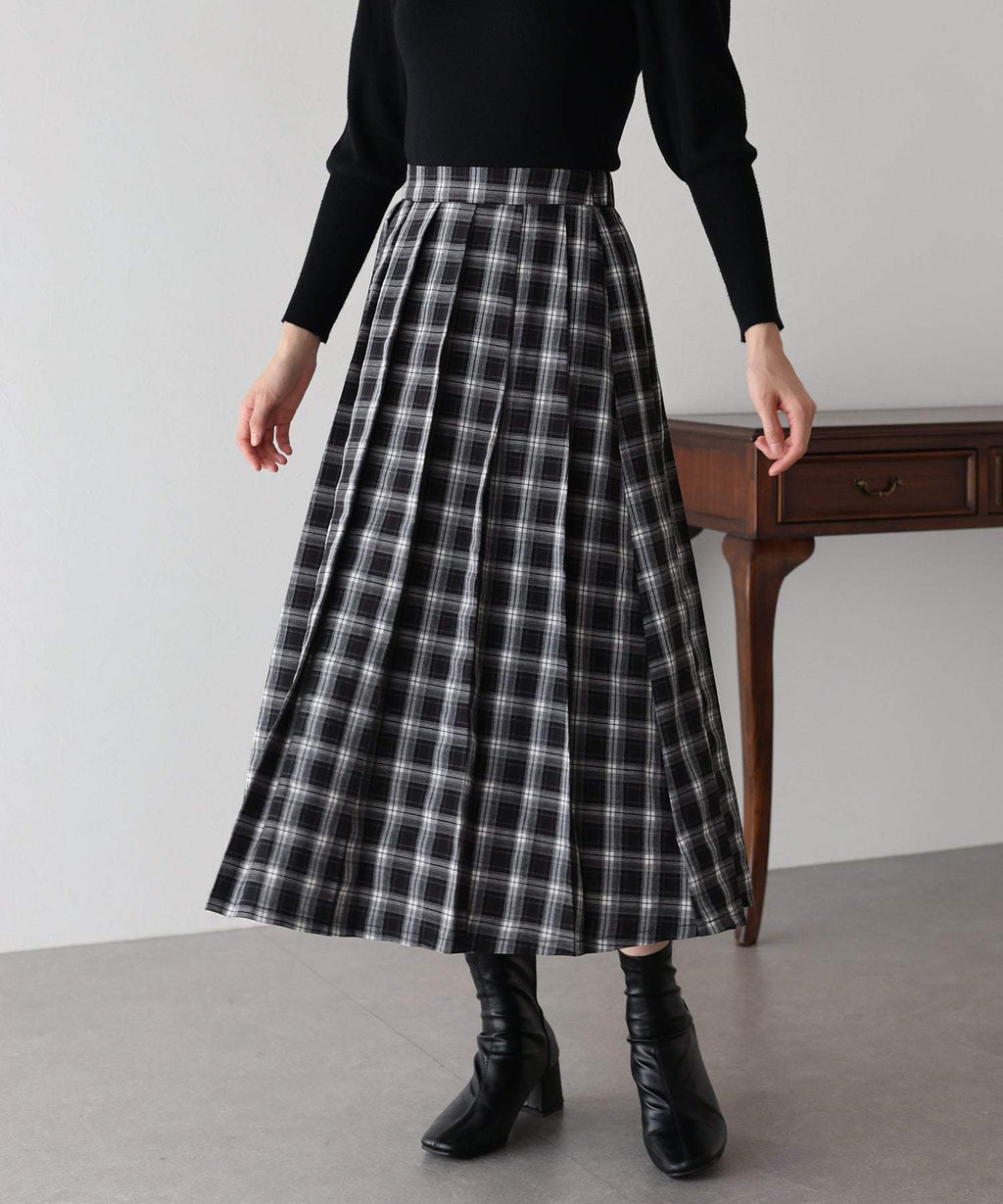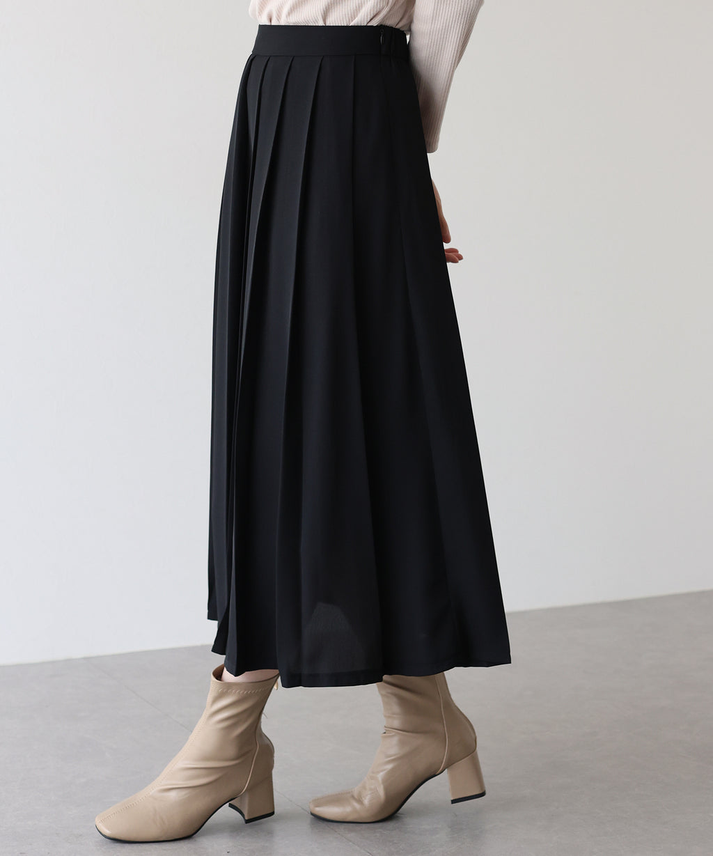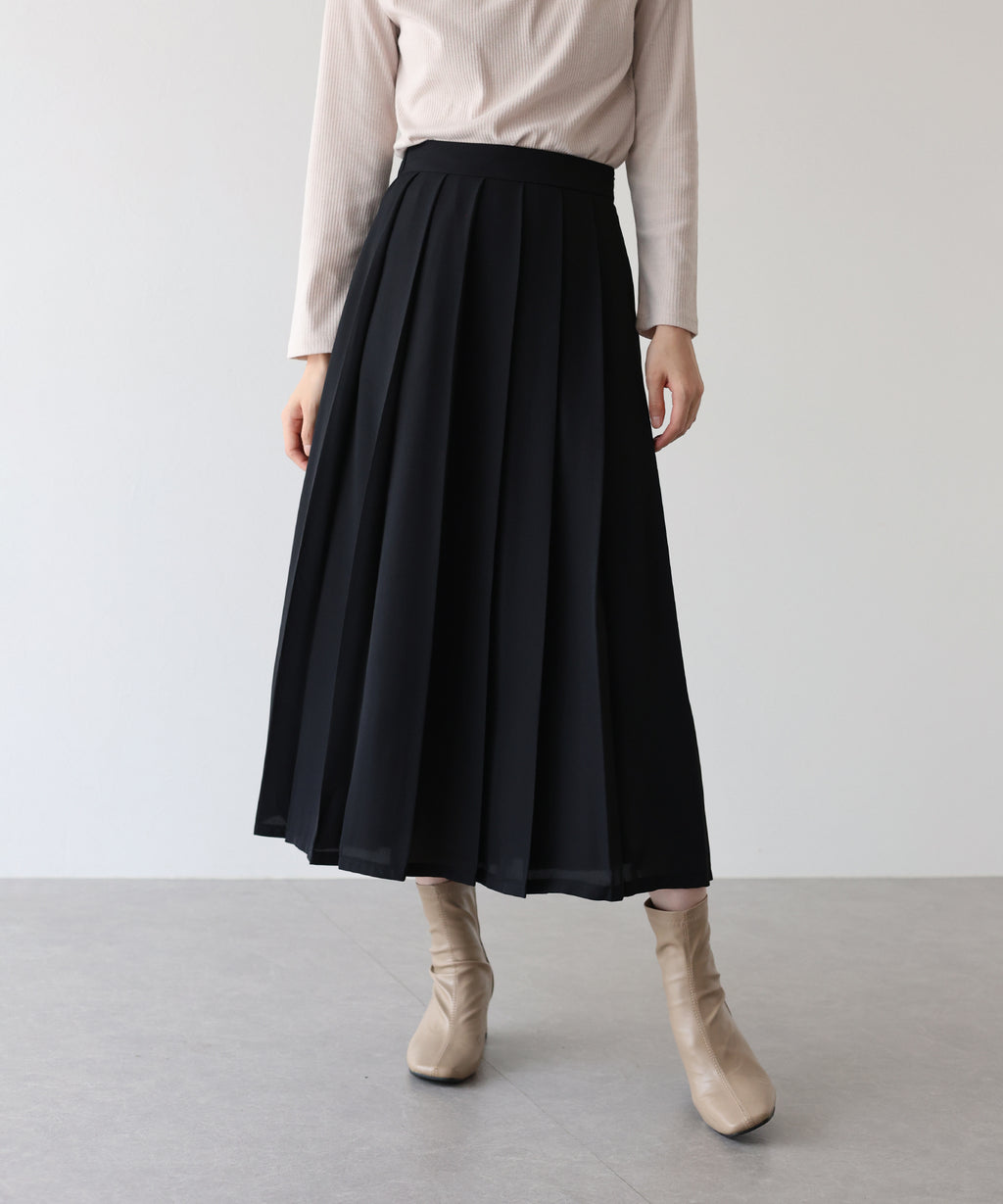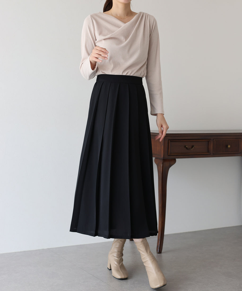 具有垂感的粗百褶為裙子帶來動感,展現出端莊且高雅的印象。