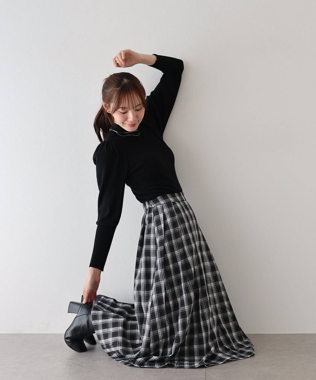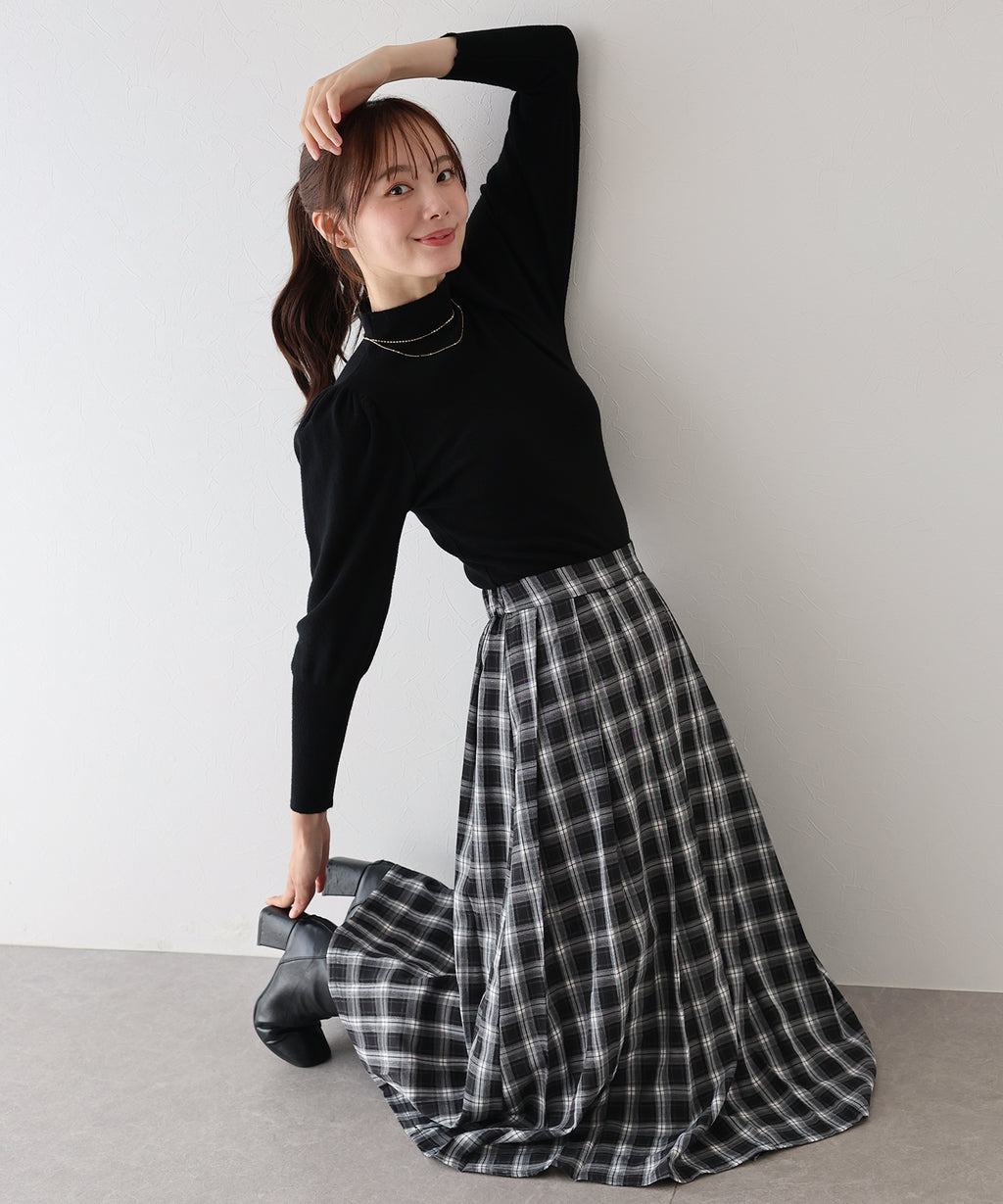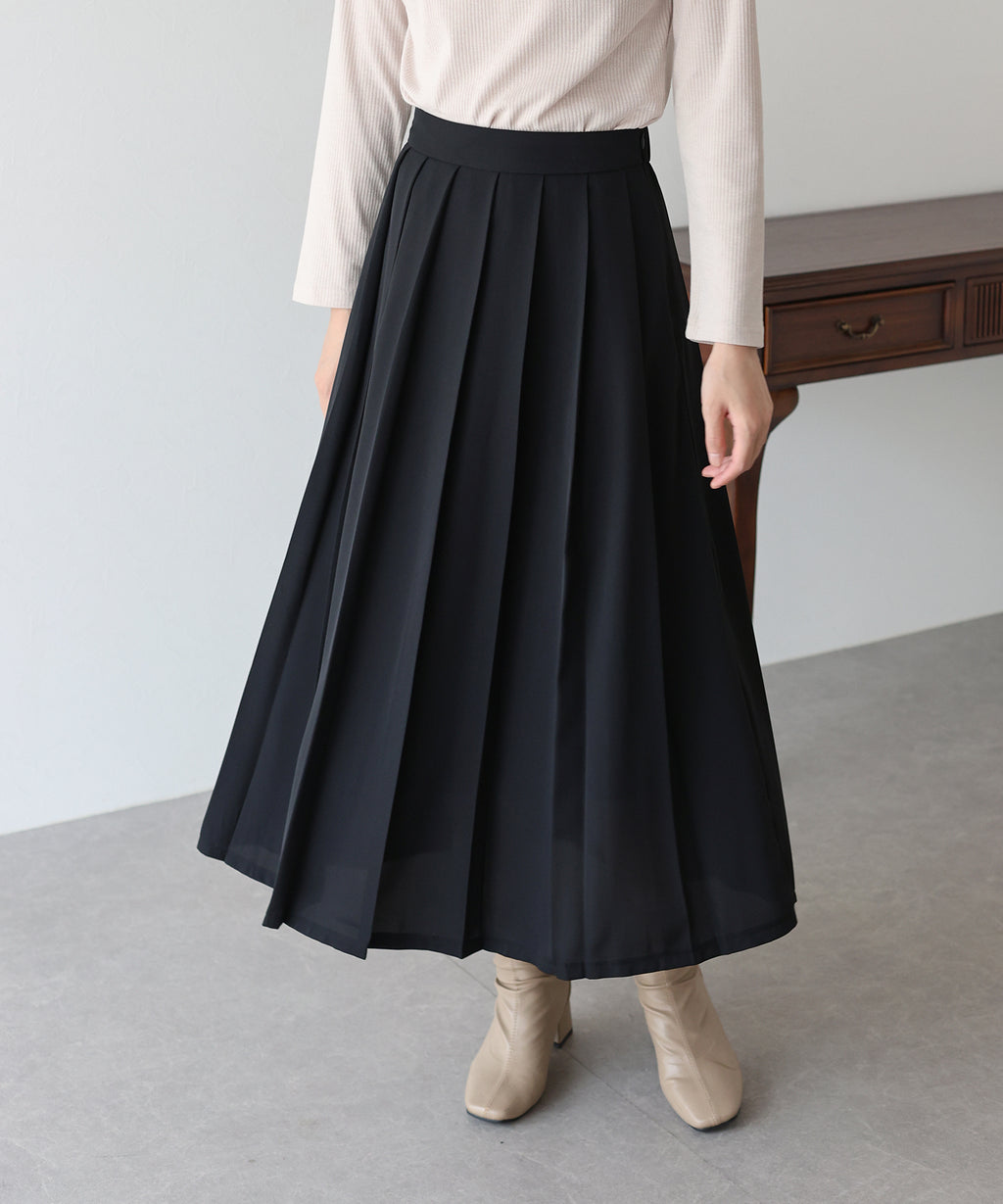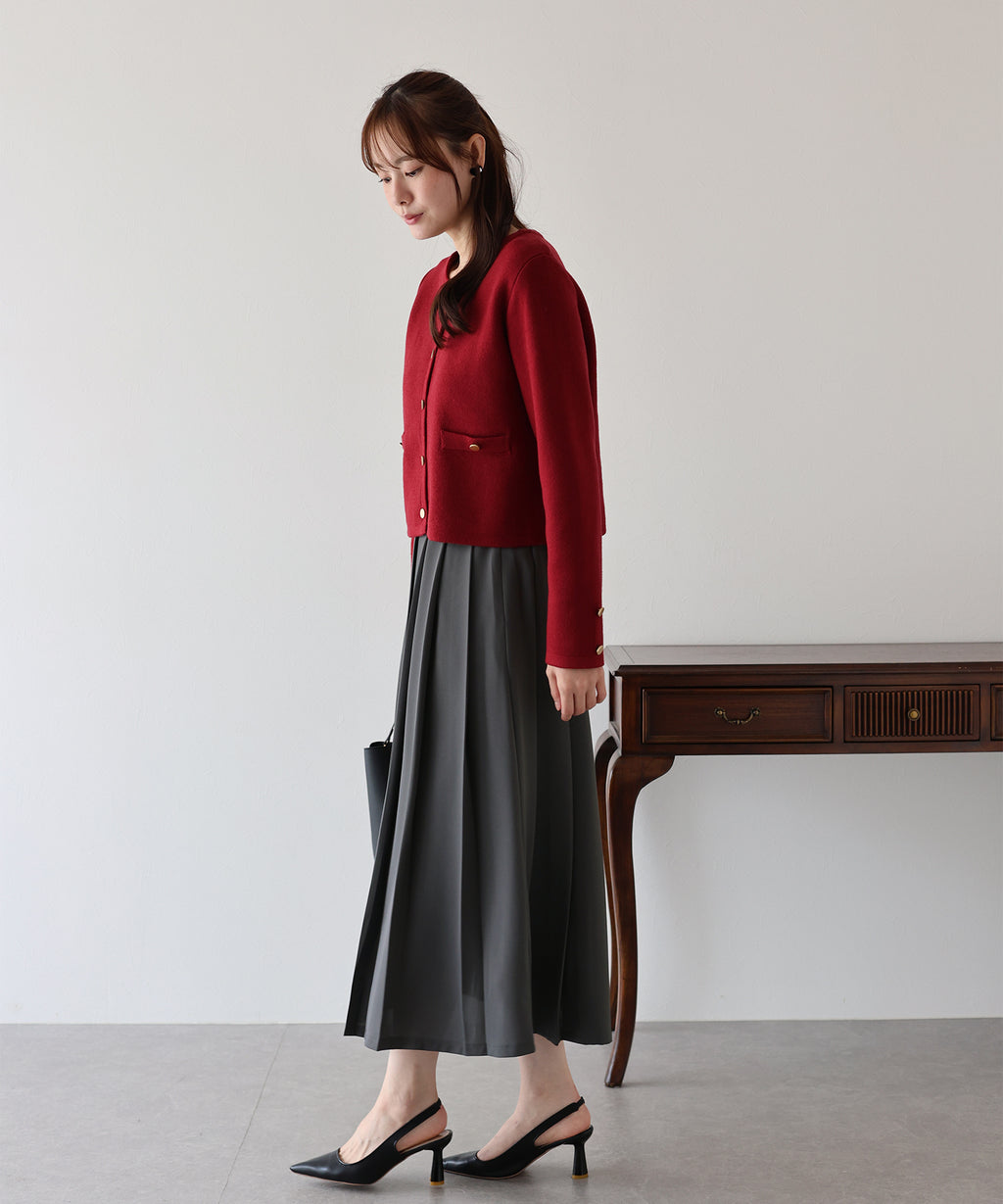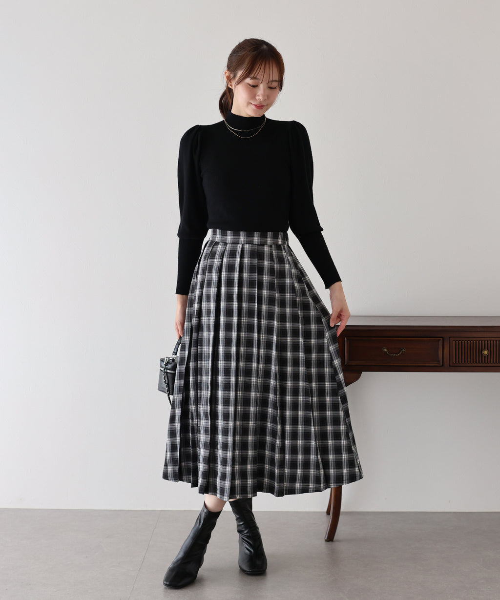 具有垂感的粗百褶為裙子帶來動感,展現出端莊且高雅的印象。