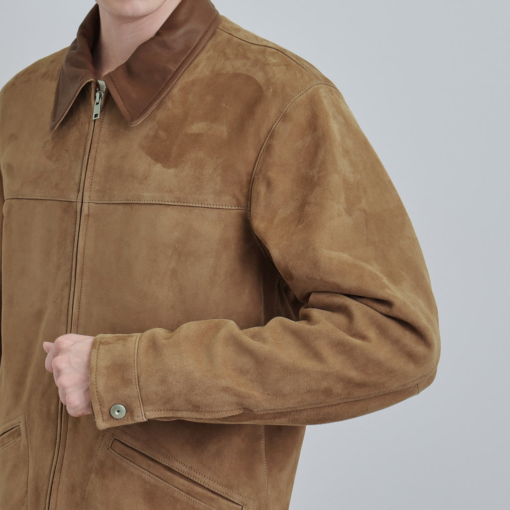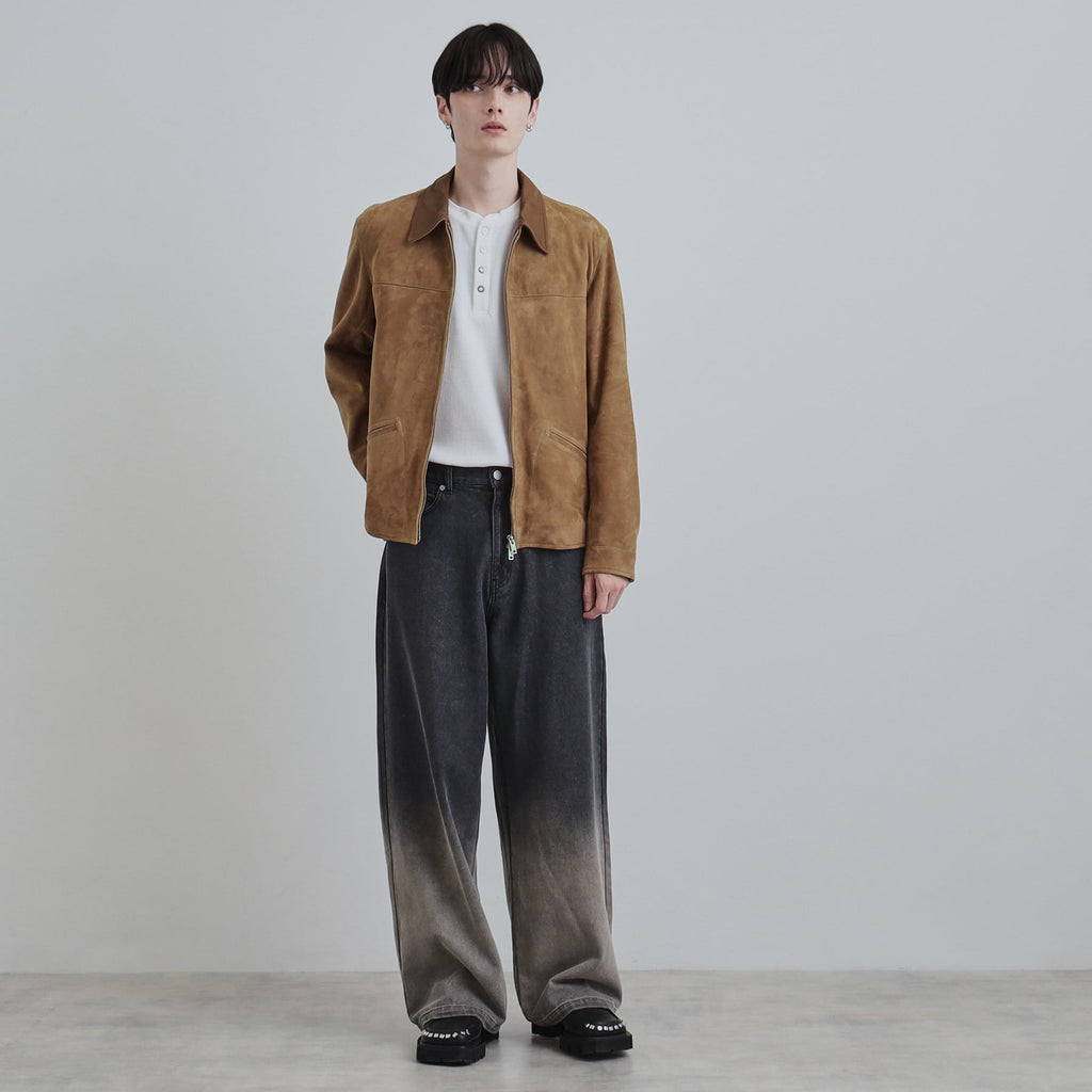 領口和翻領部分採用Nappa加工,使表面表情不同。