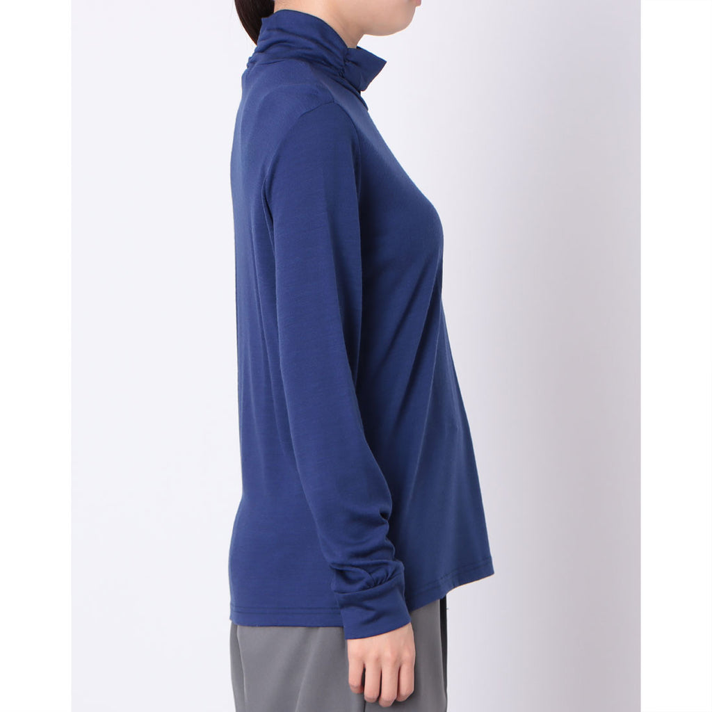 棉花藍色 COTTON BLUE 襟ギャザーハイネックプルオーバー