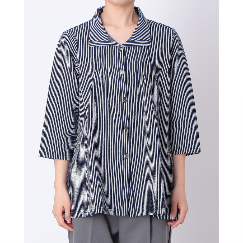 棉花藍色 COTTON BLUE 襟付き七分袖ブラウス