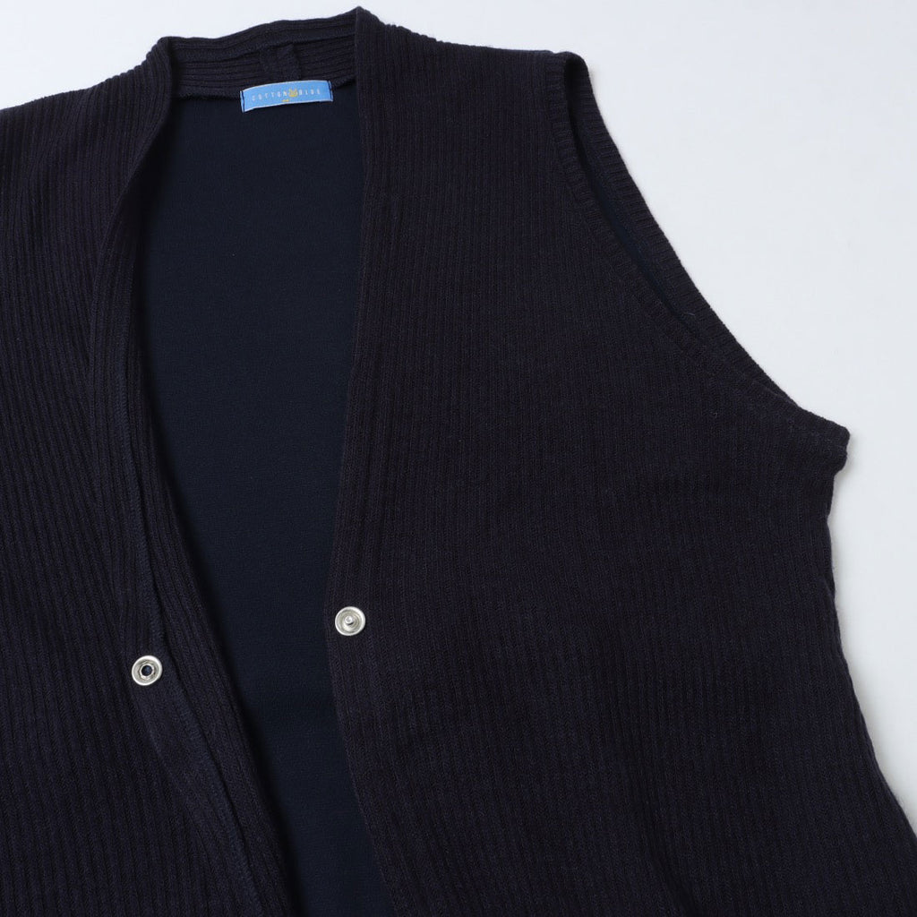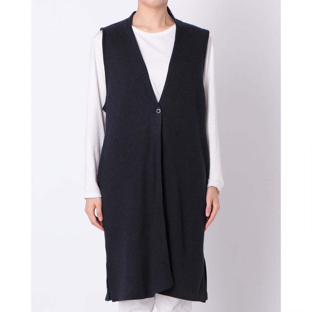 棉花藍色 COTTON BLUE 異素材使いロングジレ