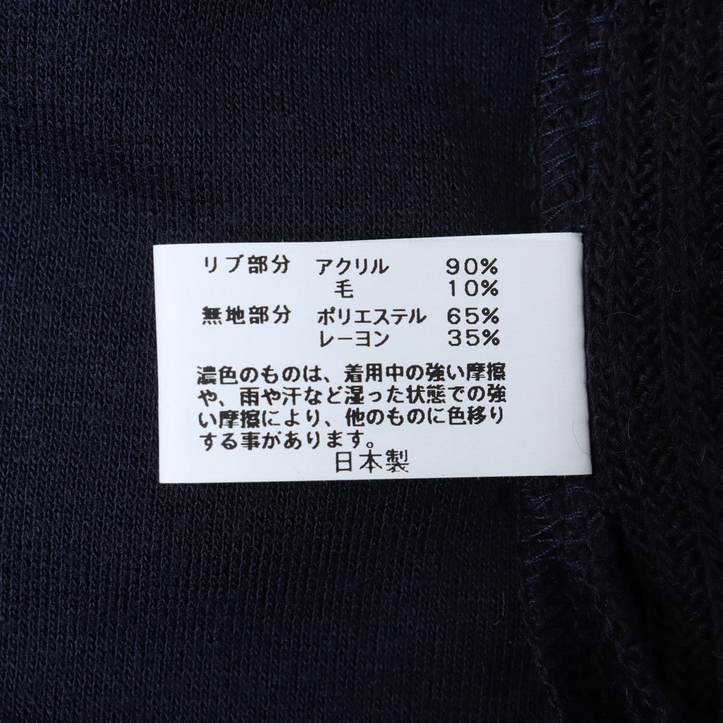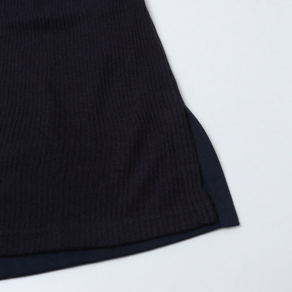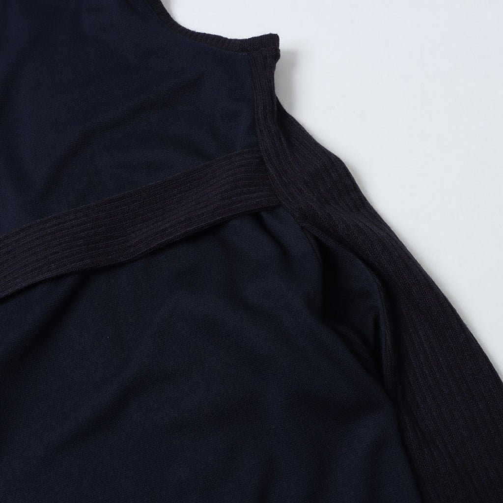 前身頃使用了羅紋布,後身頃則採用無地的雙層針織,展現異素材的搭配。