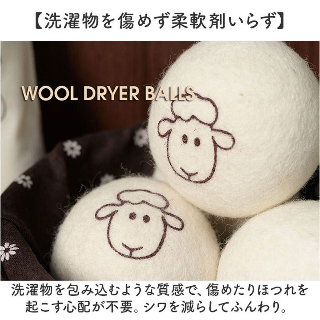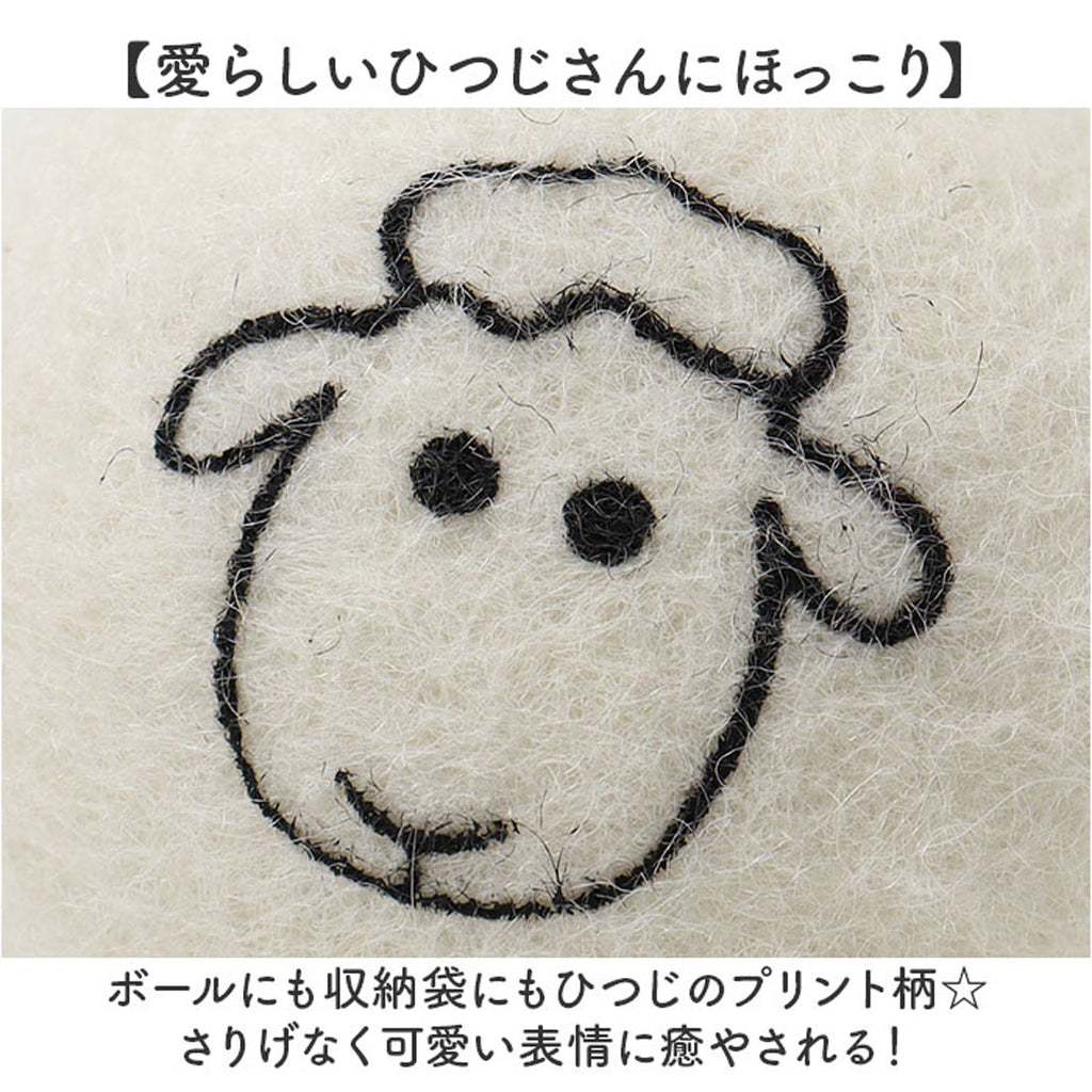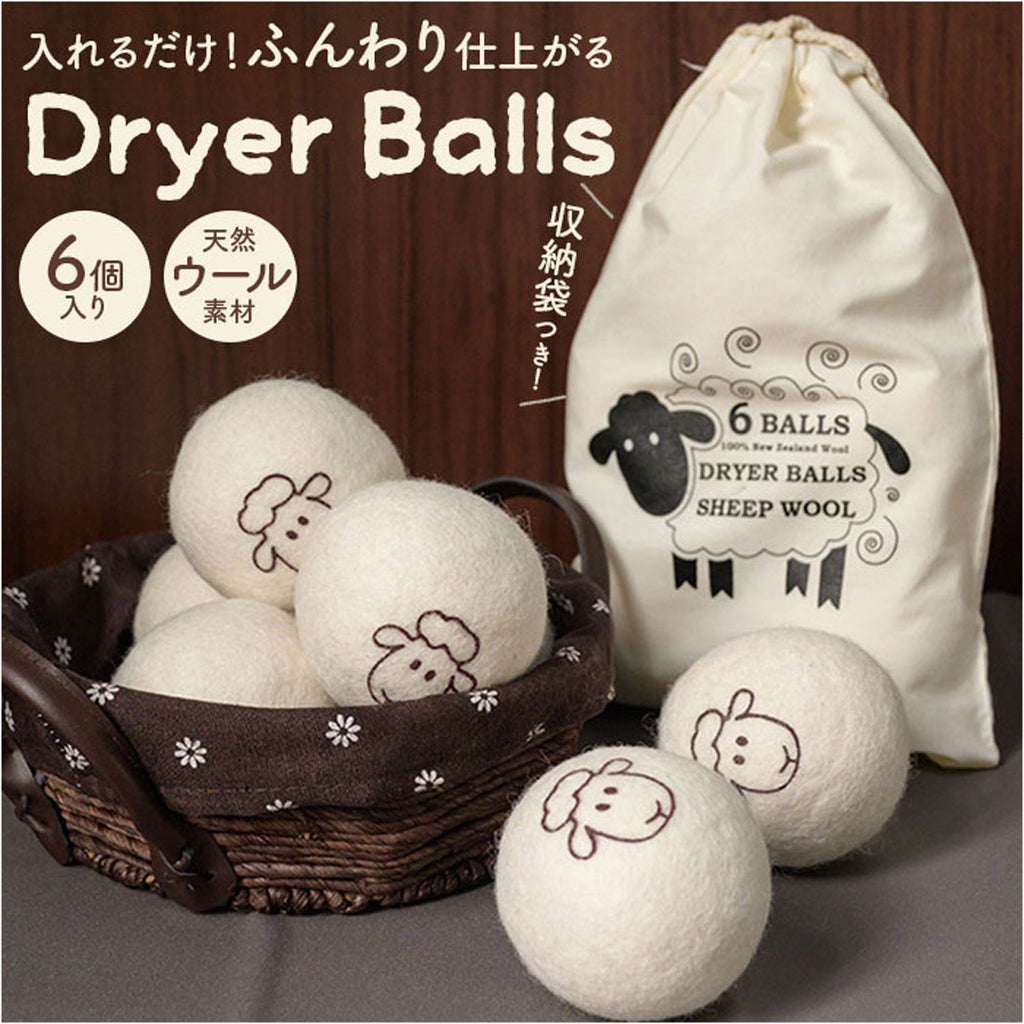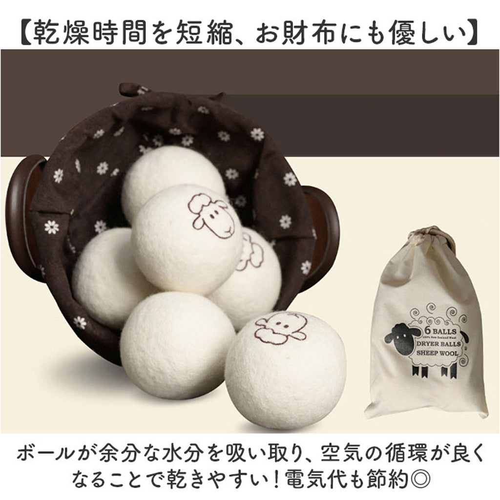 【高效乾燥與蓬鬆效果】・洗衣物乾得快,即使不晾也能保持蓬鬆♪「羊毛乾衣球 6個組合」。【放入乾燥前即可使用】・洗完衣服後,脫水結束後,在乾燥前將羊毛乾衣球放入。與衣物一起乾燥即可。【縮短乾燥時間,省錢又環保】・乾衣球吸收多餘水分,促進空氣循環,使乾得更快!節省電費◎【對敏感肌膚也安心的天然羊毛】・柔軟的羊毛球。不含化學添加物,即使是有小孩的家庭也可以安心使用。【不傷衣物,不需柔軟劑】・包裹衣物的質感,無需擔心損傷或起毛。減少皺紋,保持蓬鬆。【耐用性高,可反覆使用】・比塑料更堅固,可使用約1000次。可多次使用,環保◎(※)使用次數僅供參考。長期使用可能會掉毛,請注意。【收納袋收納,方便攜帶】・附有自然風格的收納袋。掛在掛鉤上,袋口設計方便取出。【可愛的羊羊圖案,增添溫馨感】・乾衣球和收納袋上都印有羊羊圖案☆可愛的表情令人療癒!