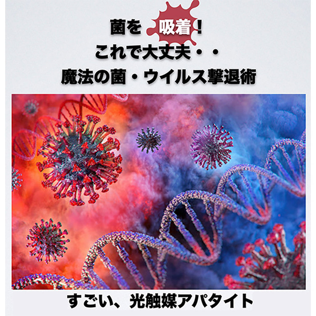 ※表面の粒々が光觸媒的粉末,請注意不要用力擦拭或刮傷。※髒了的時候請輕輕用水擦拭。※偶爾將其放在陽光或室內燈光下,抗病毒效果會持續更久。
