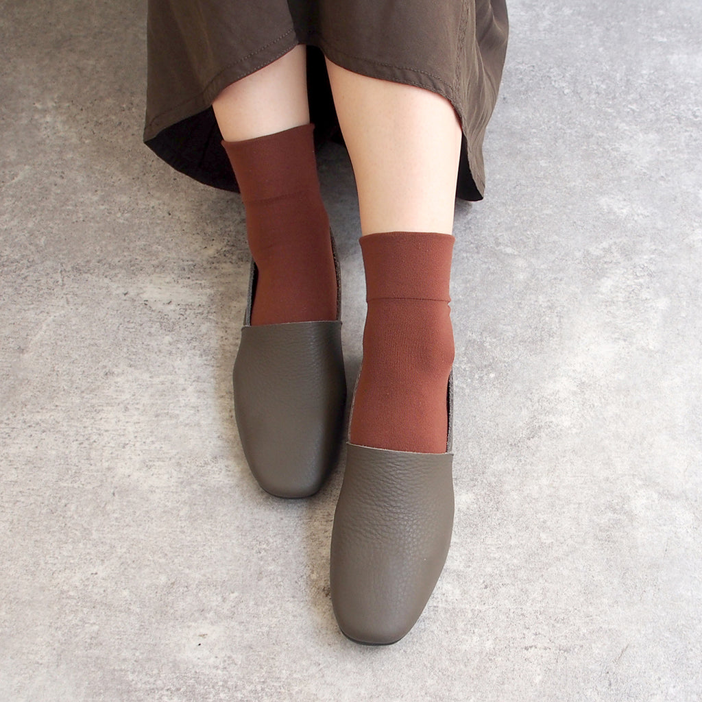 簡單易搭,因此是日常使用的好物品。無論是連衣裙、裙子還是褲子風格,都能輕鬆搭配。赤腳穿著也很好,但搭配彩色襪子一起享受也是推薦的。