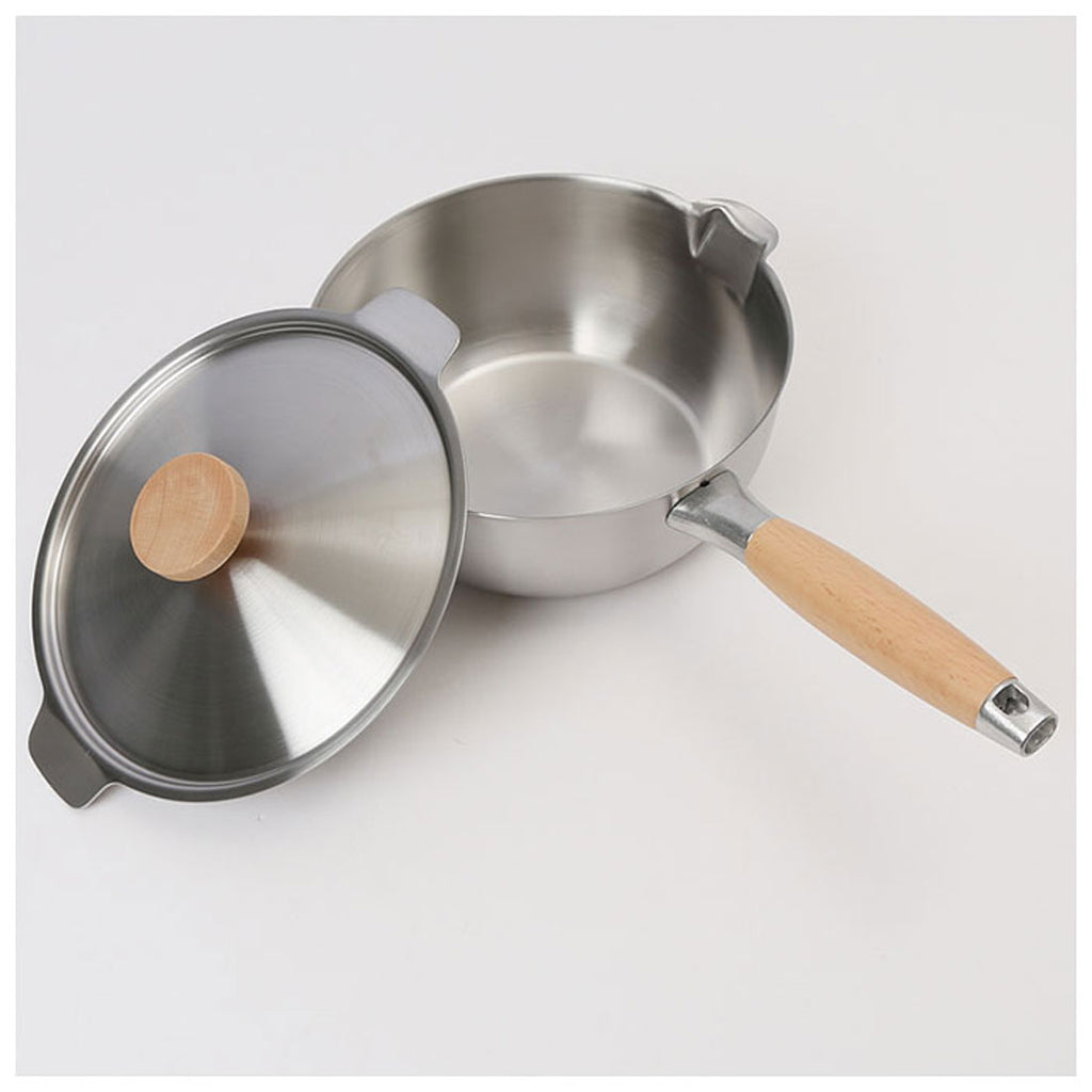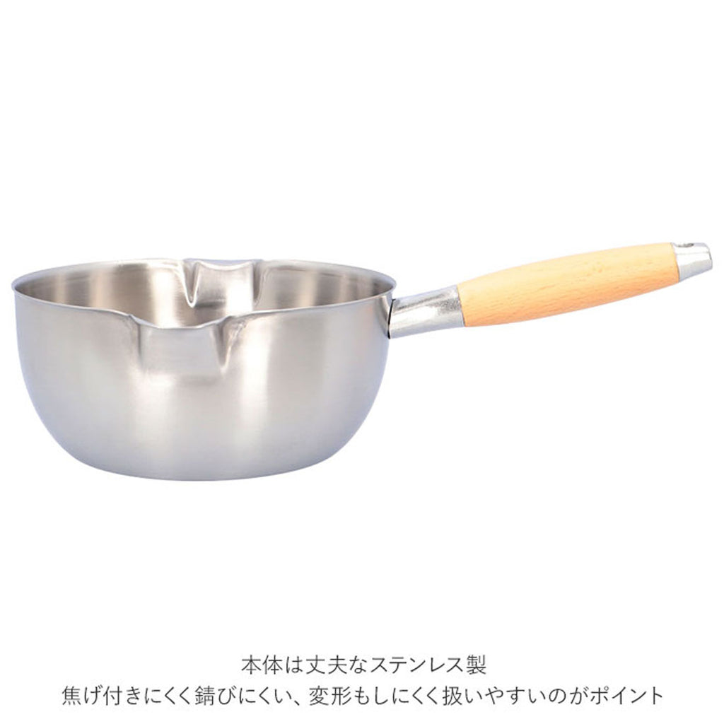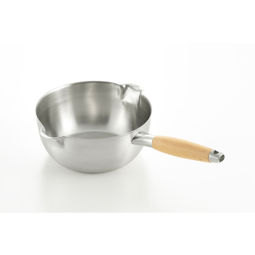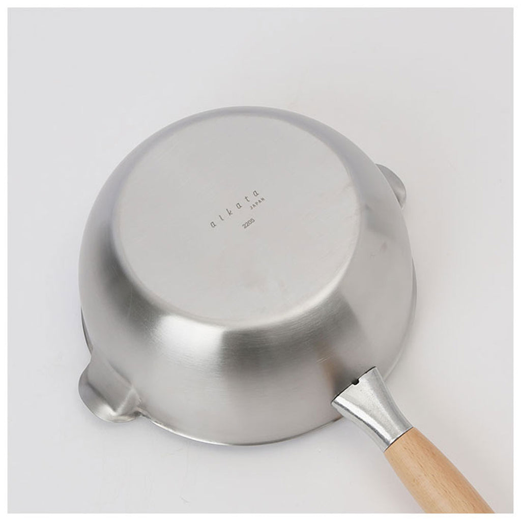 ・簡單的設計,可以長時間使用♪ 介紹不銹鋼和天然木材的美麗組合“aikata 雙頭不銹鋼雪平鍋 20 厘米”。