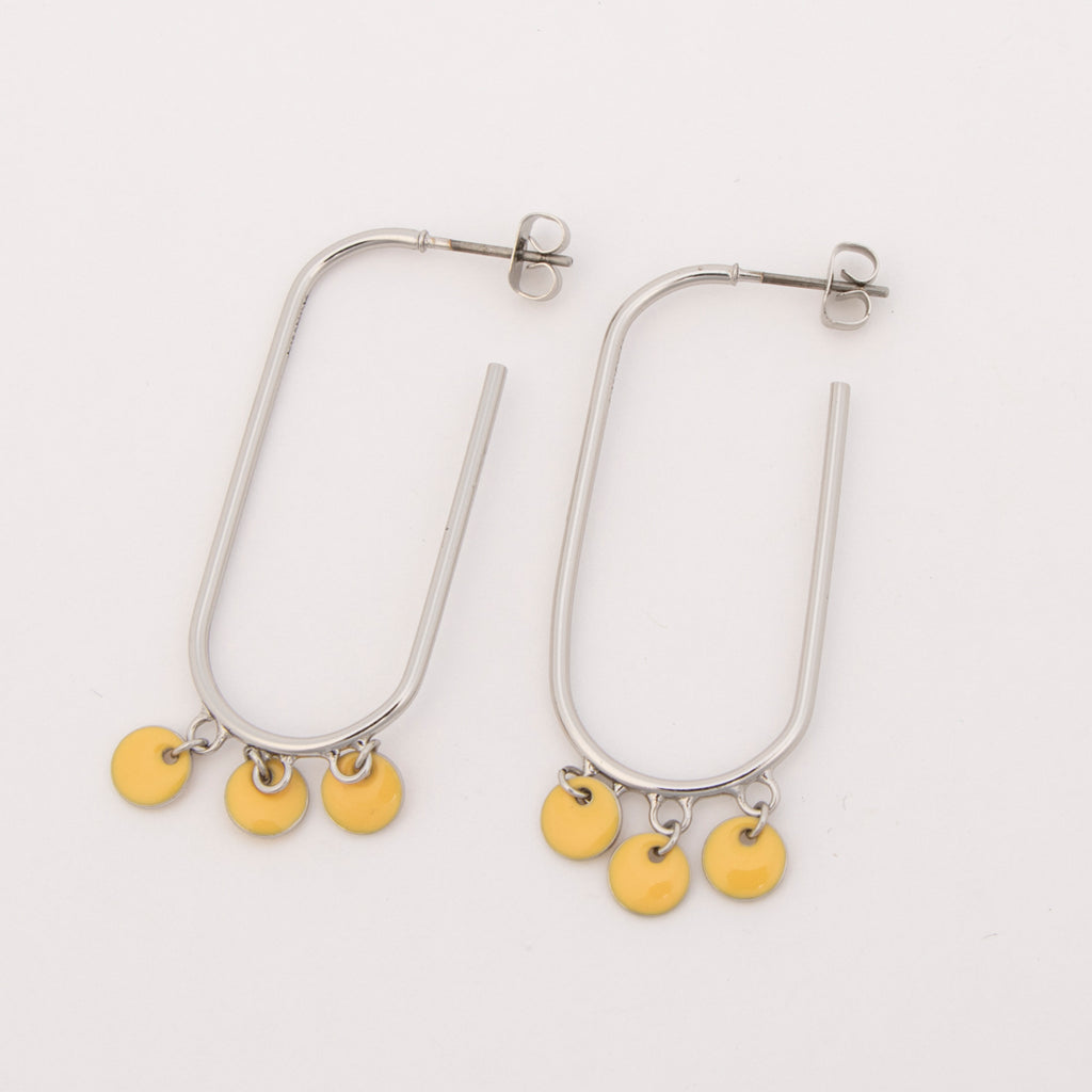 阿嘉塔 巴黎 AGATHA PARIS 自由橢圓耳環,圓形琺瑯,黃色/銀色