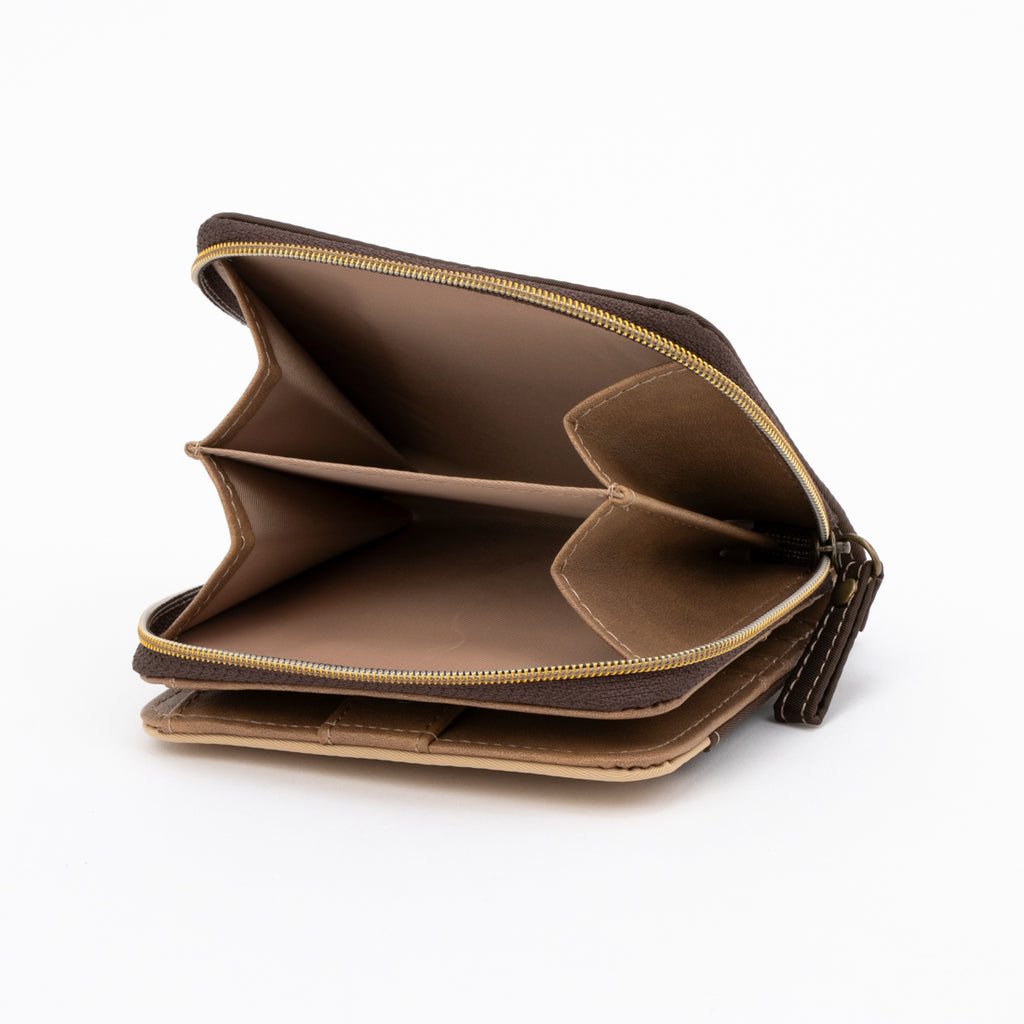小錢包是拉鍊型,開口寬大,內部物品一目了然的設計。