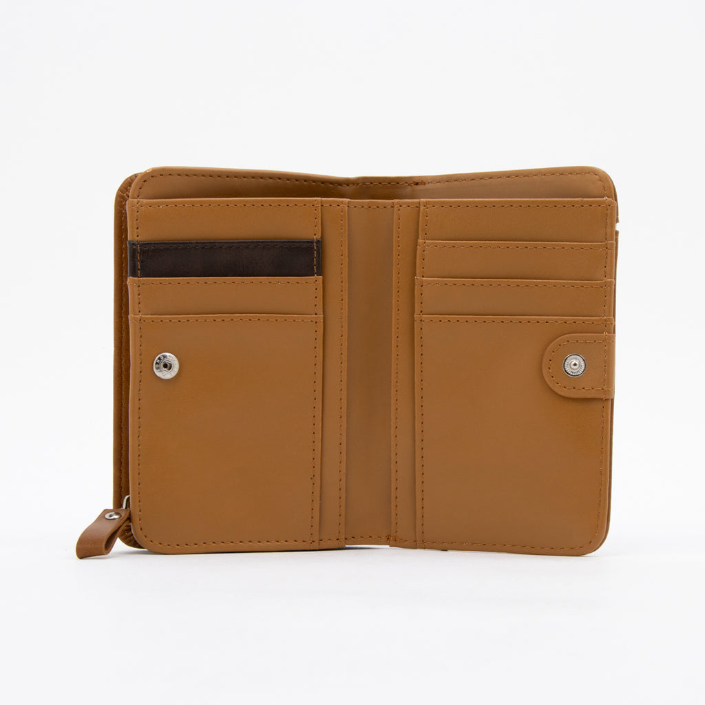 ・帶L字拉鍊的硬幣房間開口寬大,內部內容物一目了然的設計。