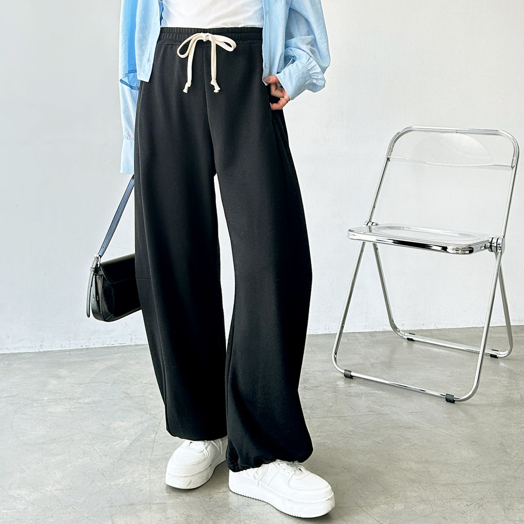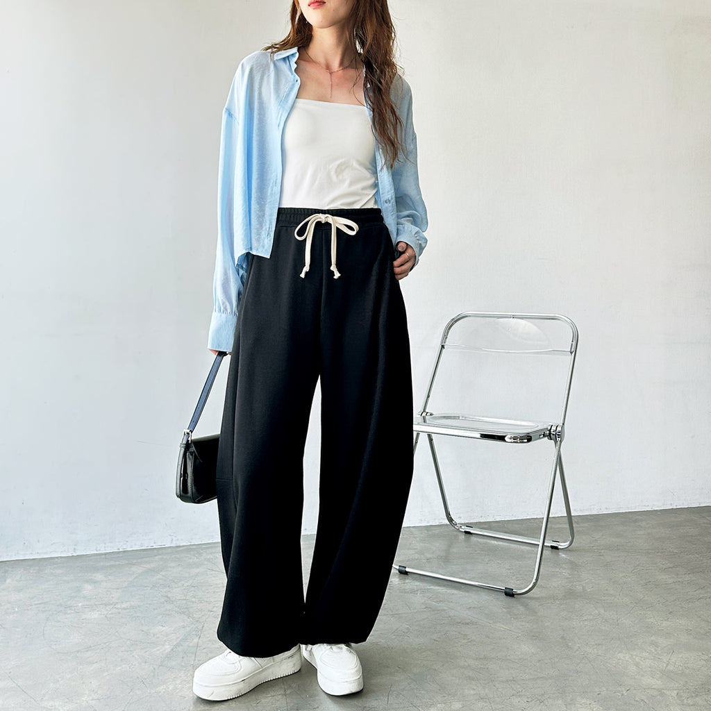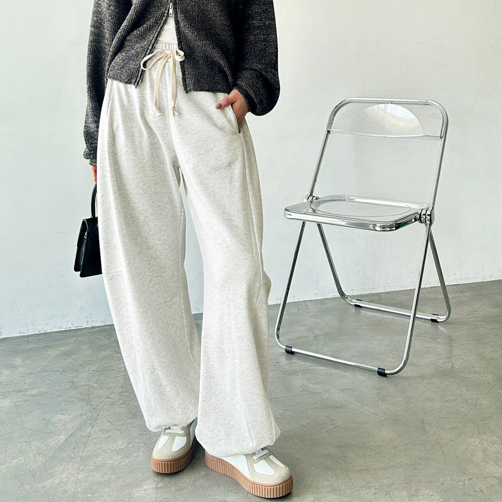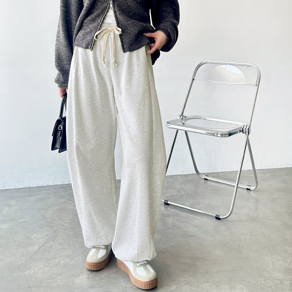 具有豐滿感的寬鬆輪廓和尺寸感,時尚的彎曲運動褲。