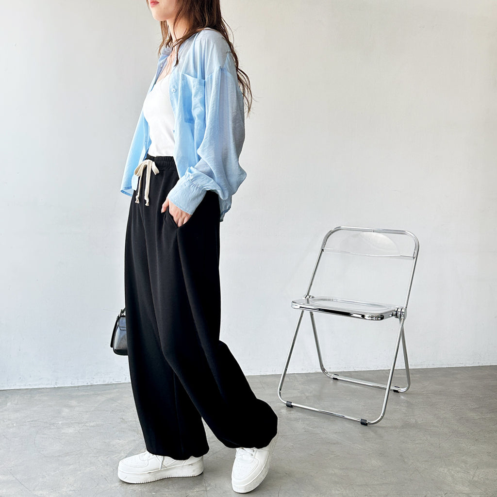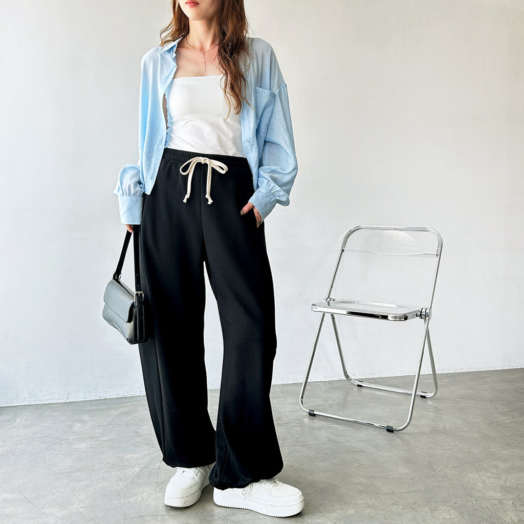 隨性風格的粗平紐,即使塞入上衣也能成為亮點,讓休閒風的運動褲看起來更成熟。