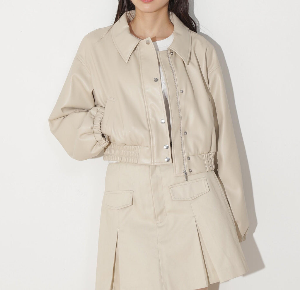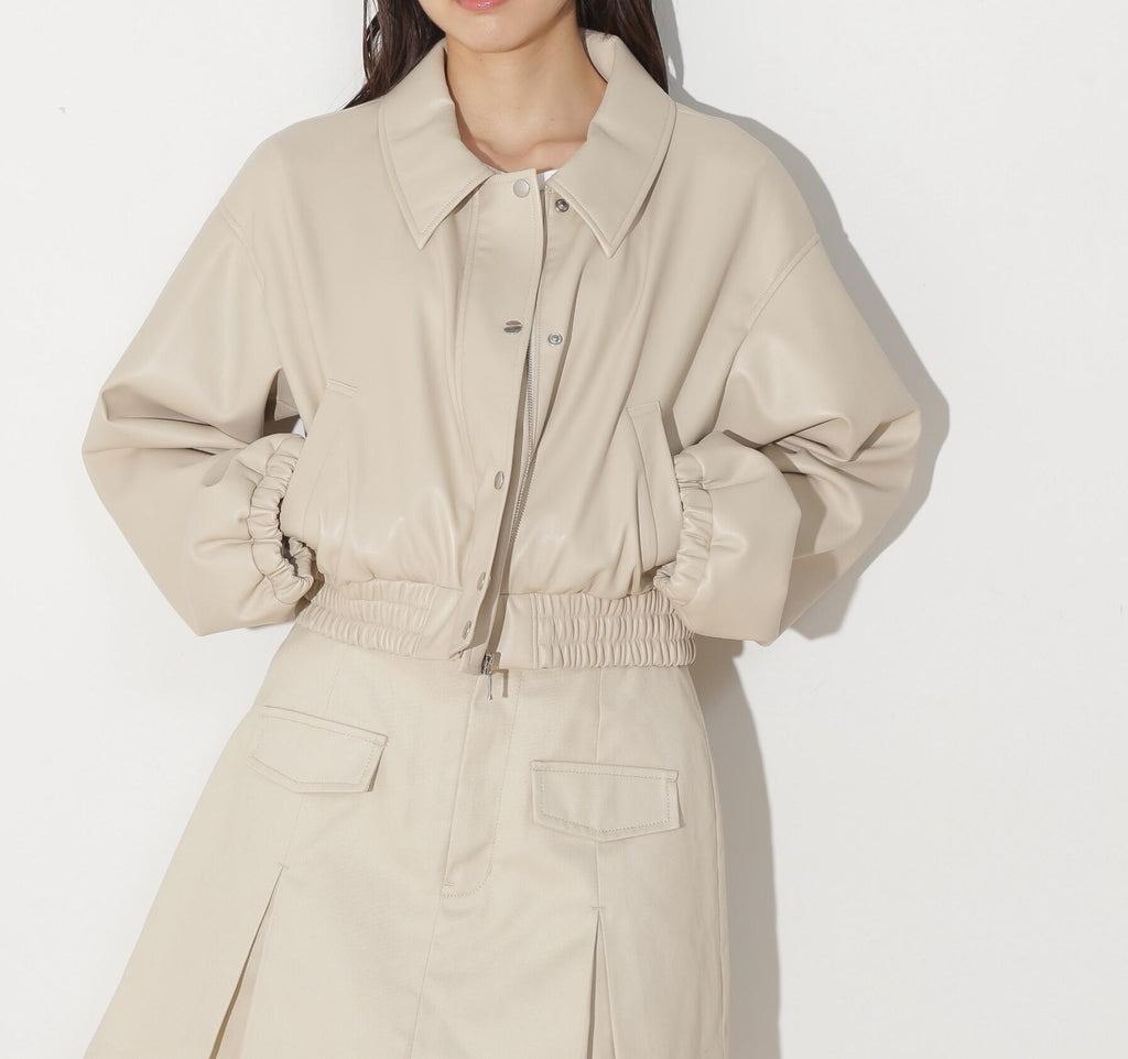 柔軟且貼合身形的人造皮革素材製成的短款外套。袖子採用略微寬鬆的落肩設計,營造出隨性感,裙擺則是收緊的橡膠抽繩短款設計,即使是身形較小的人也能輕鬆搭配出平衡的輪廓。袖口內有橡膠,方便調整袖長,打造出休閒風格。雖然顏色較淡,但在微涼的季節也能展現時尚感的外套。※由於拍攝時的照明原因,顏色可能會有所不同。