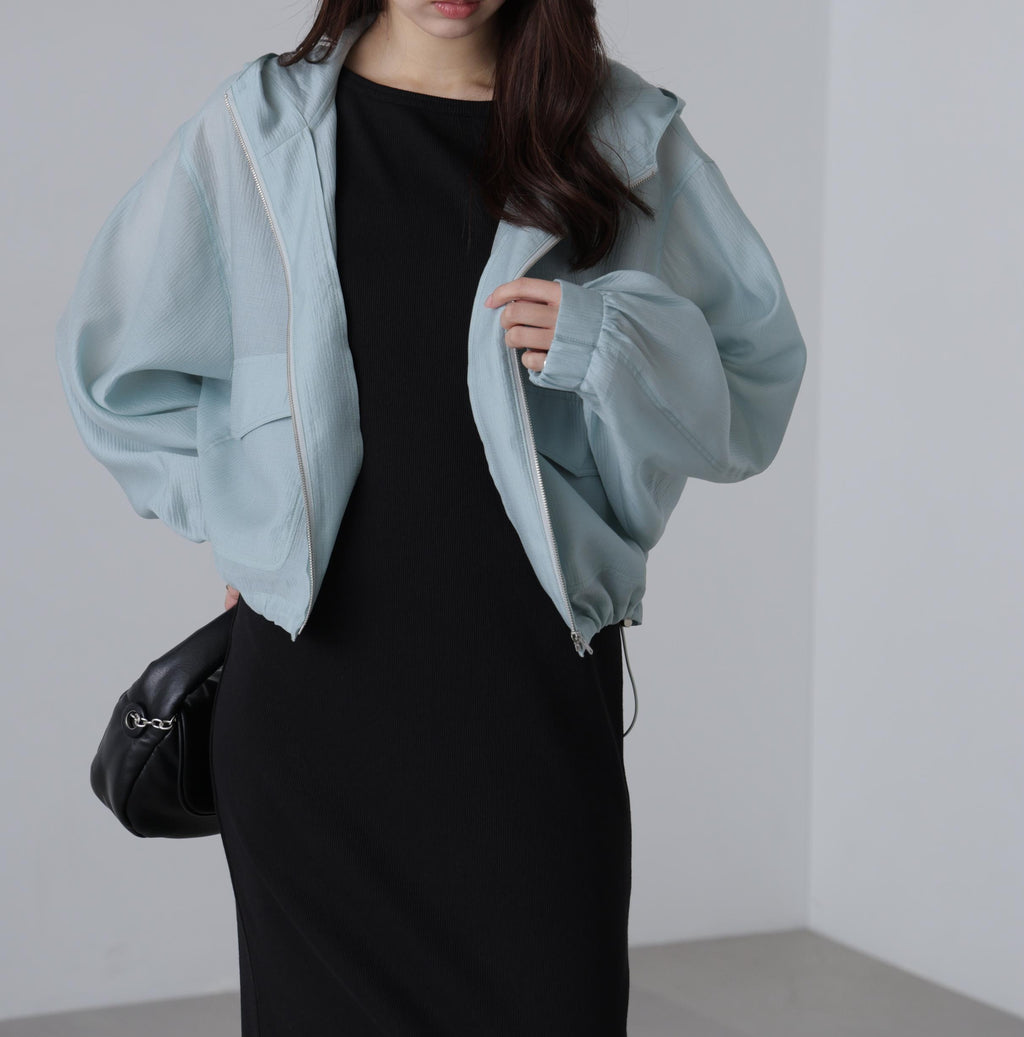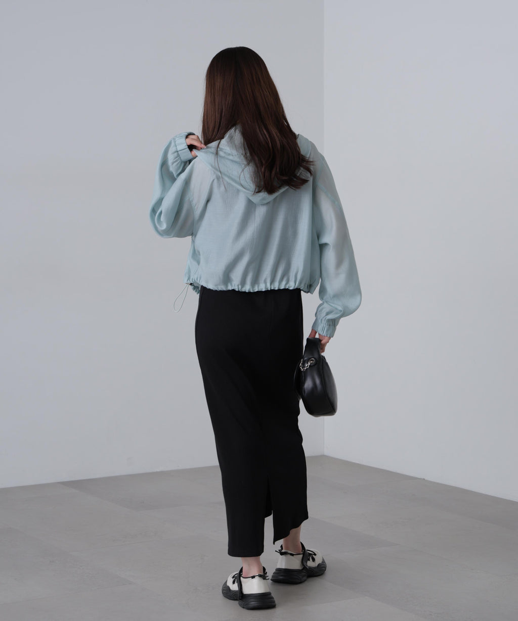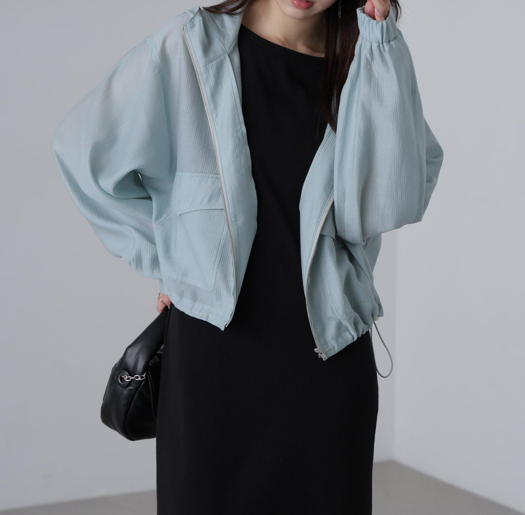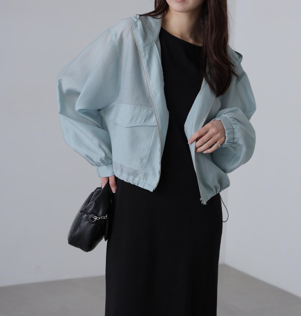 輕便舒適的穿著感,輕鬆穿搭的透光連帽外套。自然且啞光的質感,使其易於融入各種搭配,並以翻蓋口袋和雙縫線增添細節。下擺配有橡膠抽繩,兩側的止動器可調整。通過抽繩的收緊程度,可以享受不同的輪廓變化。非常適合搭配牛仔布或背心裙,也適合夏天的冷氣對策。