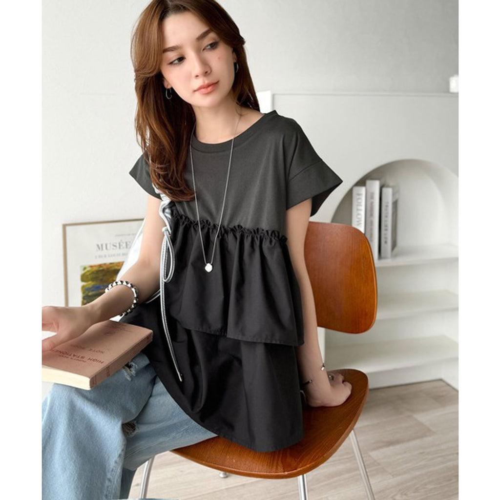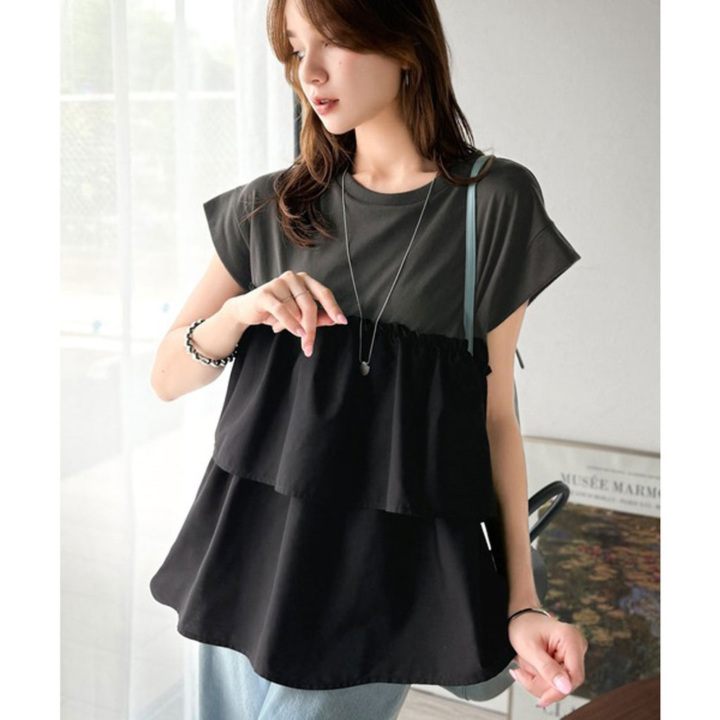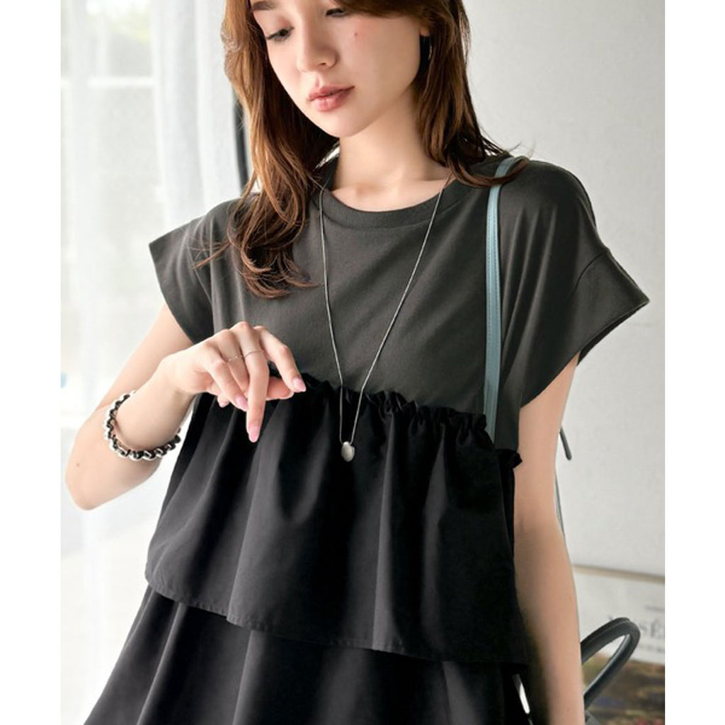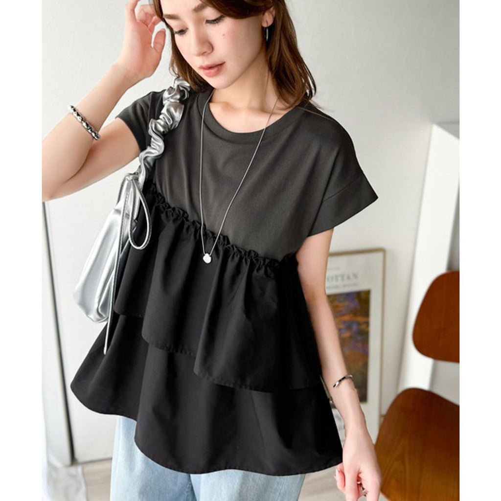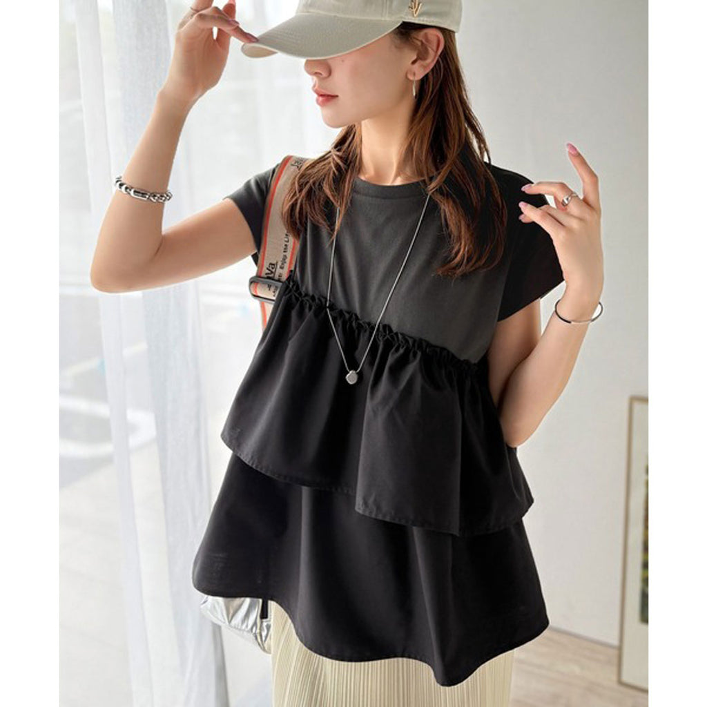 ・身體部分是T恤,荷葉邊部分使用布料的異素材搭配