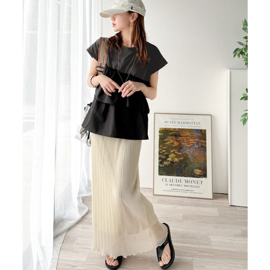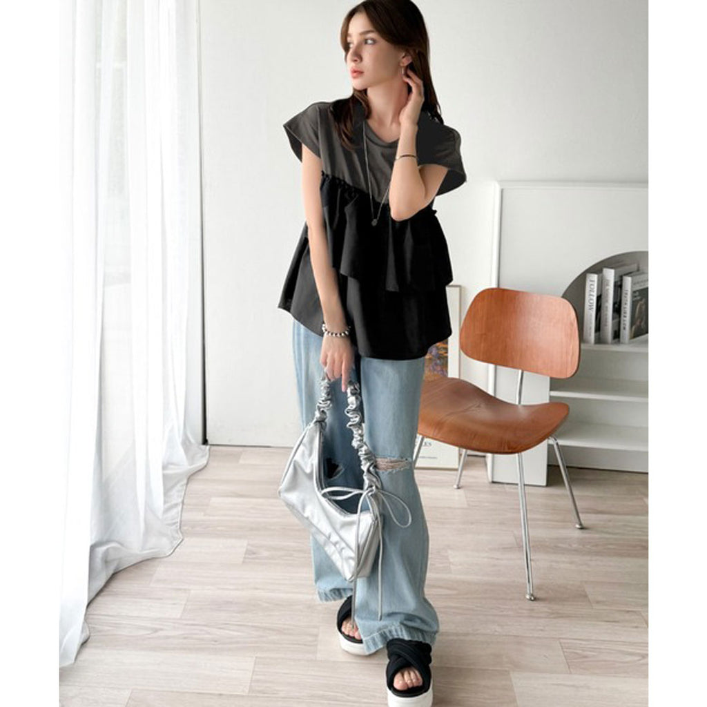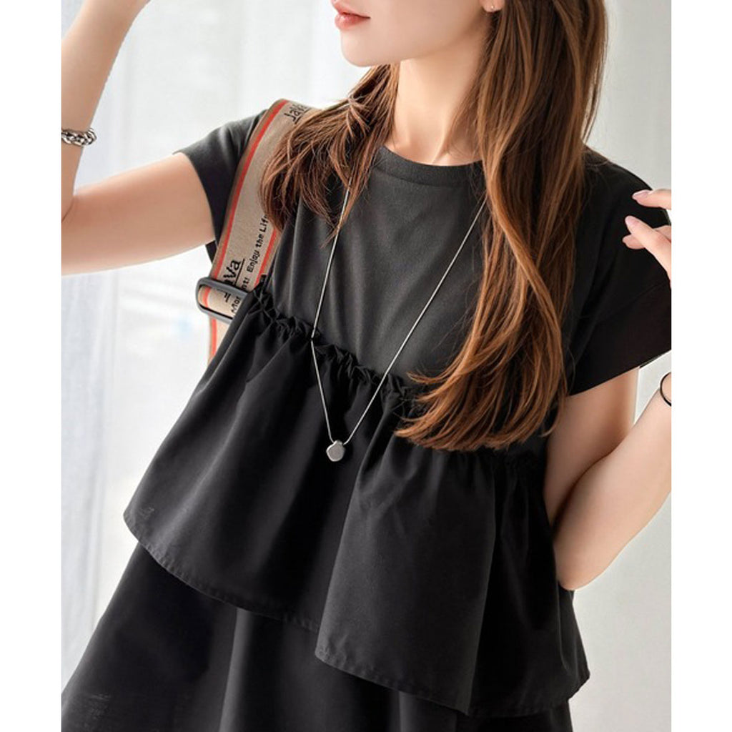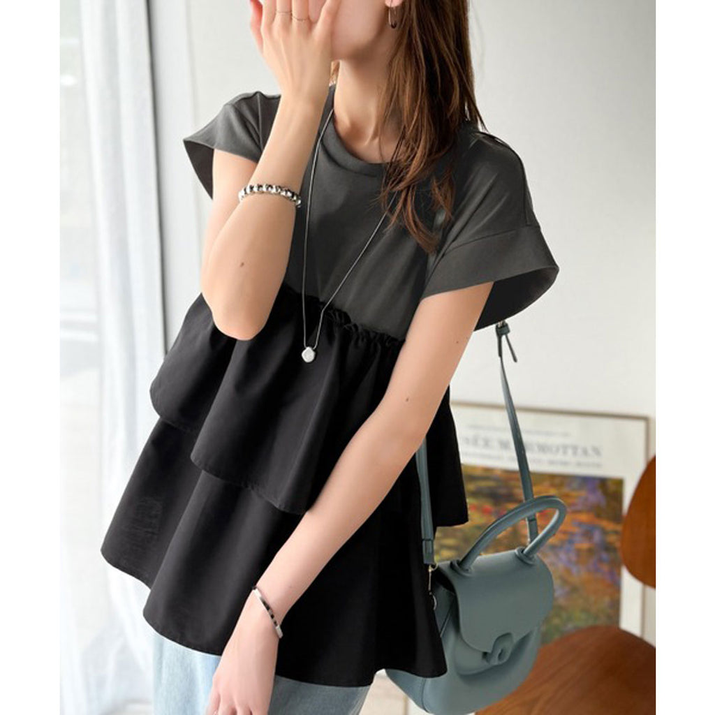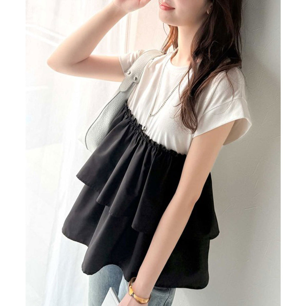 ・身體部分是T恤,荷葉邊部分使用布料的異素材搭配