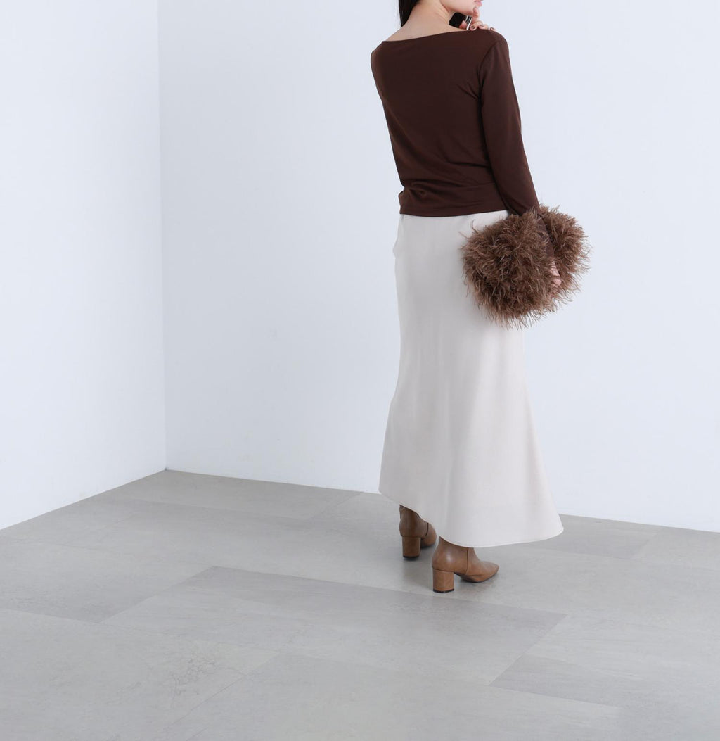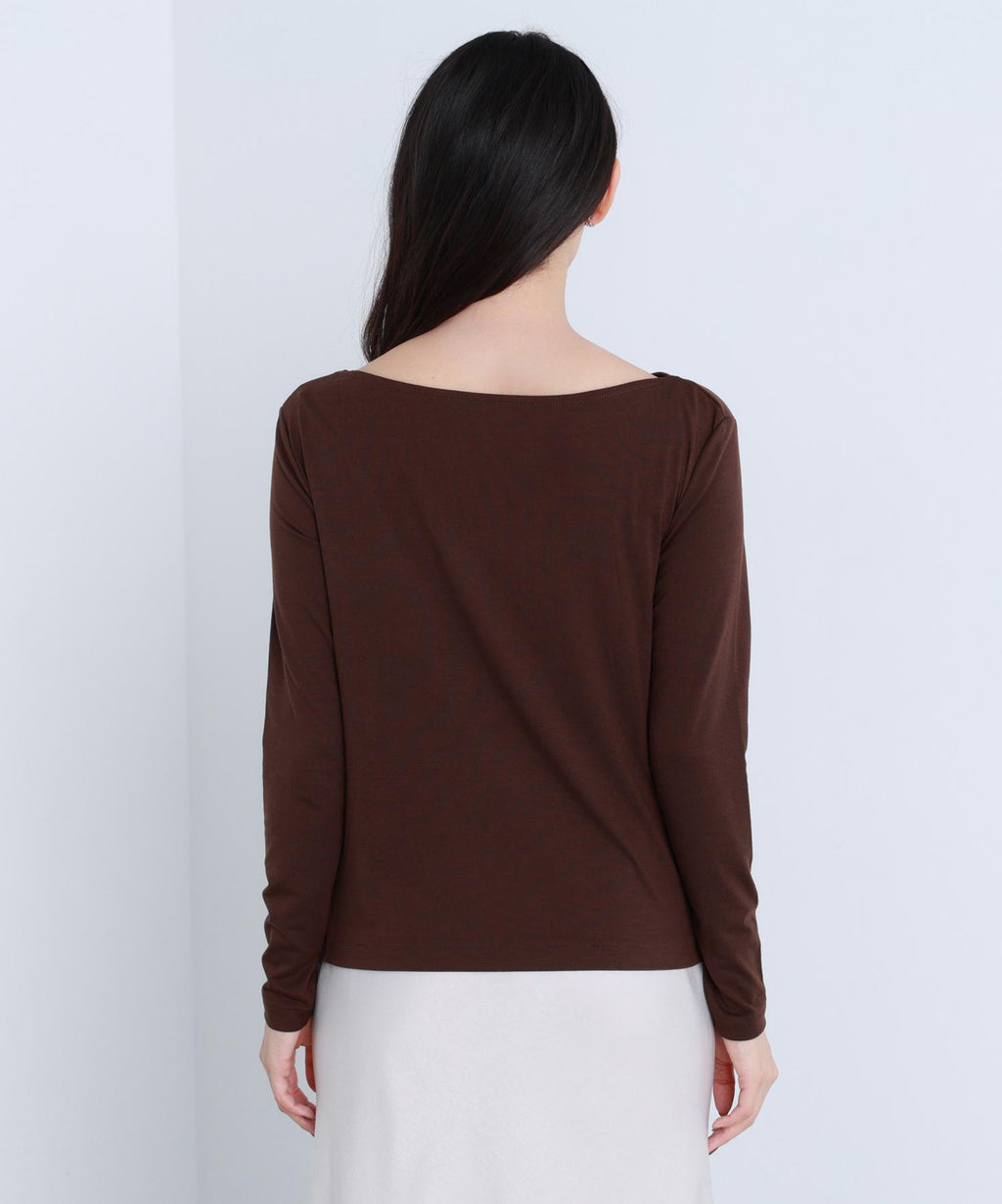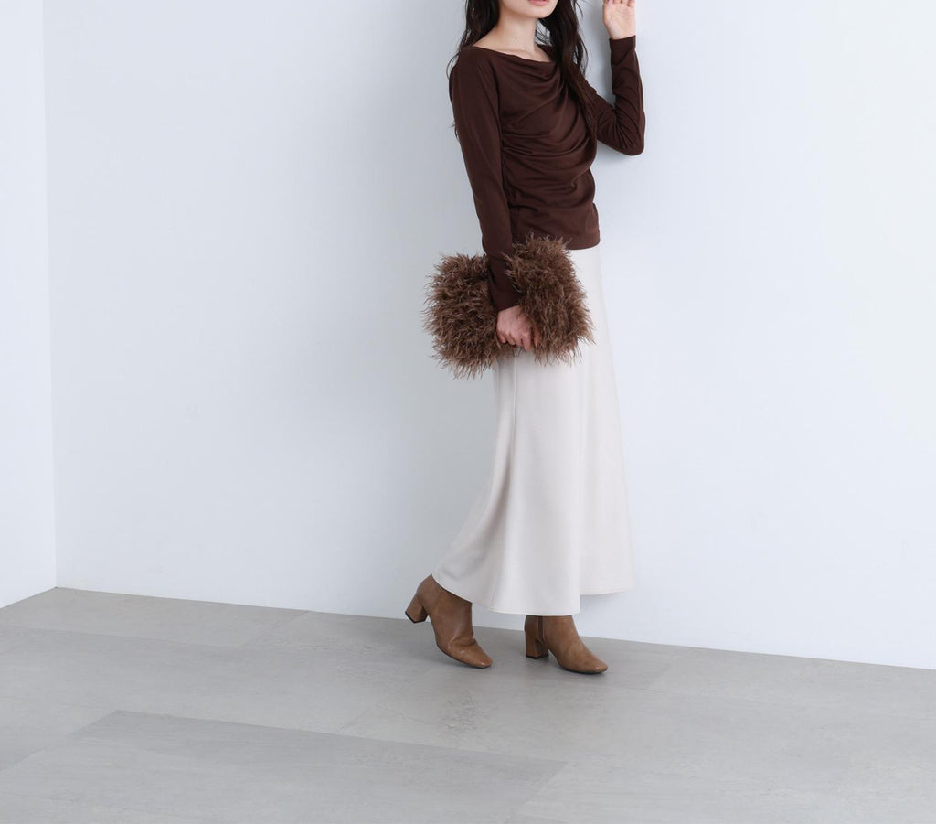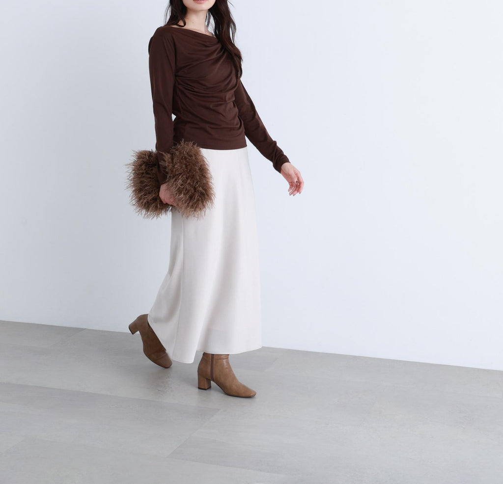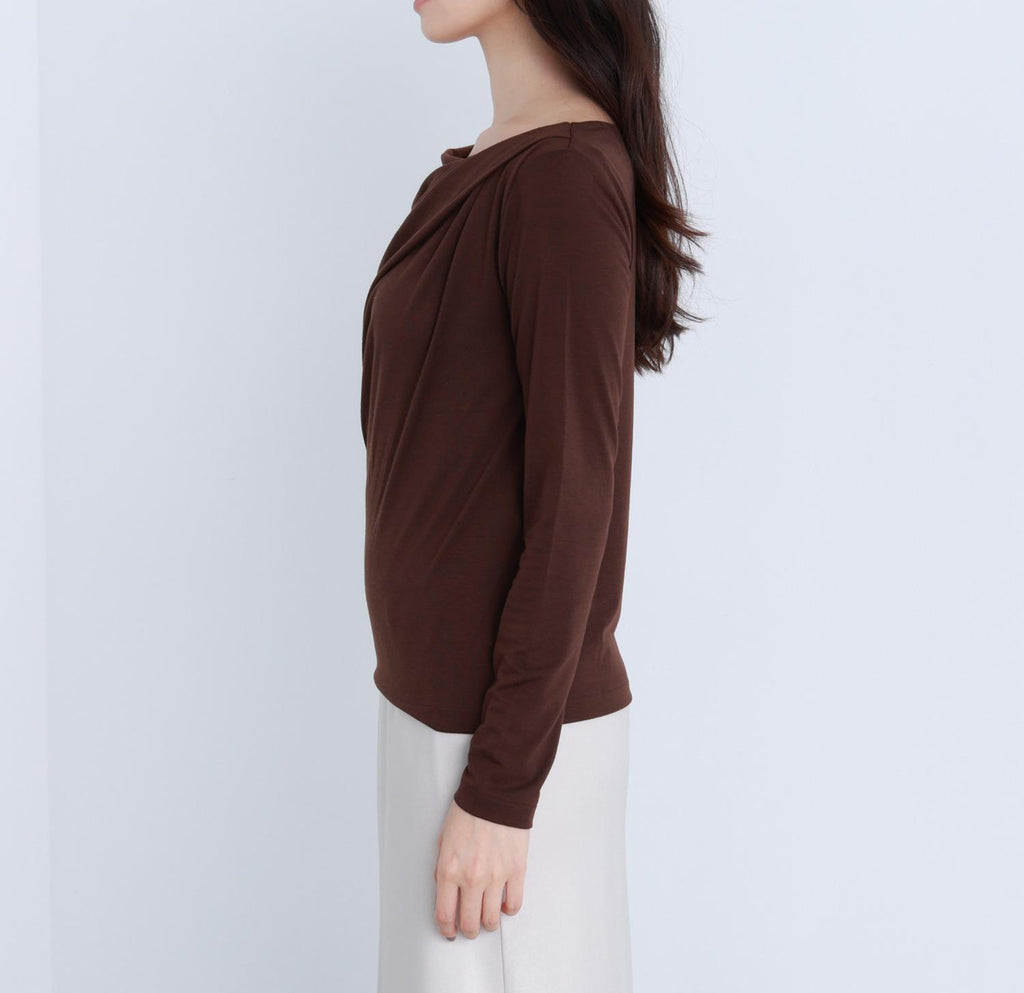 褶皺線條美麗的剪裁T恤。適度的厚度材質,非常適合炎熱的秋天。具有休閒與正式下著都容易搭配的細節魅力。由於是開領設計,帶有一點空氣感,能展現女性魅力的穿著感。