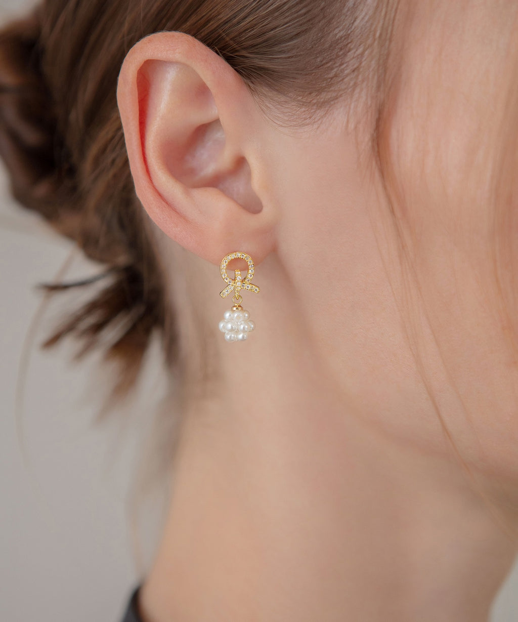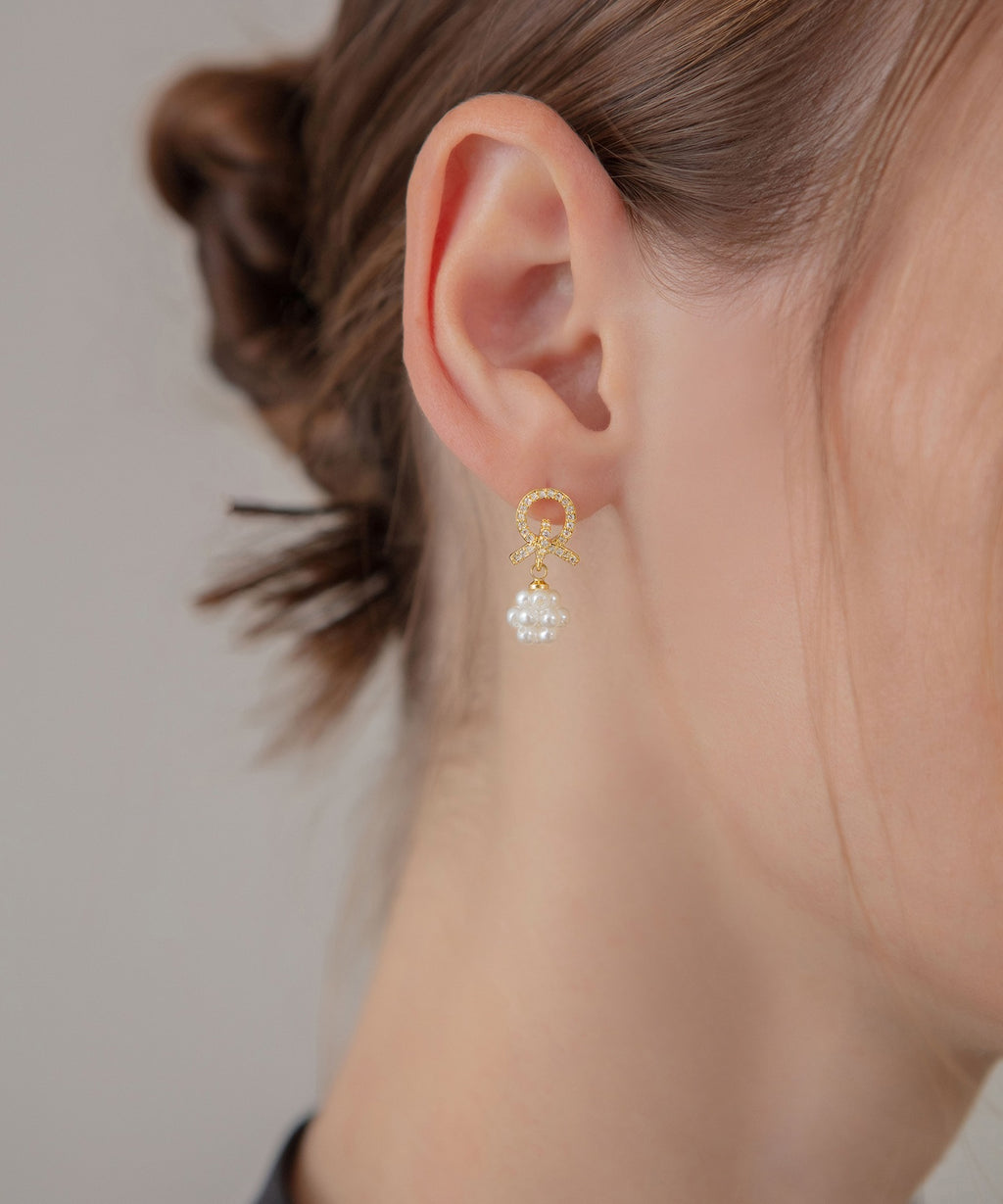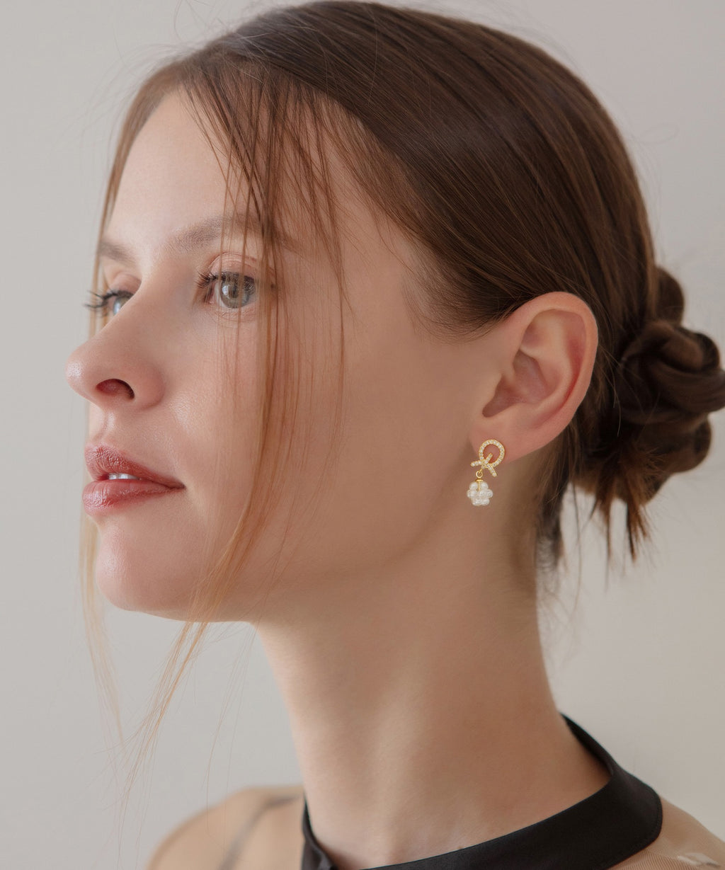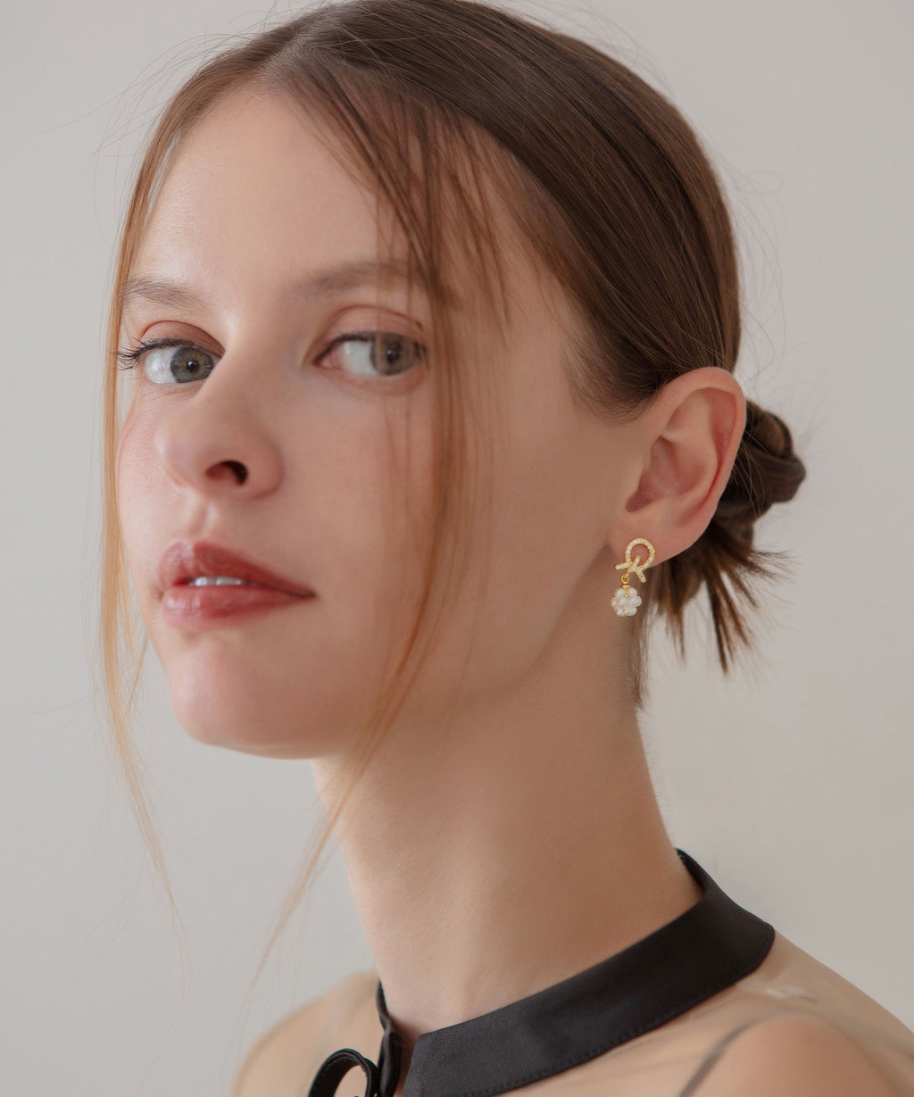 底部採用集結小粒珍珠的花朵設計,增添女性柔美的可愛印象。