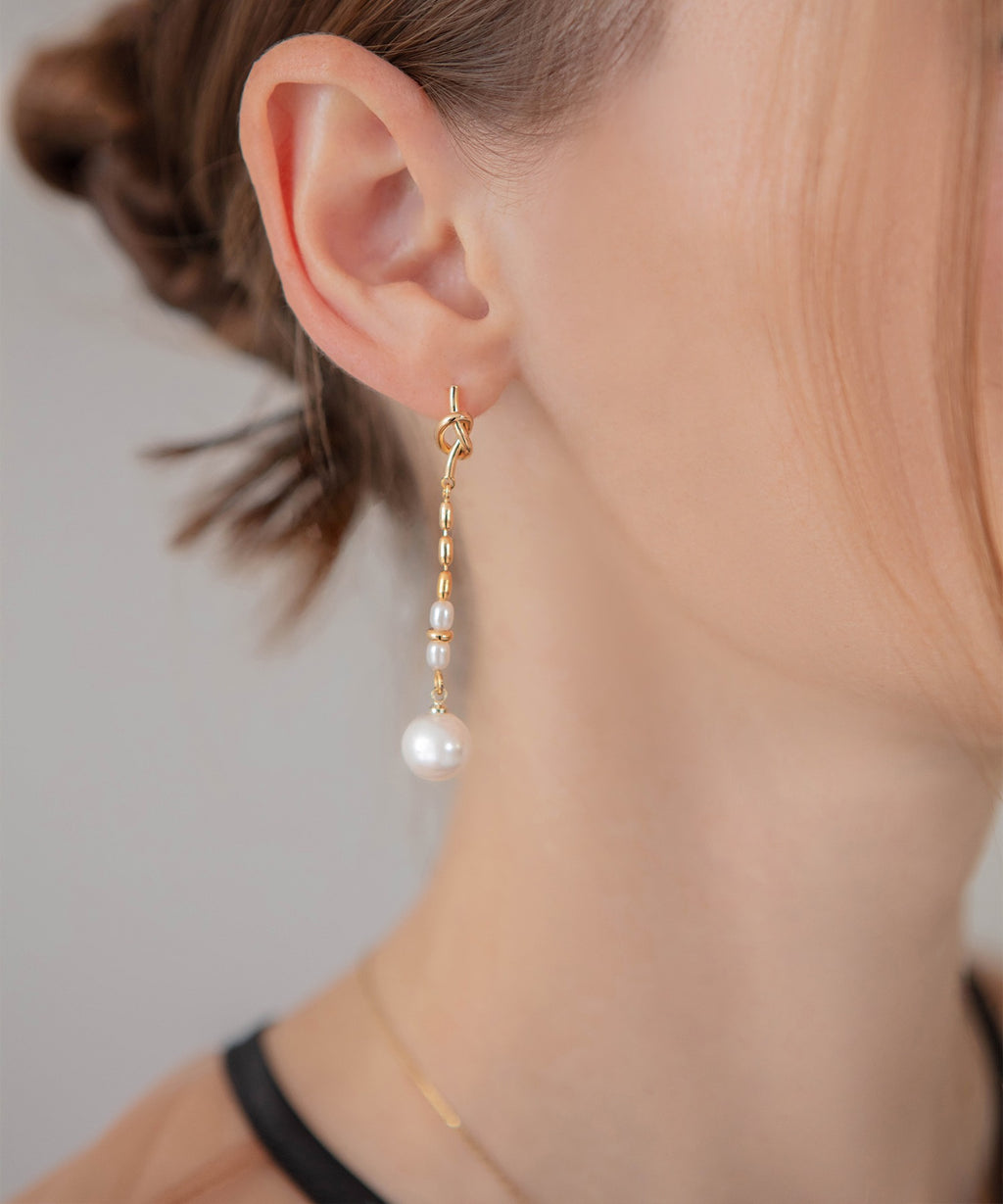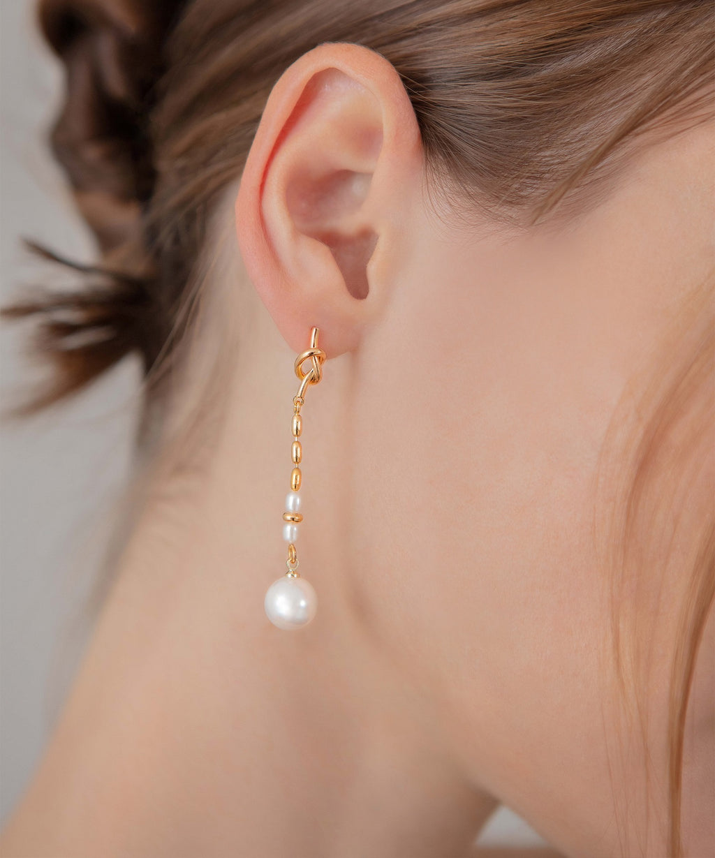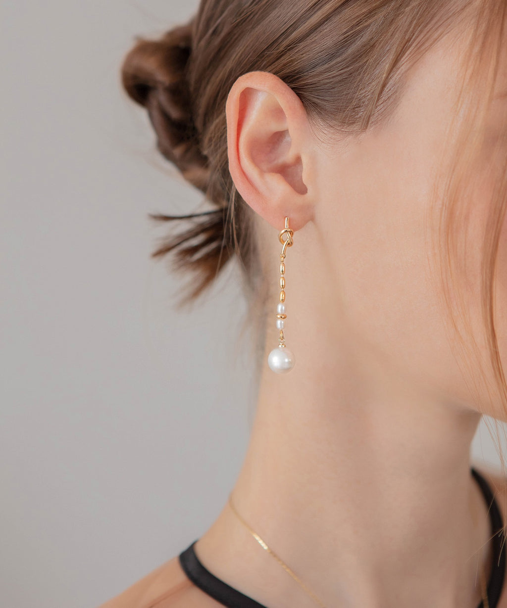 細緻的鏈條與高雅的珍珠搖曳,展現優雅的長款耳環