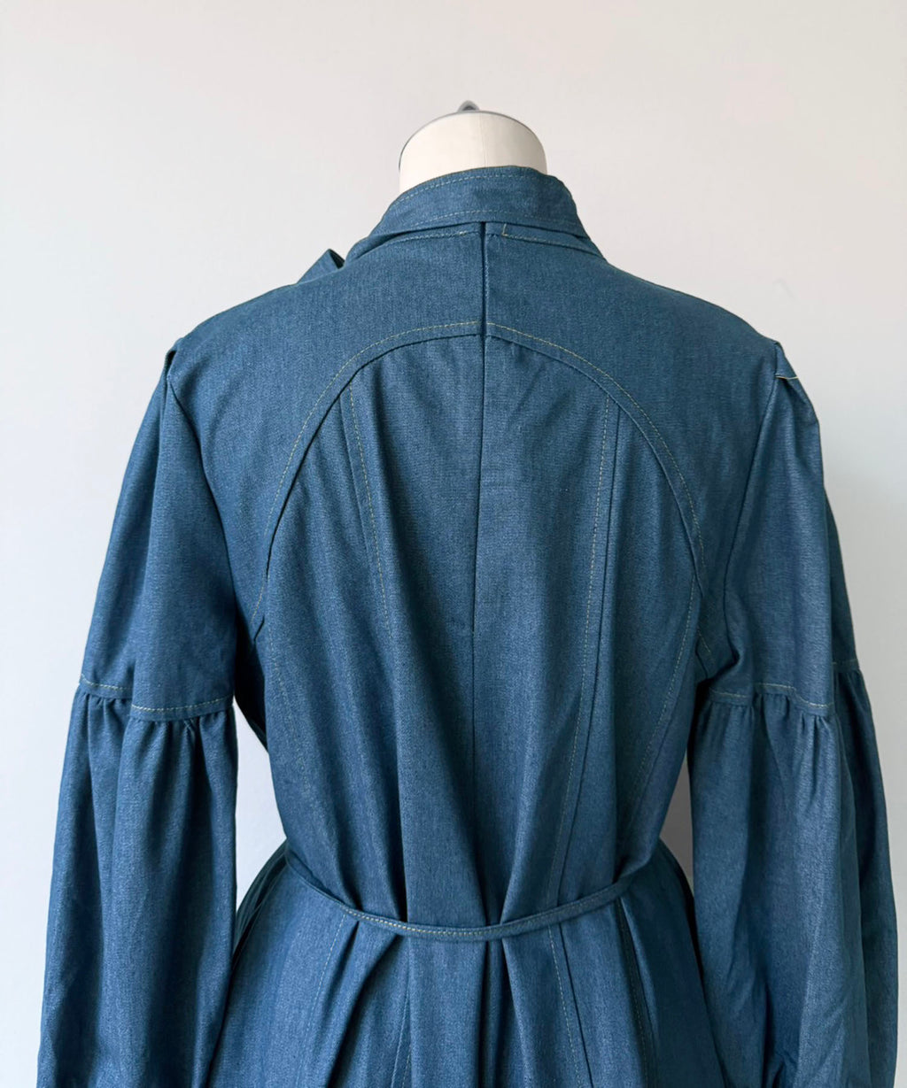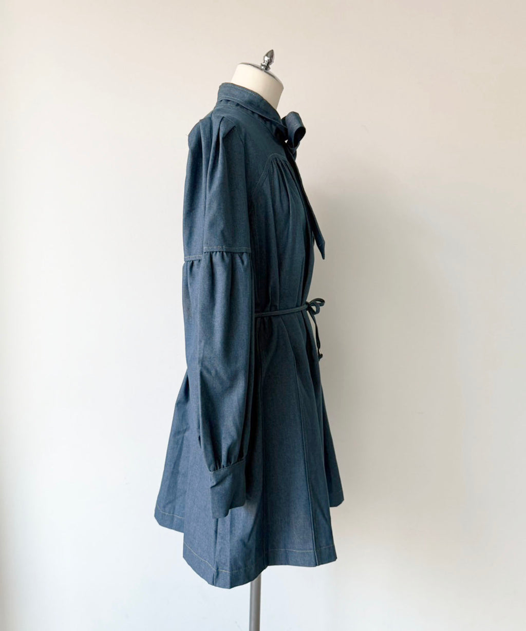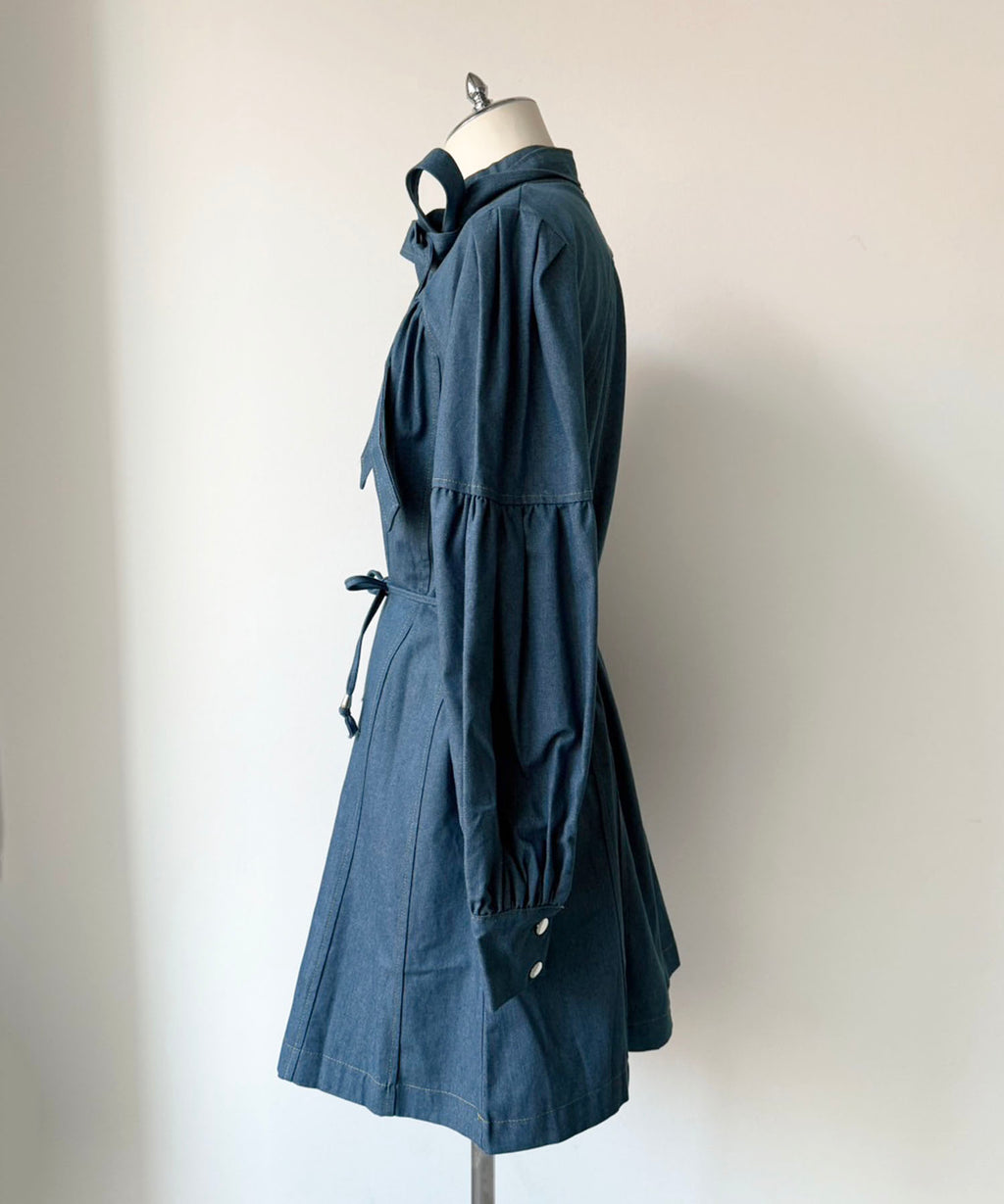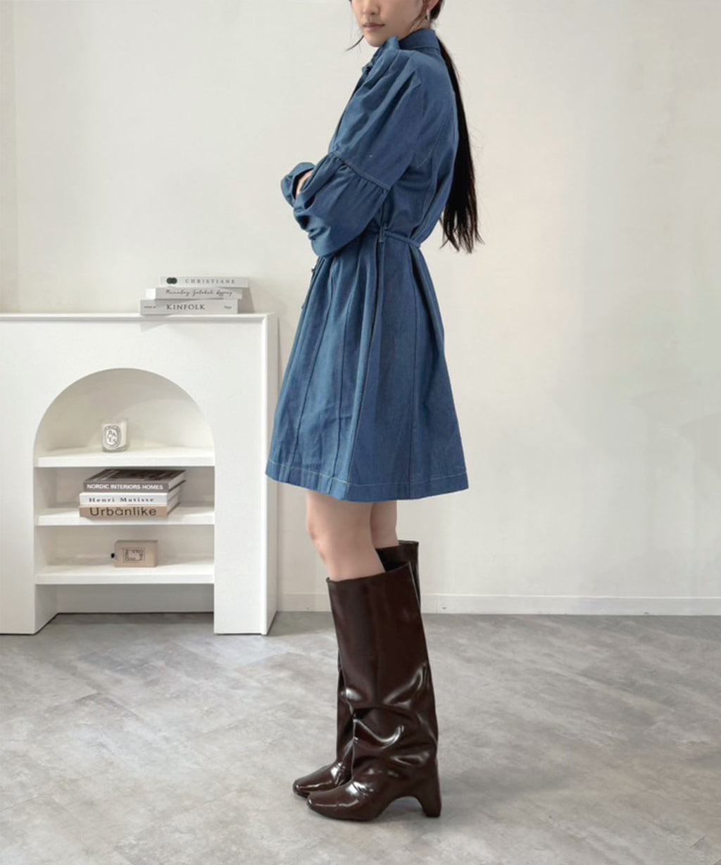 身形和袖子輪廓都很有魅力的牛仔迷你連衣裙。