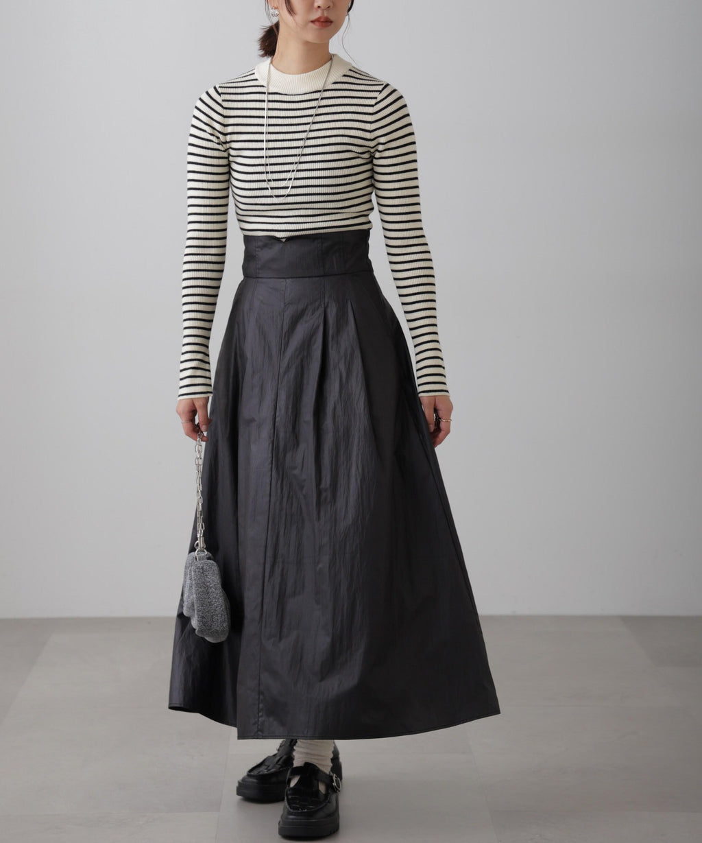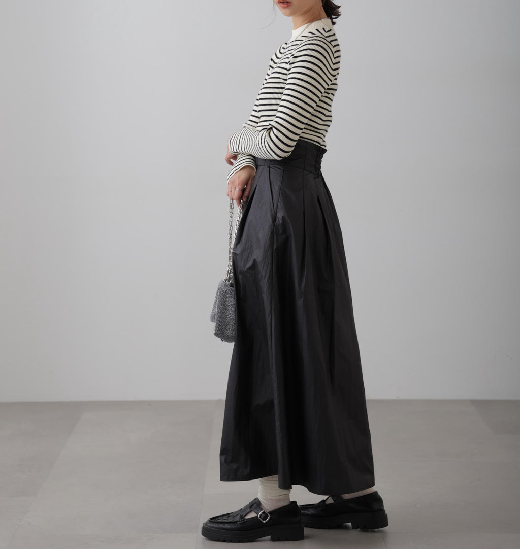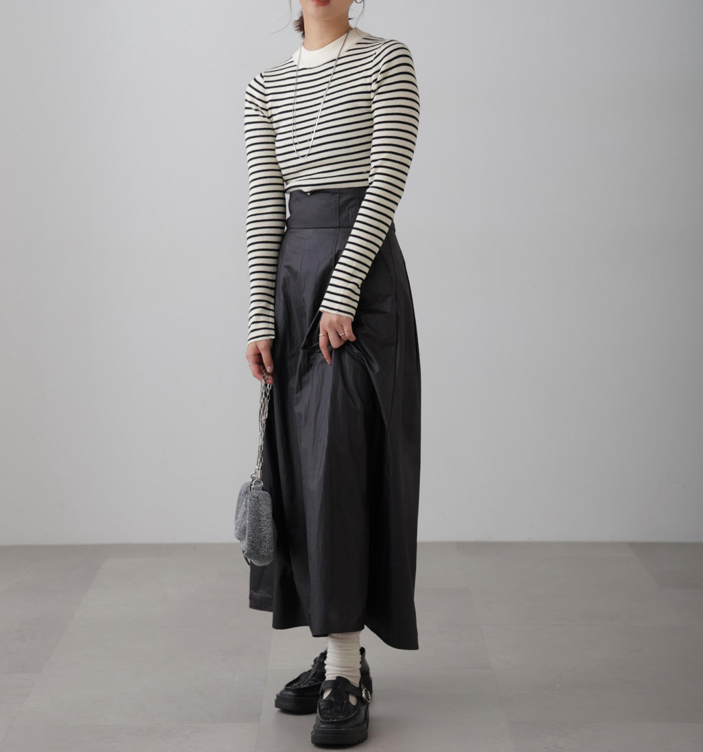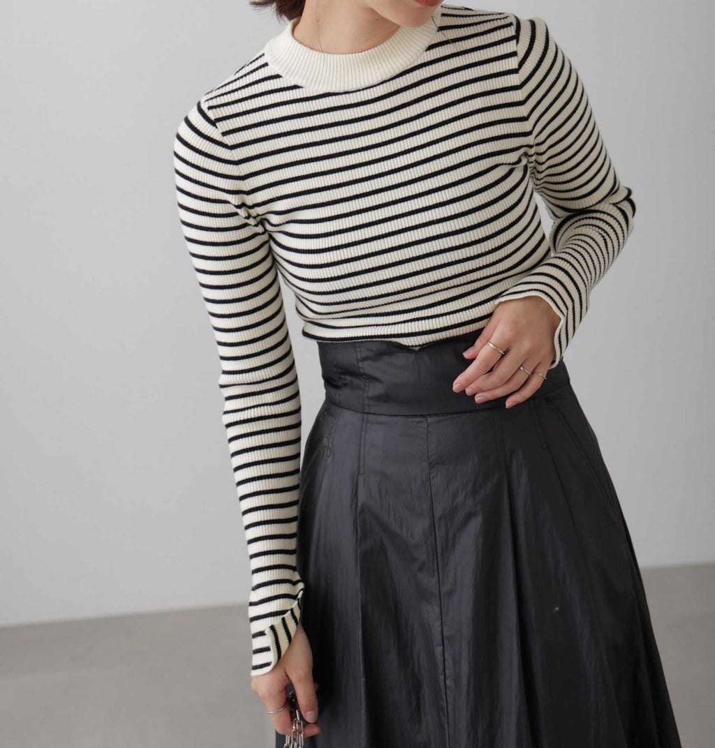 洗滌可用的機器洗滌系列。具有溫暖感的造絲/聚酯纖維/尼龍材質,特點是觸感良好的穿著感。非常適合內搭的瓶領針織衫,在合身的簡約輪廓中,袖口設有開衩以增添亮點。不僅可以單獨穿著,還可以作為外套或吊帶連衣裙等的內搭,易於搭配的日常單品。此外,由於合身的輪廓,即使塞進下身服裝中也很容易穿著。※洗滌時請選擇弱水流模式,並放入網袋中洗滌。