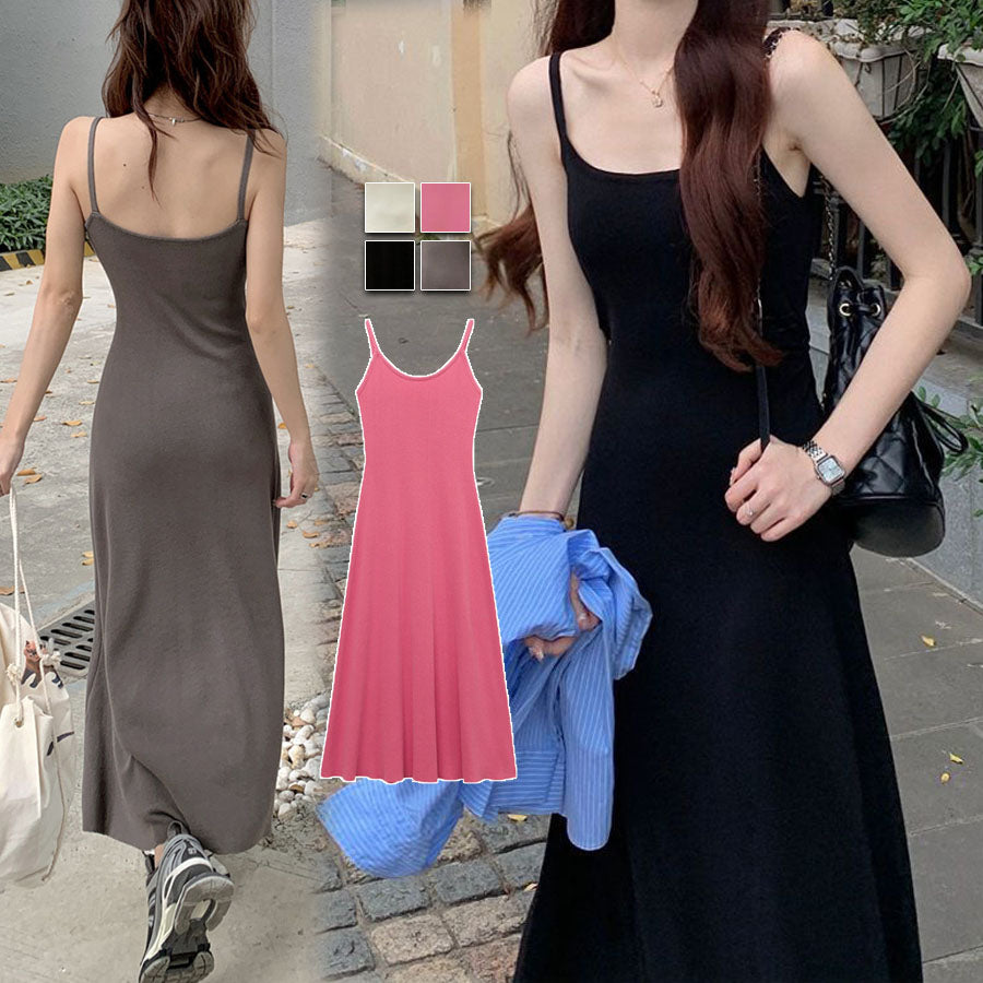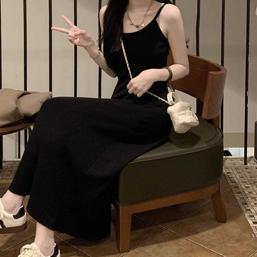 簡單易用的經典吊帶式針織連衣裙。