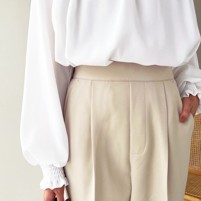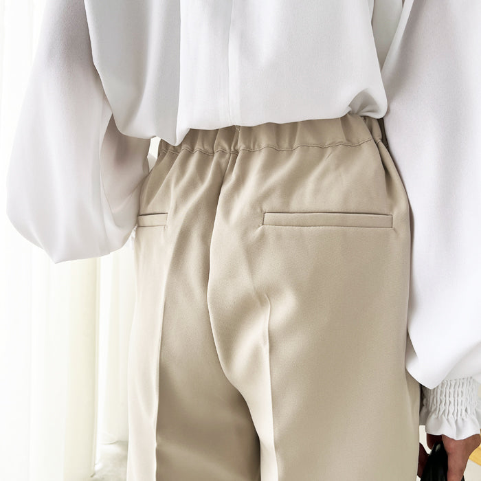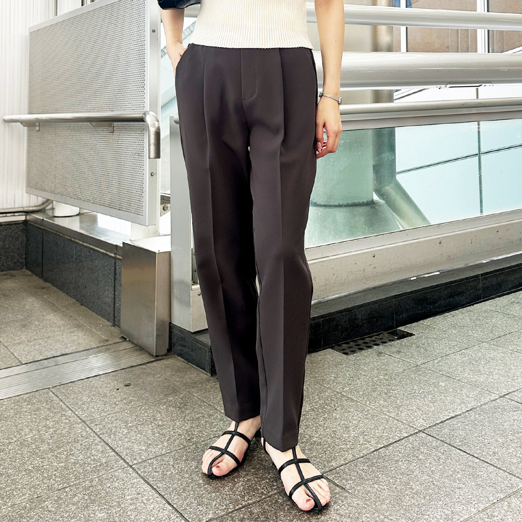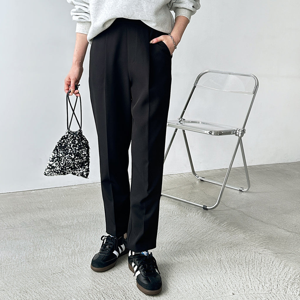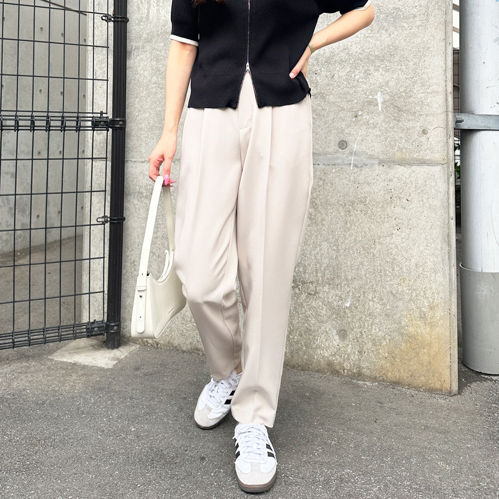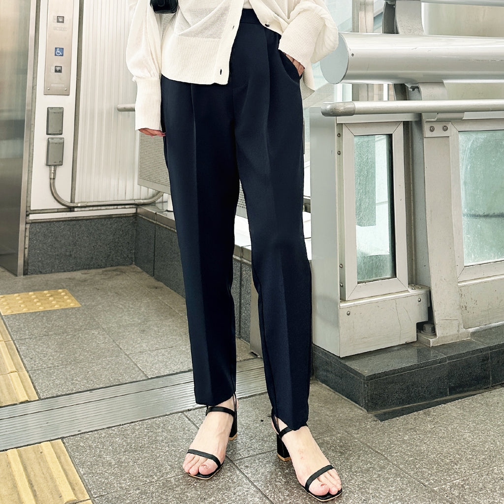 雖然是基本款,但堅持展現美腿的錐形剪裁褲子。