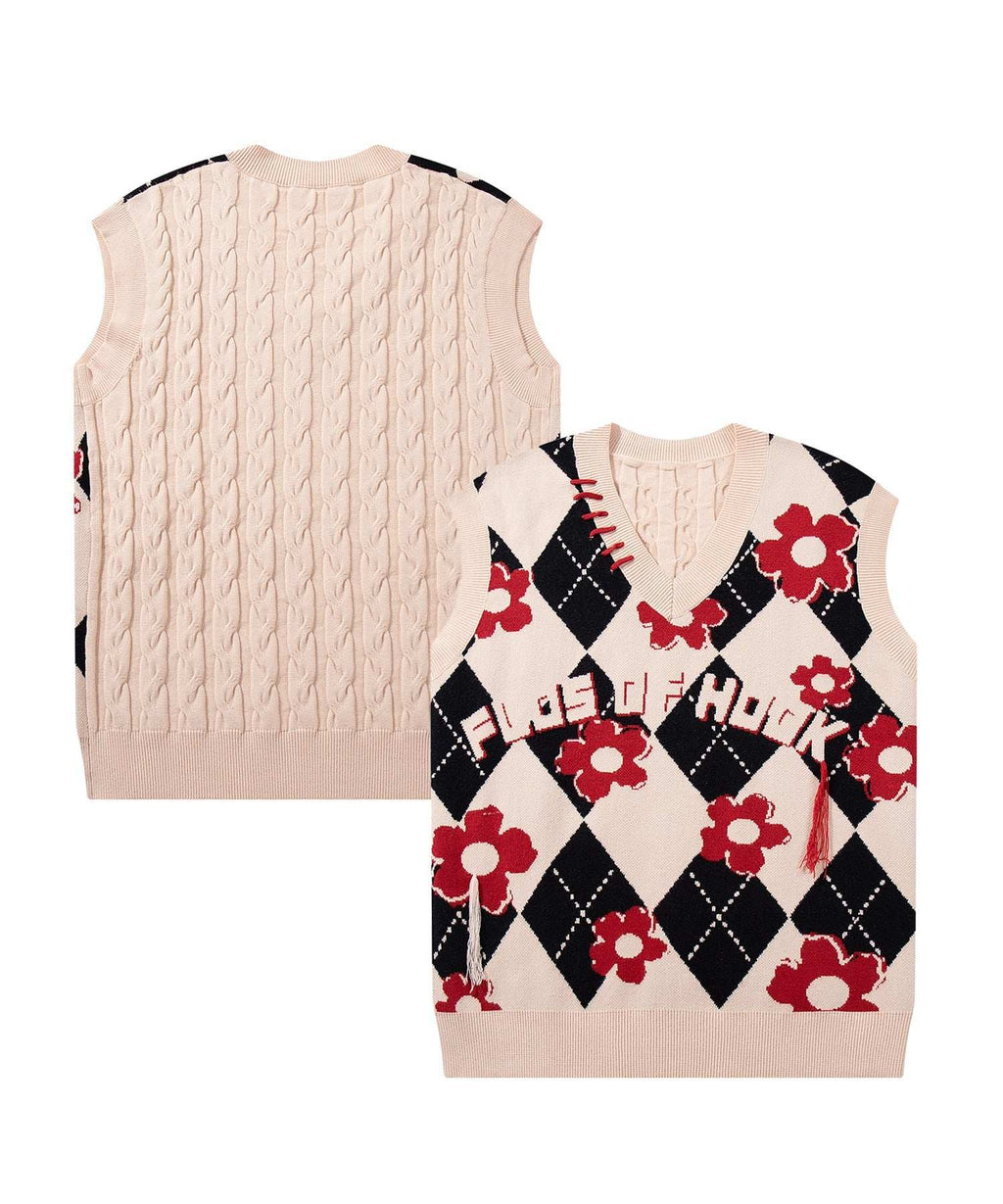 アイモハ aimoha HOOK -original- 花與阿爾蓋爾圖案瘋狂針織背心