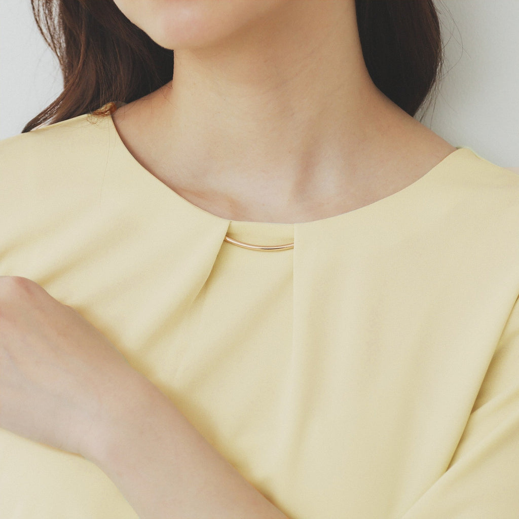 ・前面部分裝飾有摺褶和金色配件,即使沒有配飾也能展現出存在感的穿著效果。