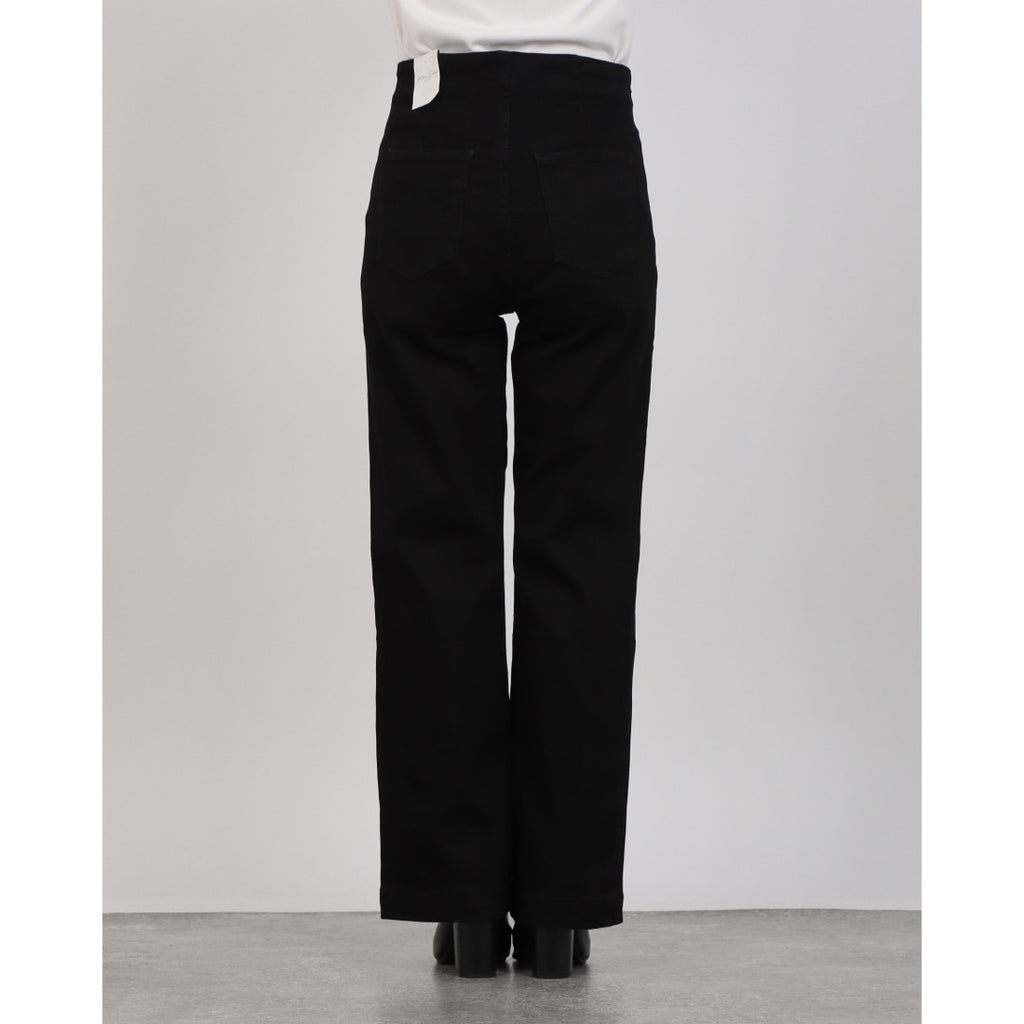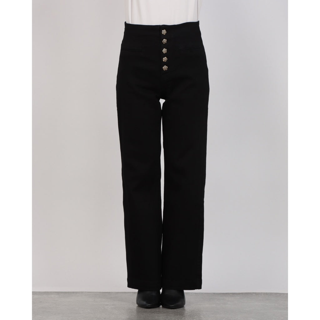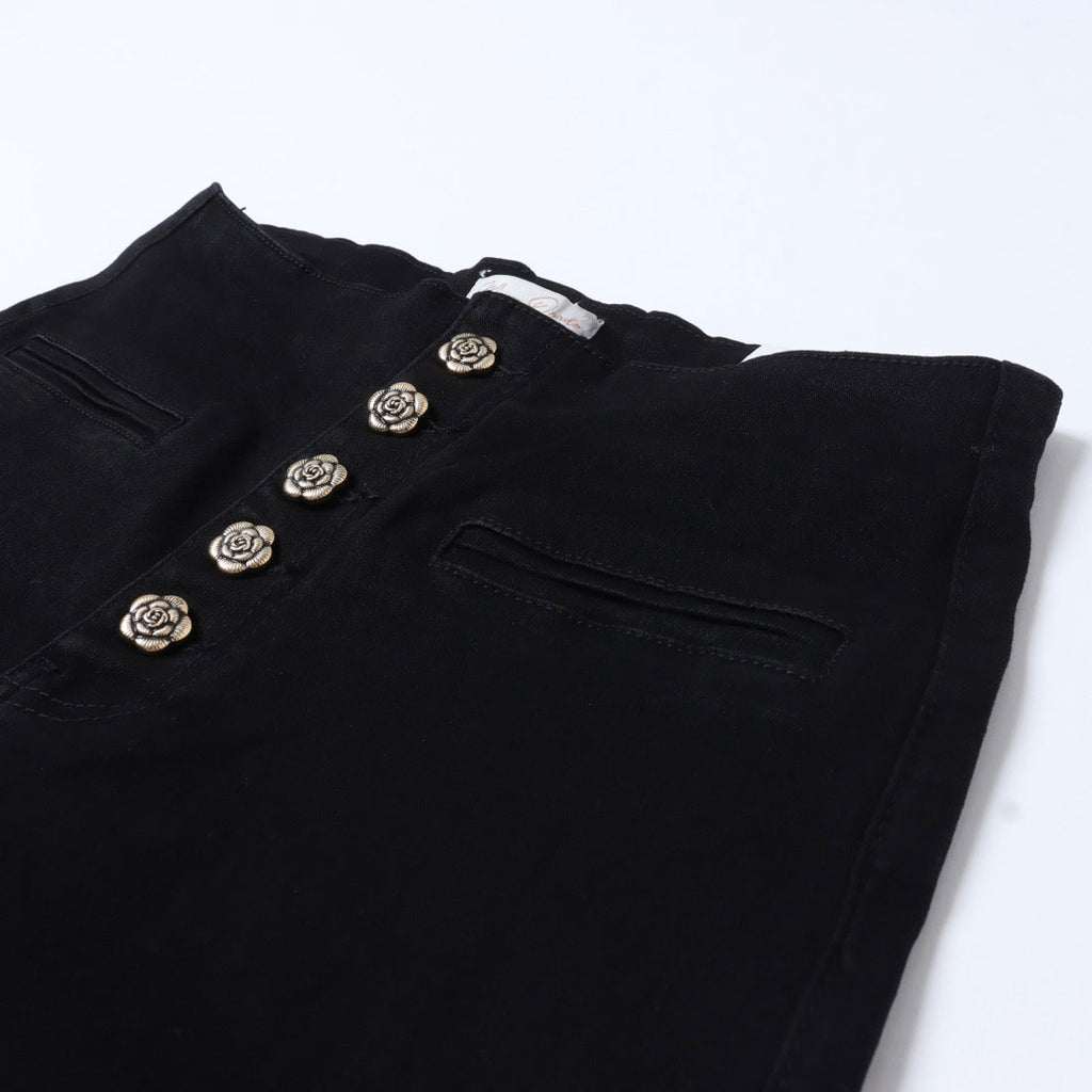 前面排列的鈕扣成為了高腰褲的亮點。