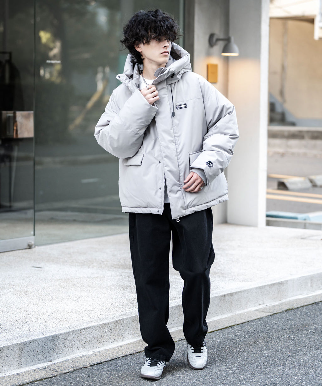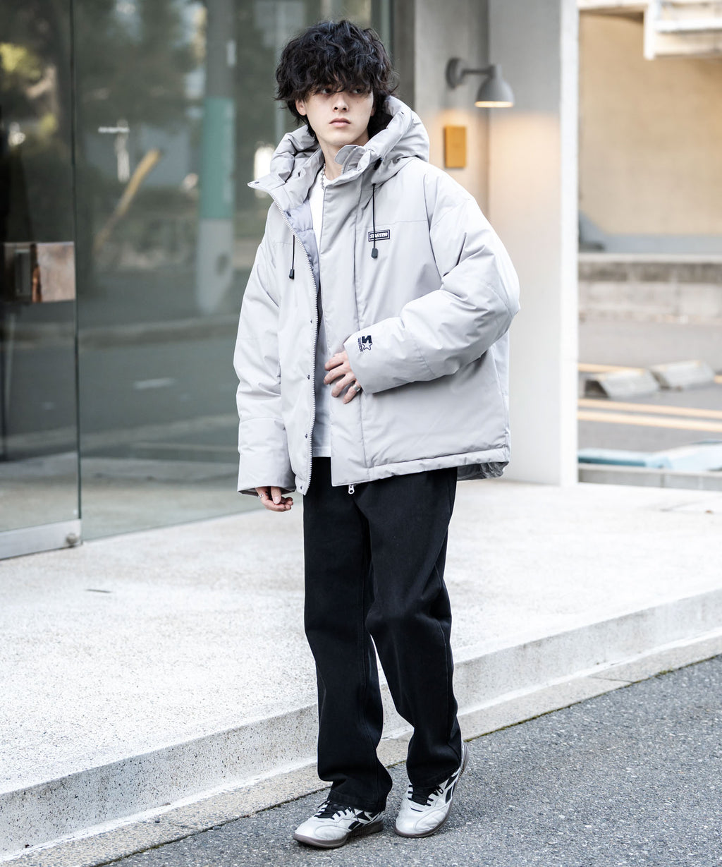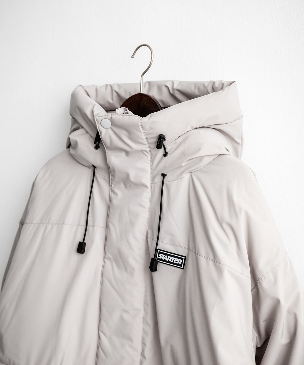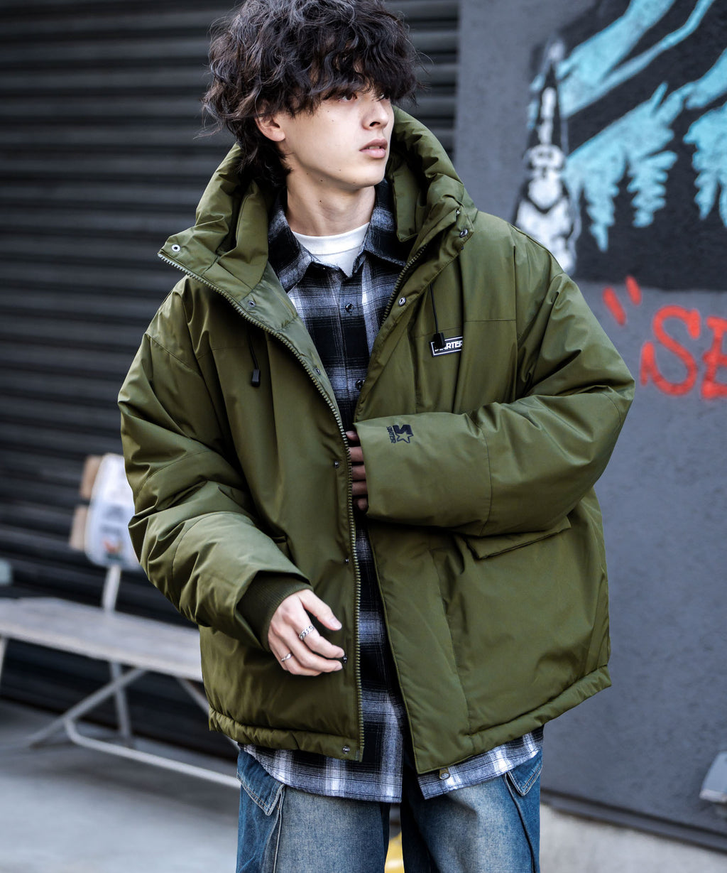 結合了防寒性和設計感的聚胺酯纖維中綿連帽外套。