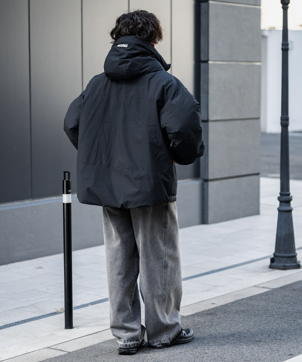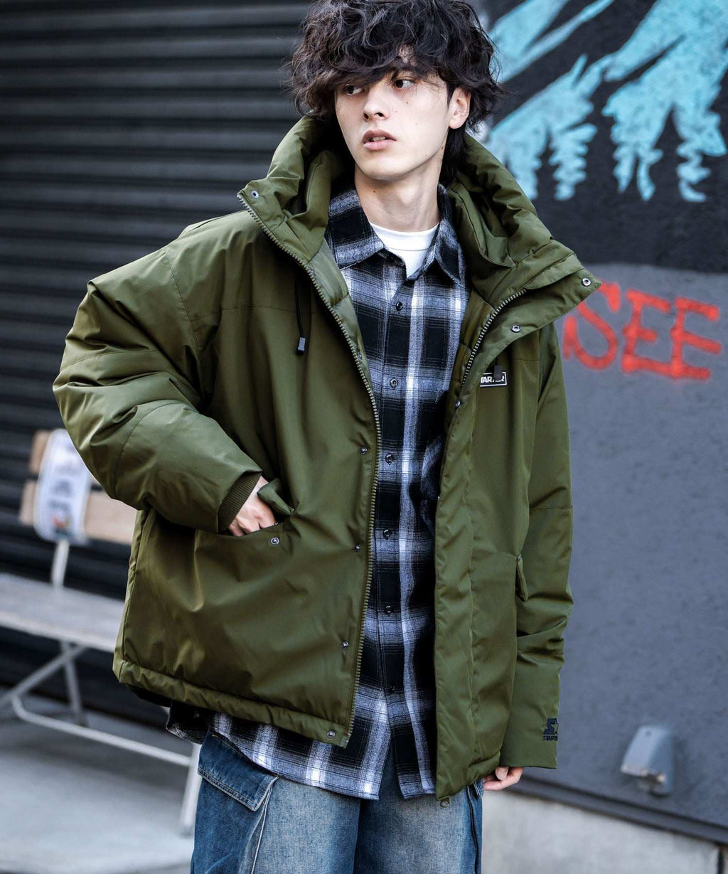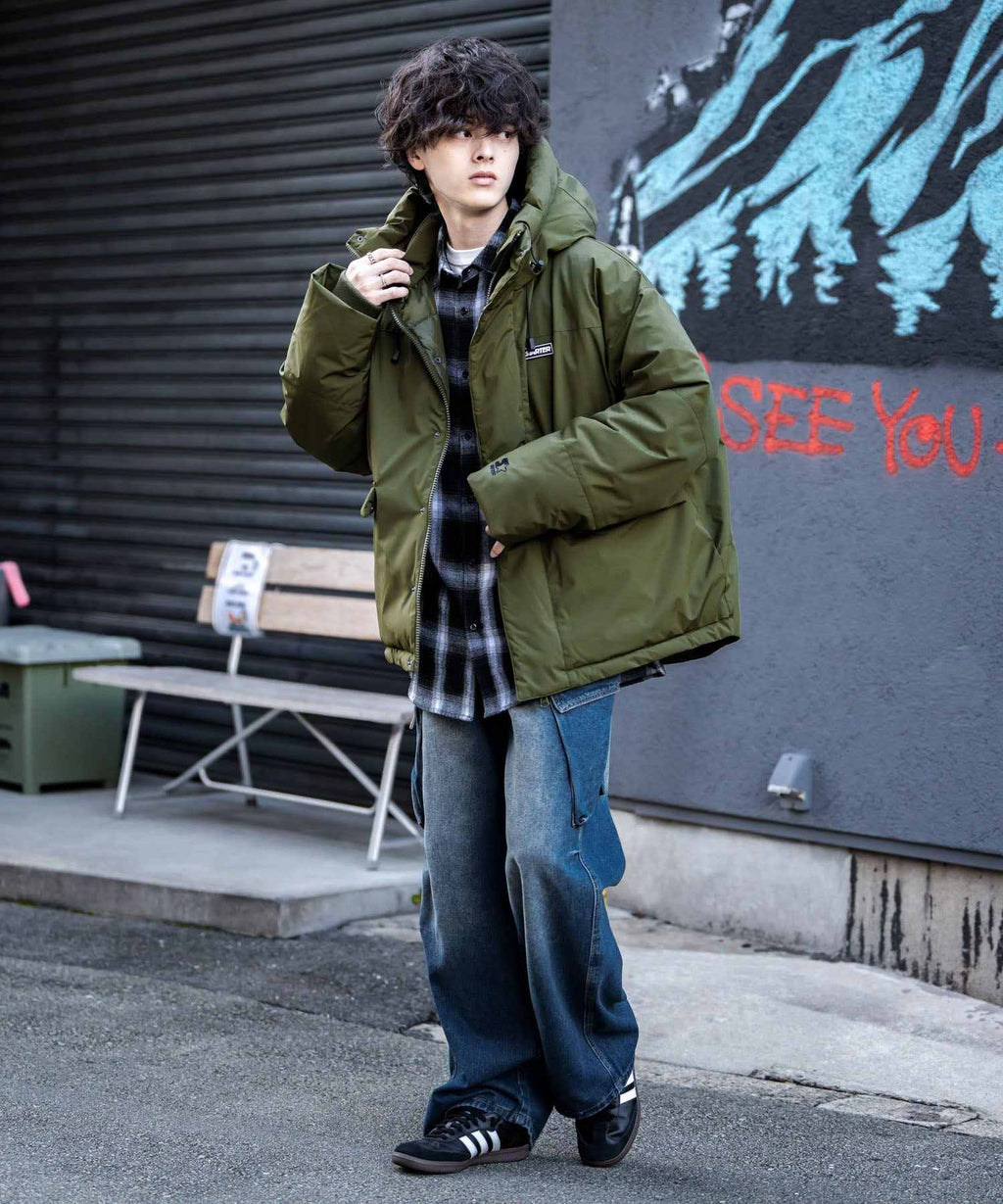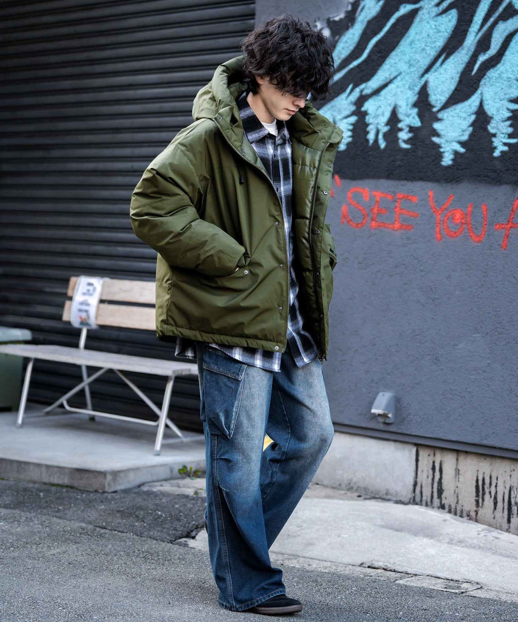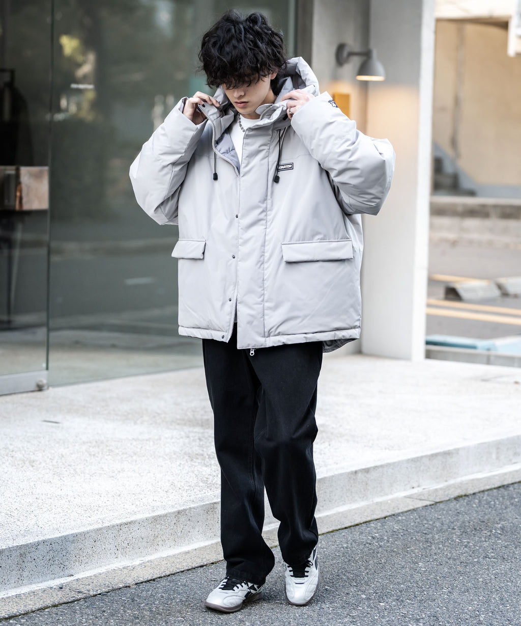 結合了防寒性和設計感的聚胺酯纖維中綿連帽外套。