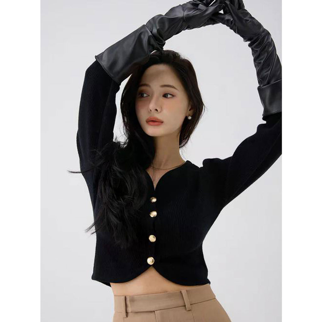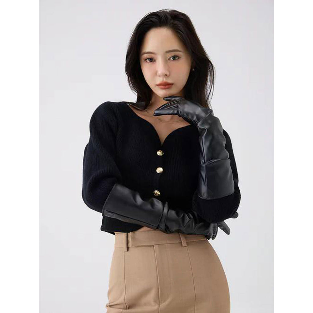 美麗地展現鎖骨的心形領線條令人印象深刻的開衫。