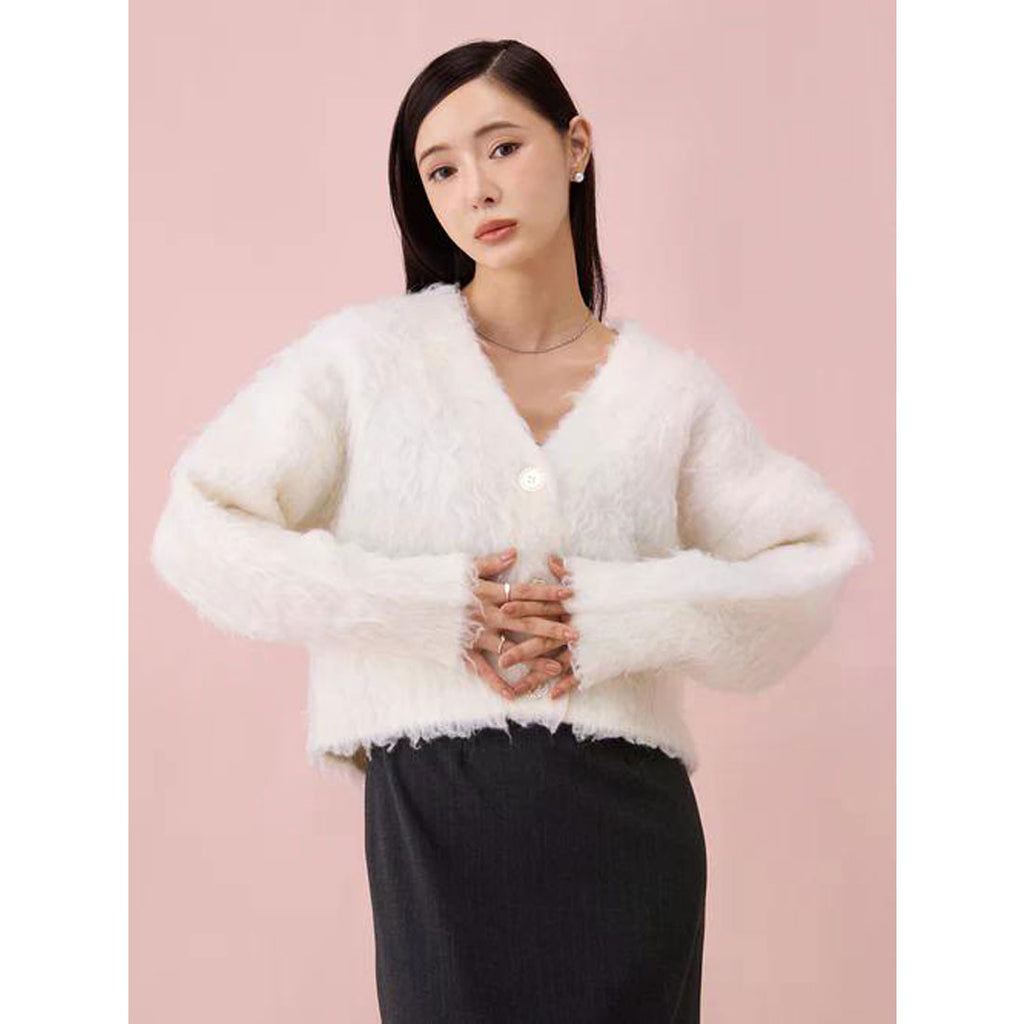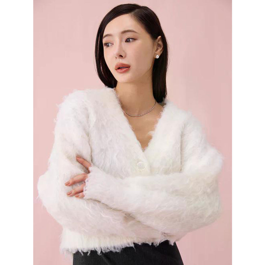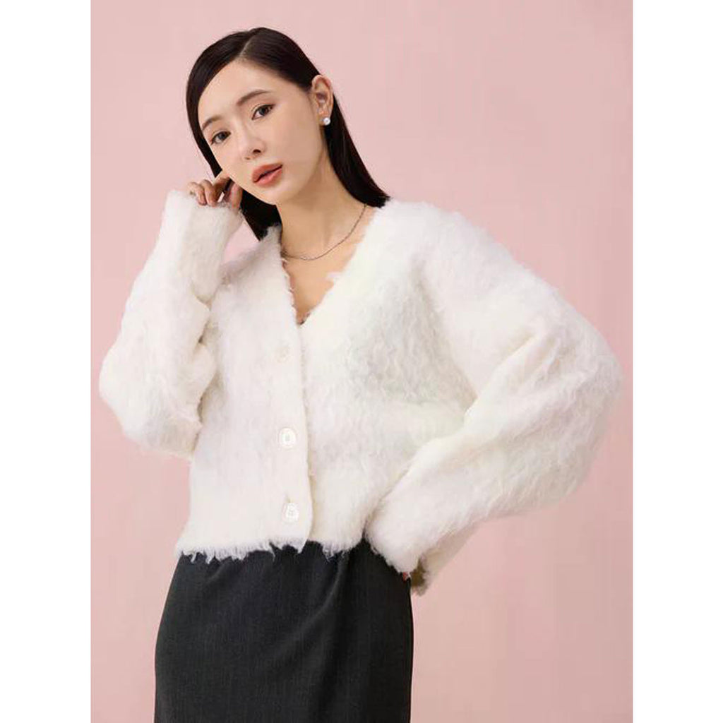 立體且蓬鬆的毛絨感材質是這件開衫的魅力所在。