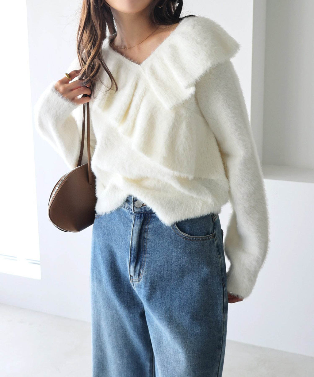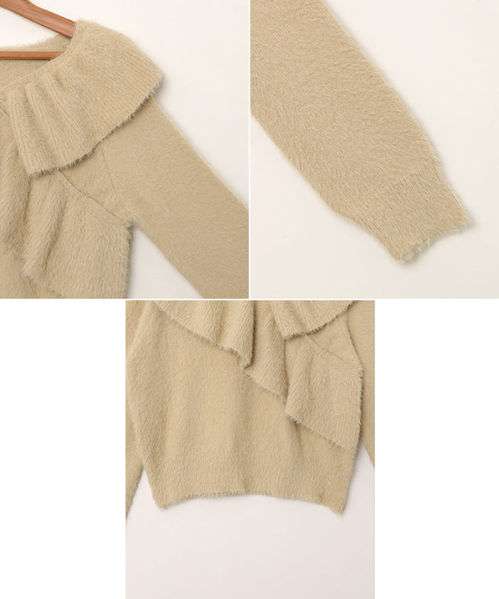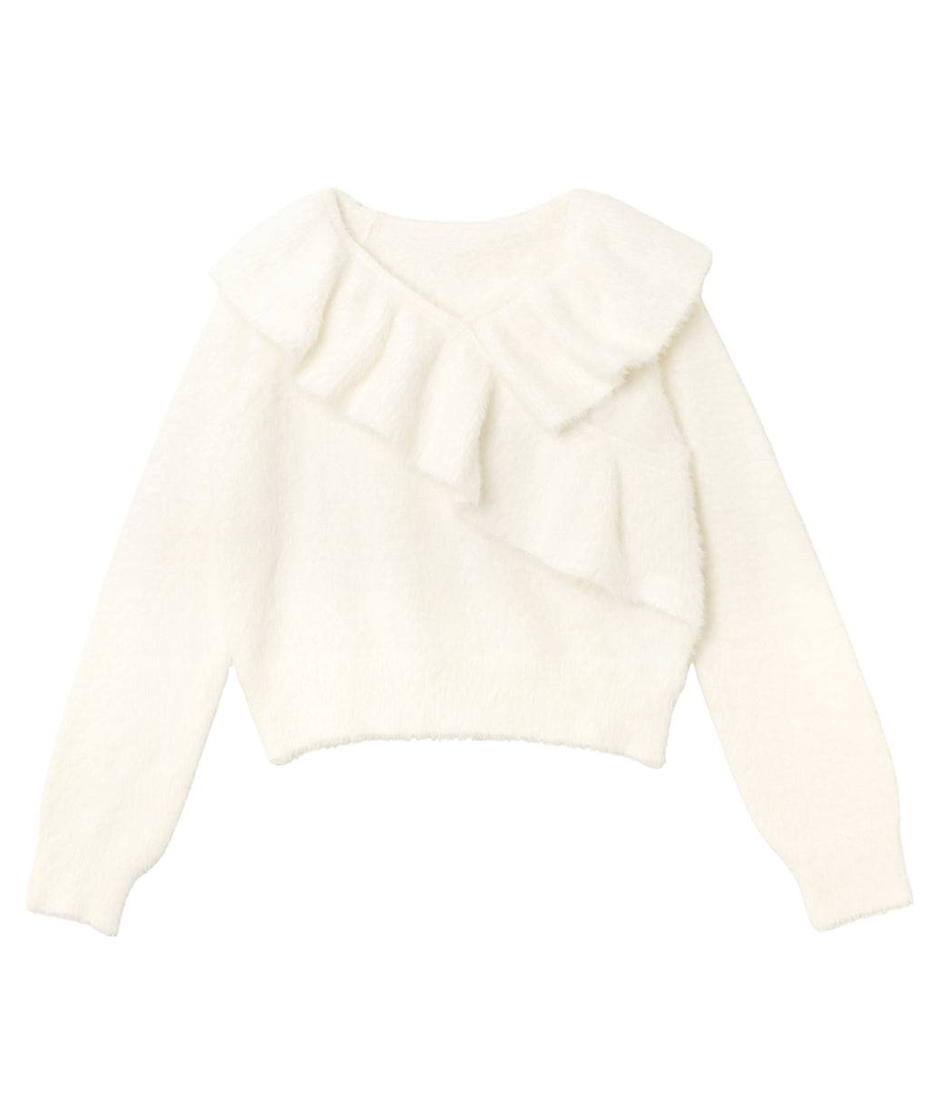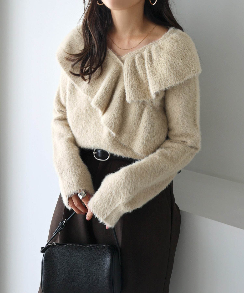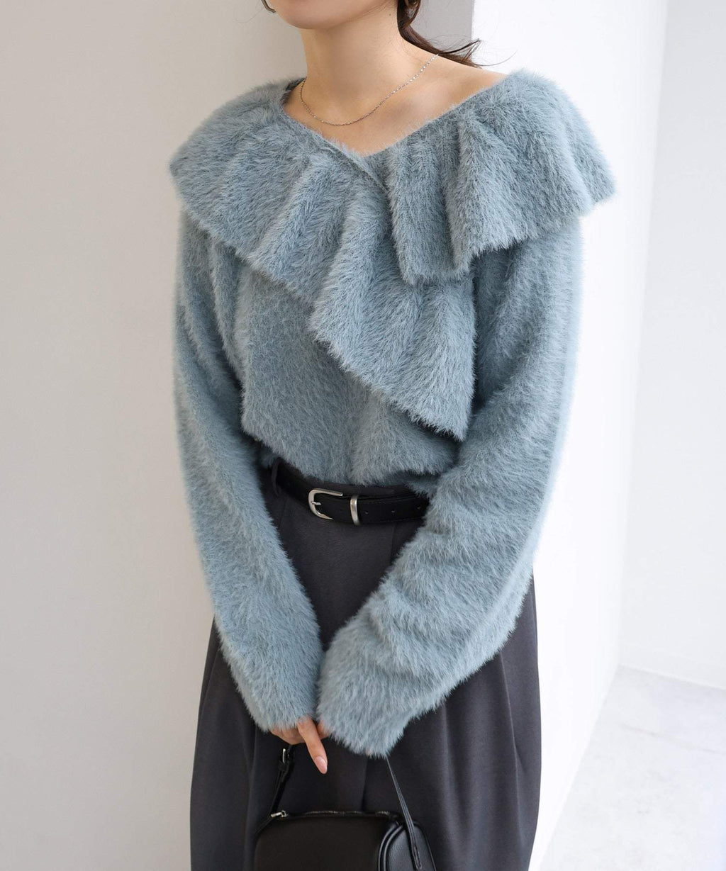 and me シャギー 起毛 クロス フリル ニット 上衣