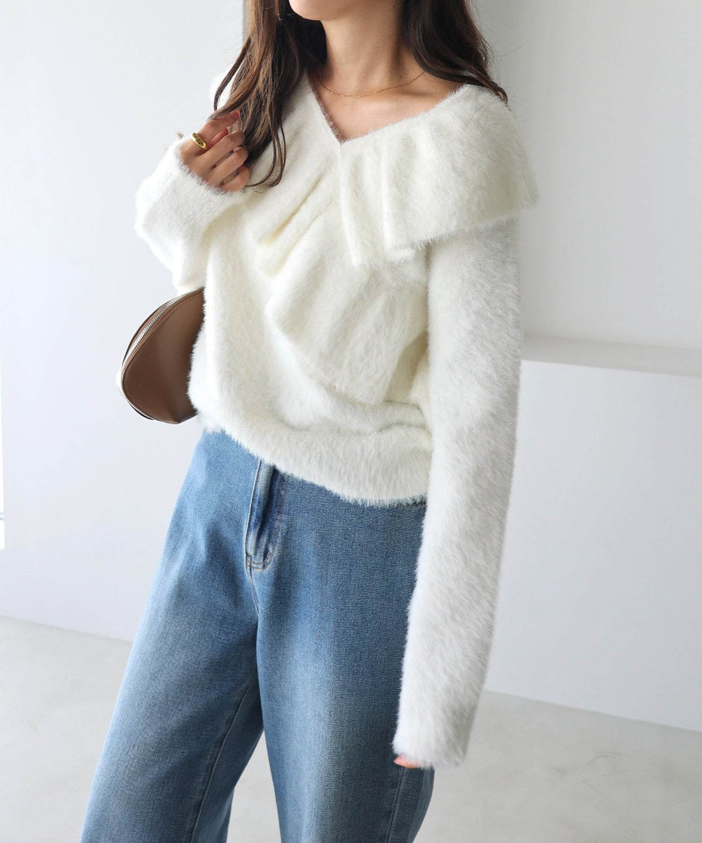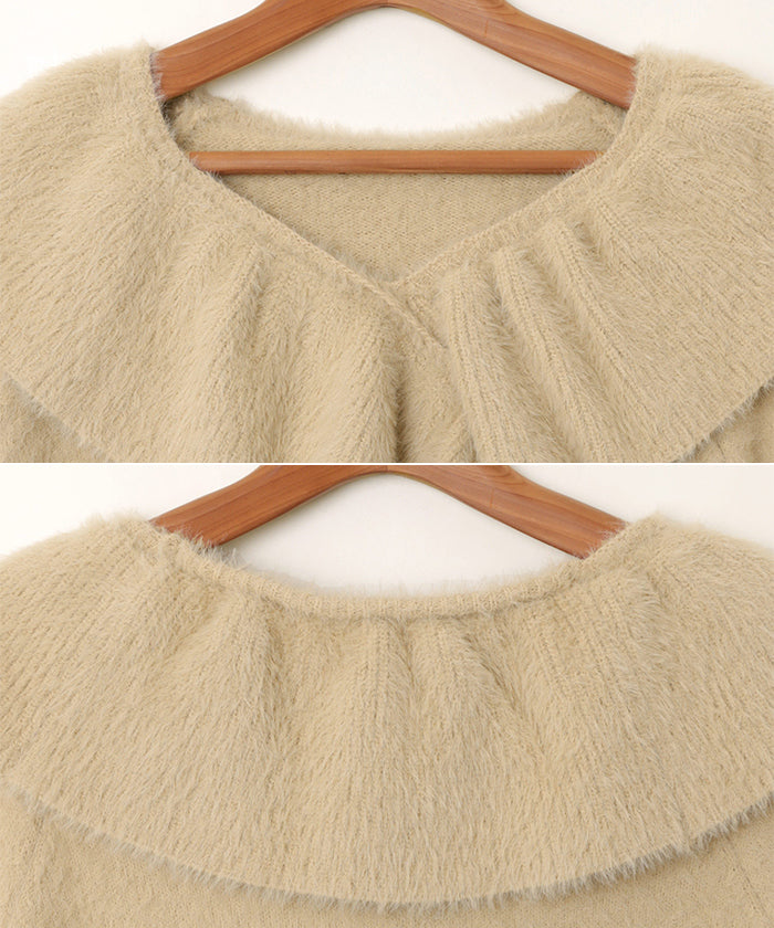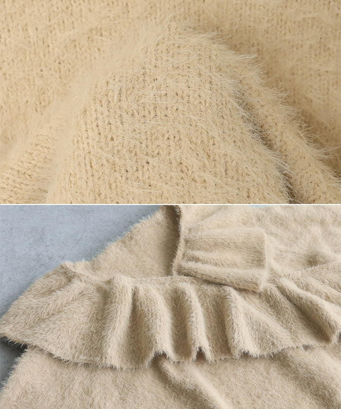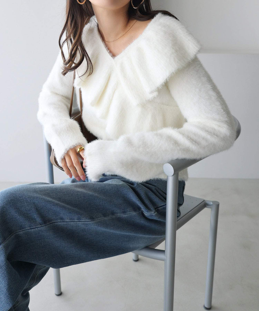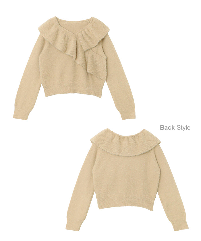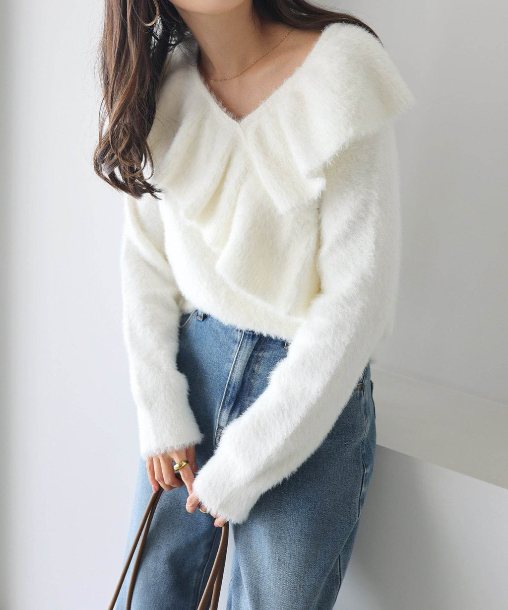 and me シャギー 起毛 クロス フリル ニット 上衣