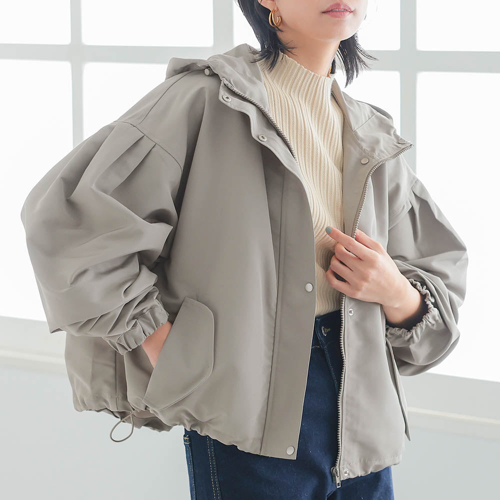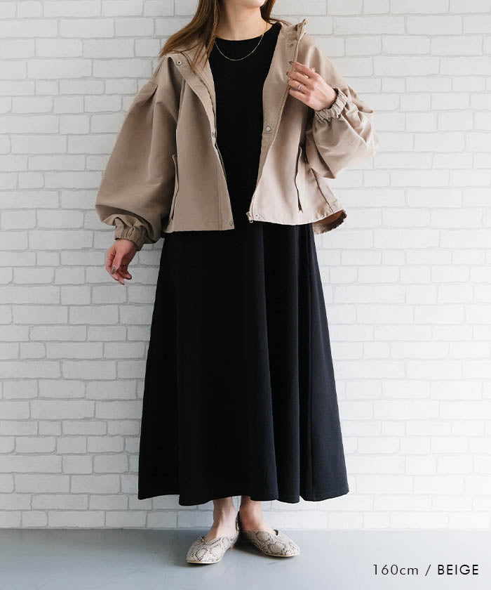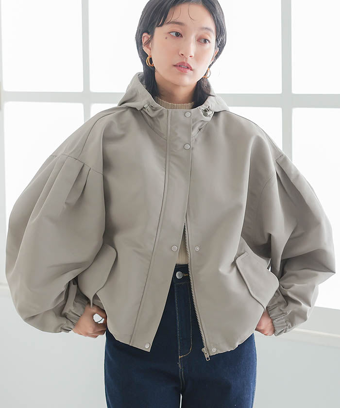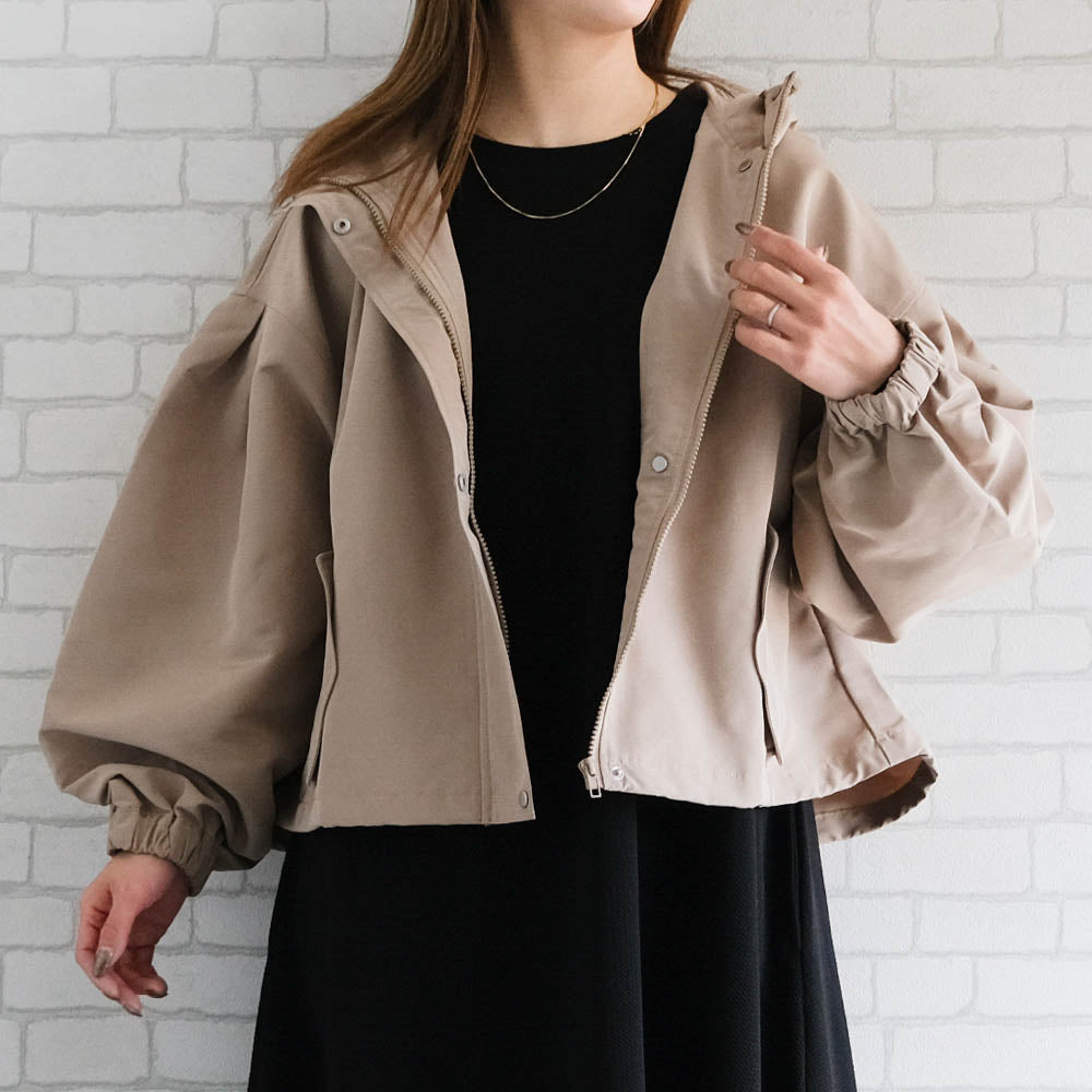 具有啞光質感的優雅印象的蓬鬆袖山地外套