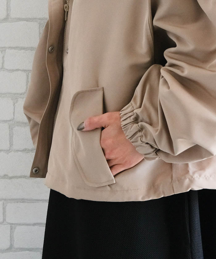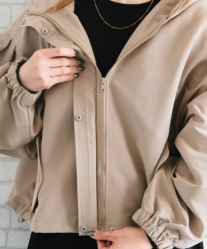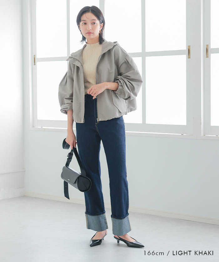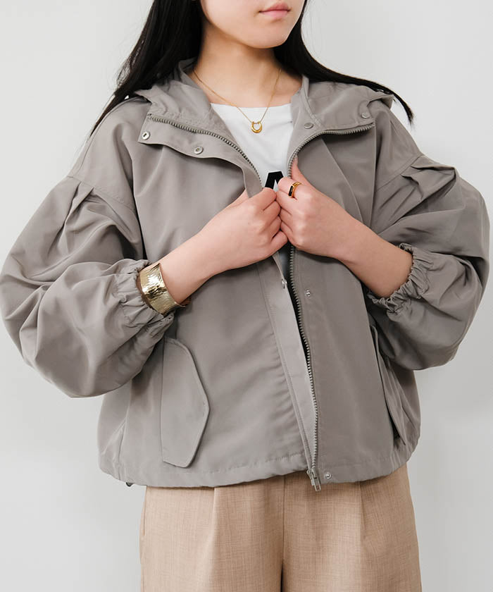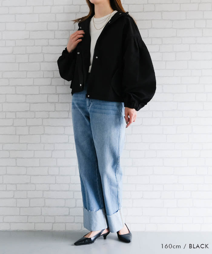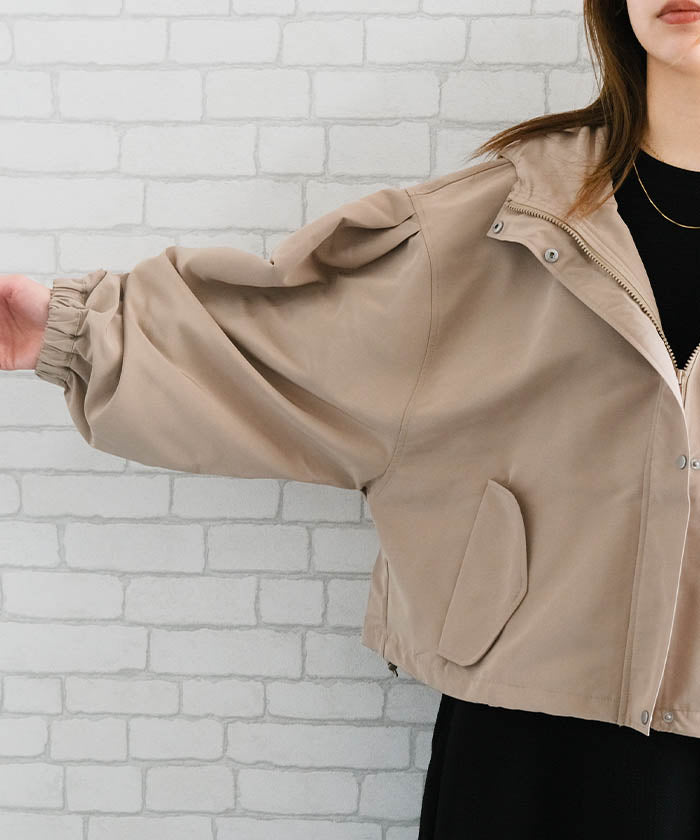 具有啞光質感的優雅印象的蓬鬆袖山地外套