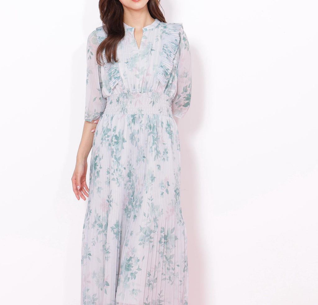 蝴蝶結的原創花卉圖案印花連衣裙,輪廓模糊。採用透膚感的楊柳材質,營造清涼感。配有袖子,無需擔心二頭肌,一件即可穿著,令人高興。搭配毛圈背心,也推薦具有潮流感的搭配。秋天搭配外套也可以穿得很漂亮。※由於拍攝時的照明原因,顏色可能看起來不同。