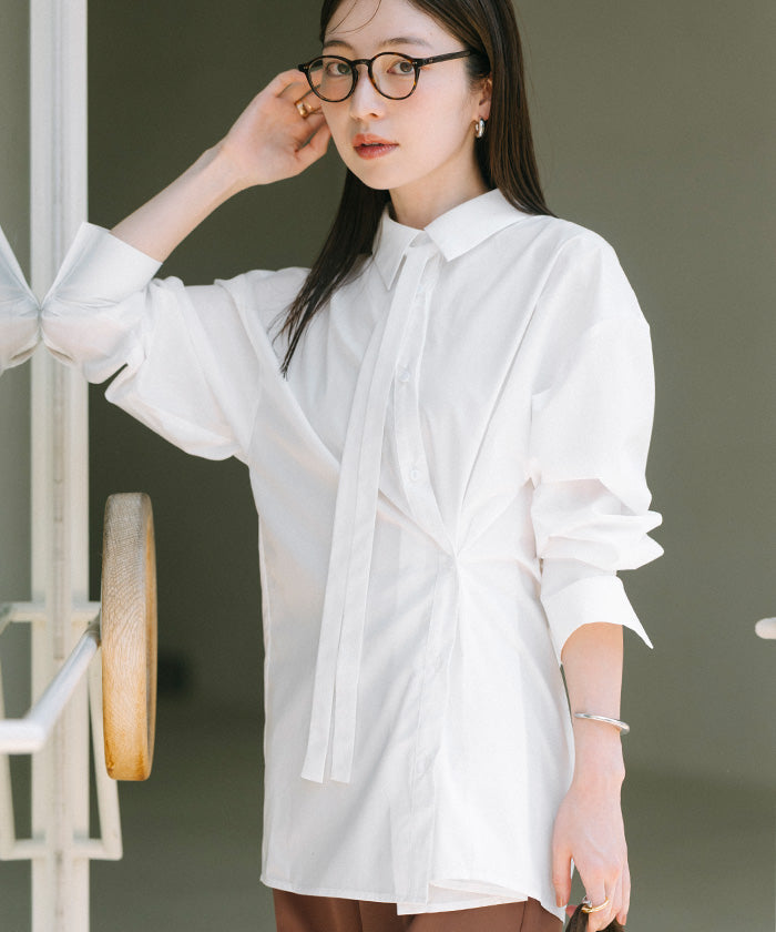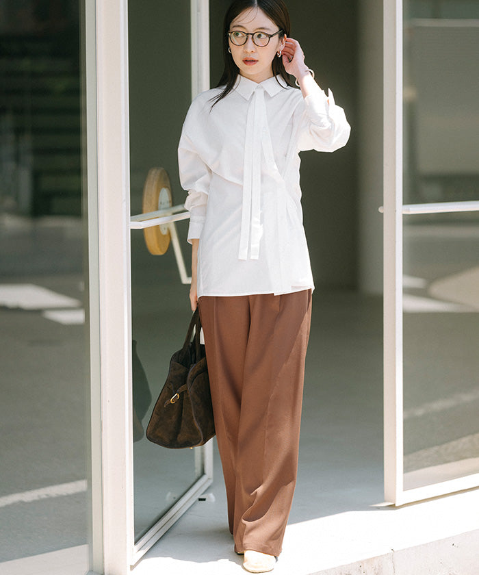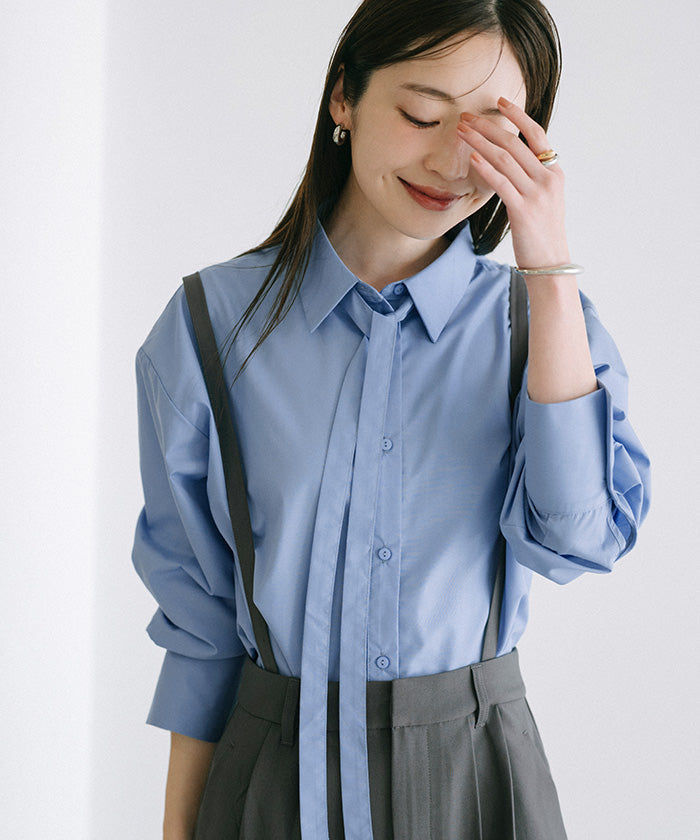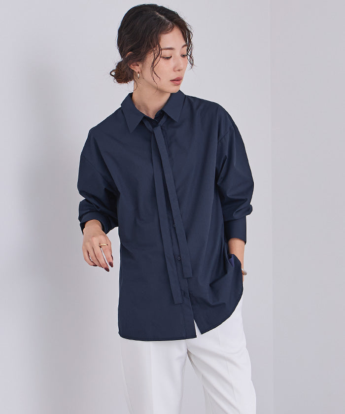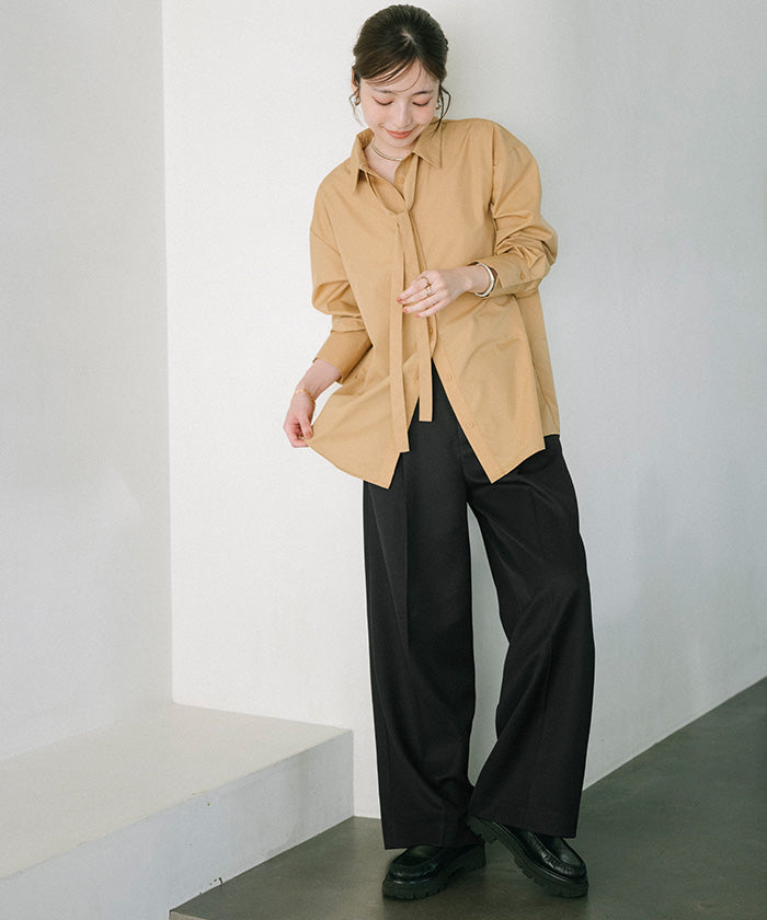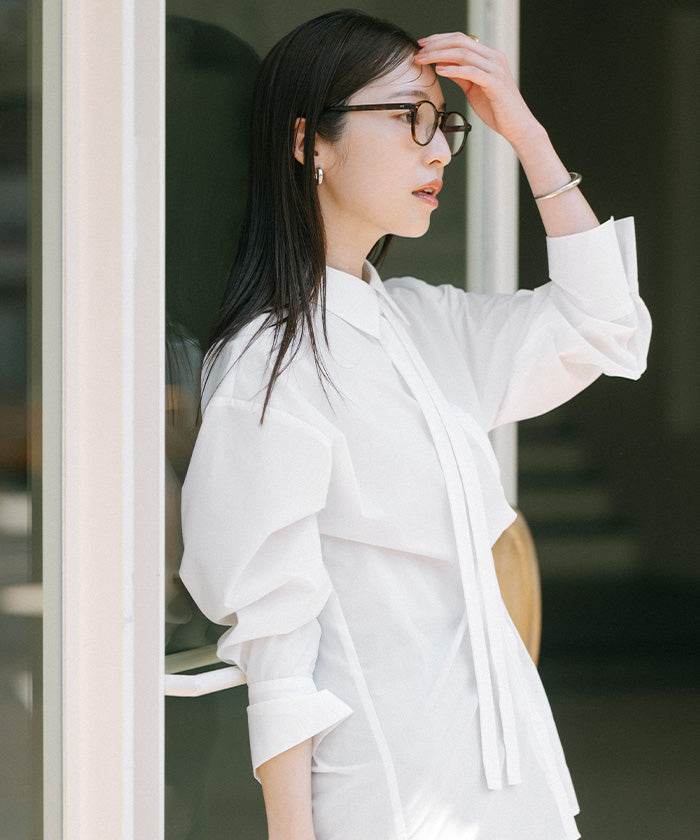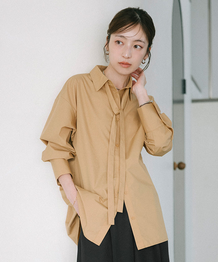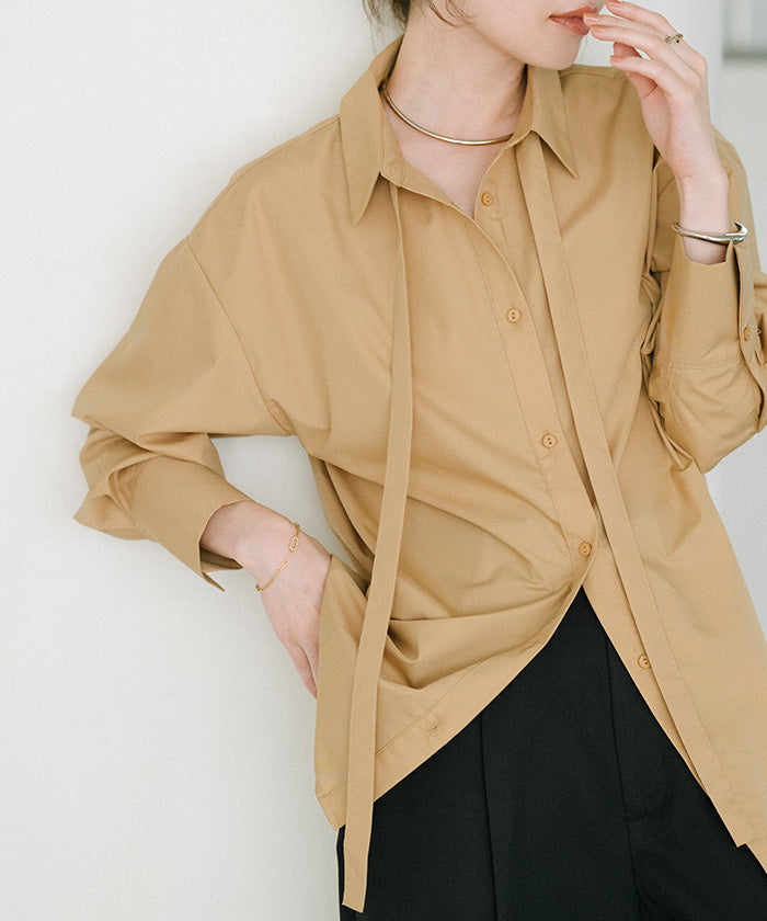 適度寬鬆的放鬆剪裁魅力的蝴蝶結領襯衫。