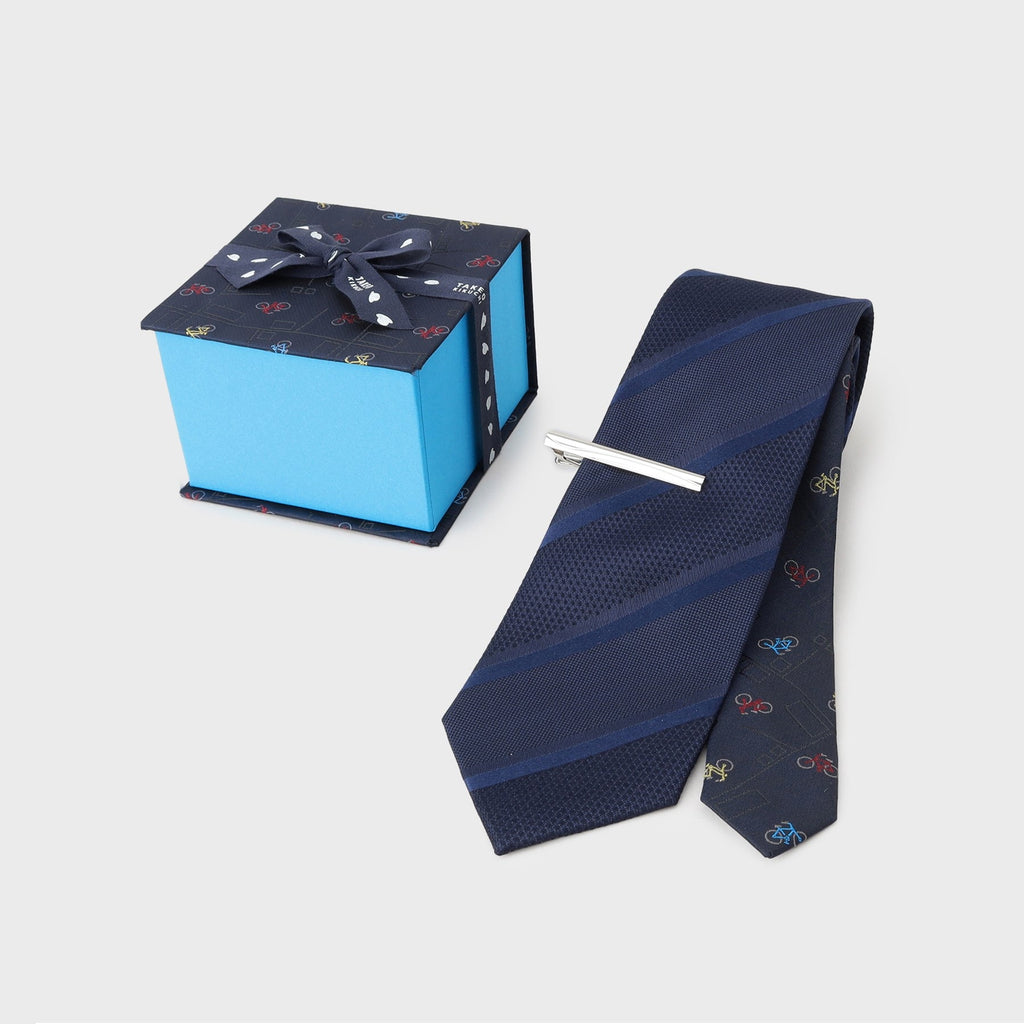 TAKEO KIKUCHI 【盒裝】經典陰影條紋 領帶&領帶夾