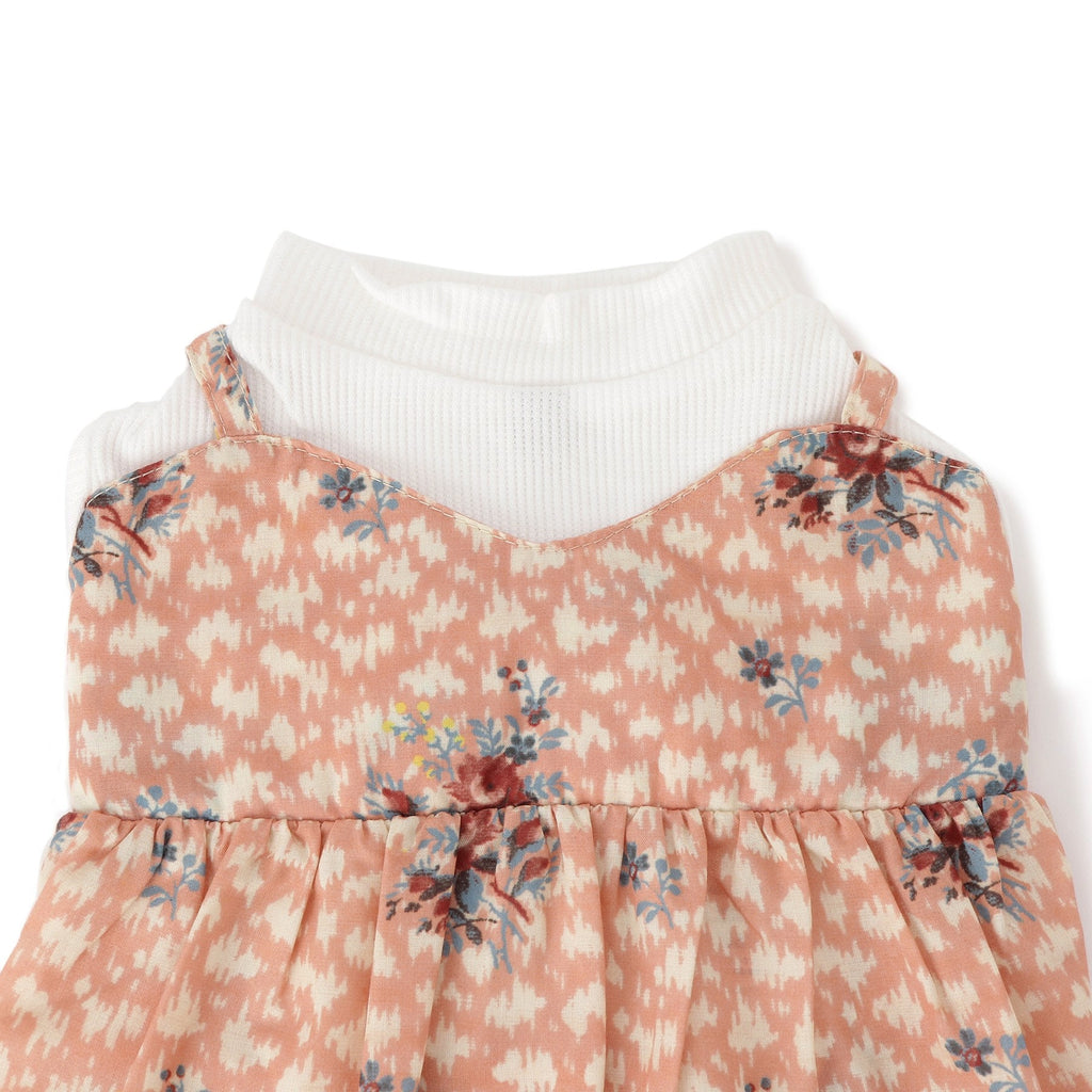 帶有花卉圖案的吊帶連衣裙的設計是一種休閒而又可愛的氛圍。