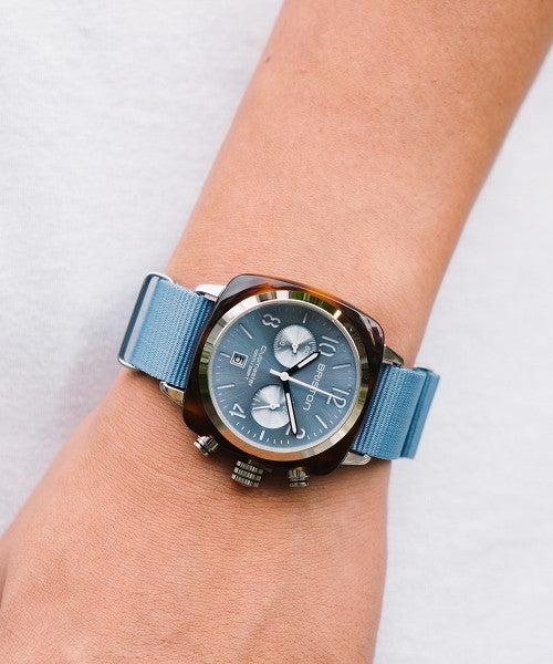 冰藍色的陽光射線表盤與可更換的NATO錶帶相結合的俱樂部大師經典,展現出永恆的風格。