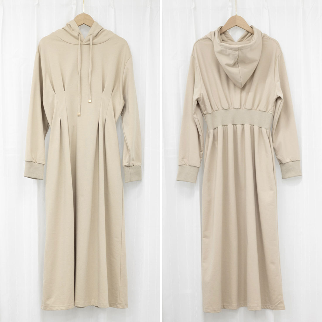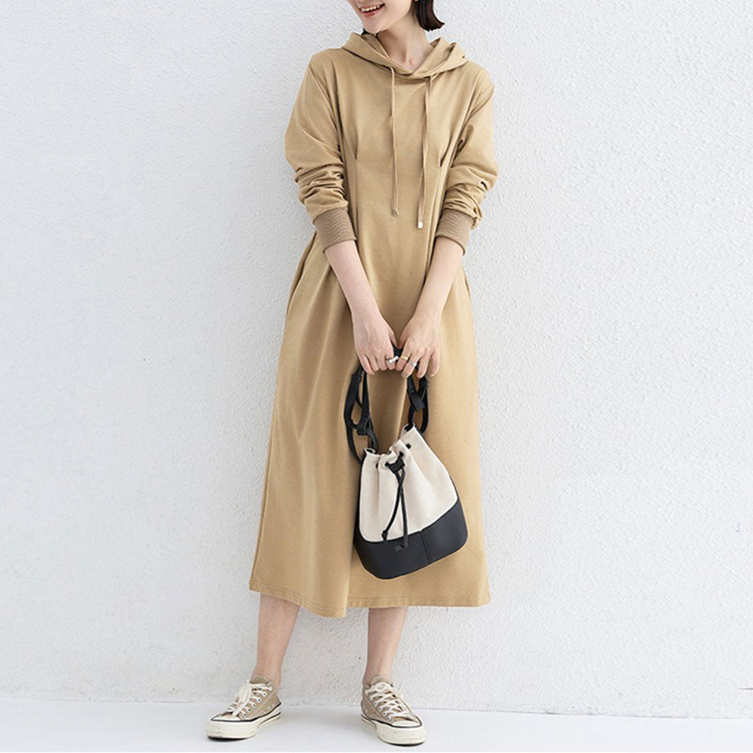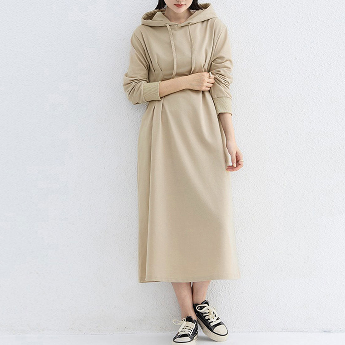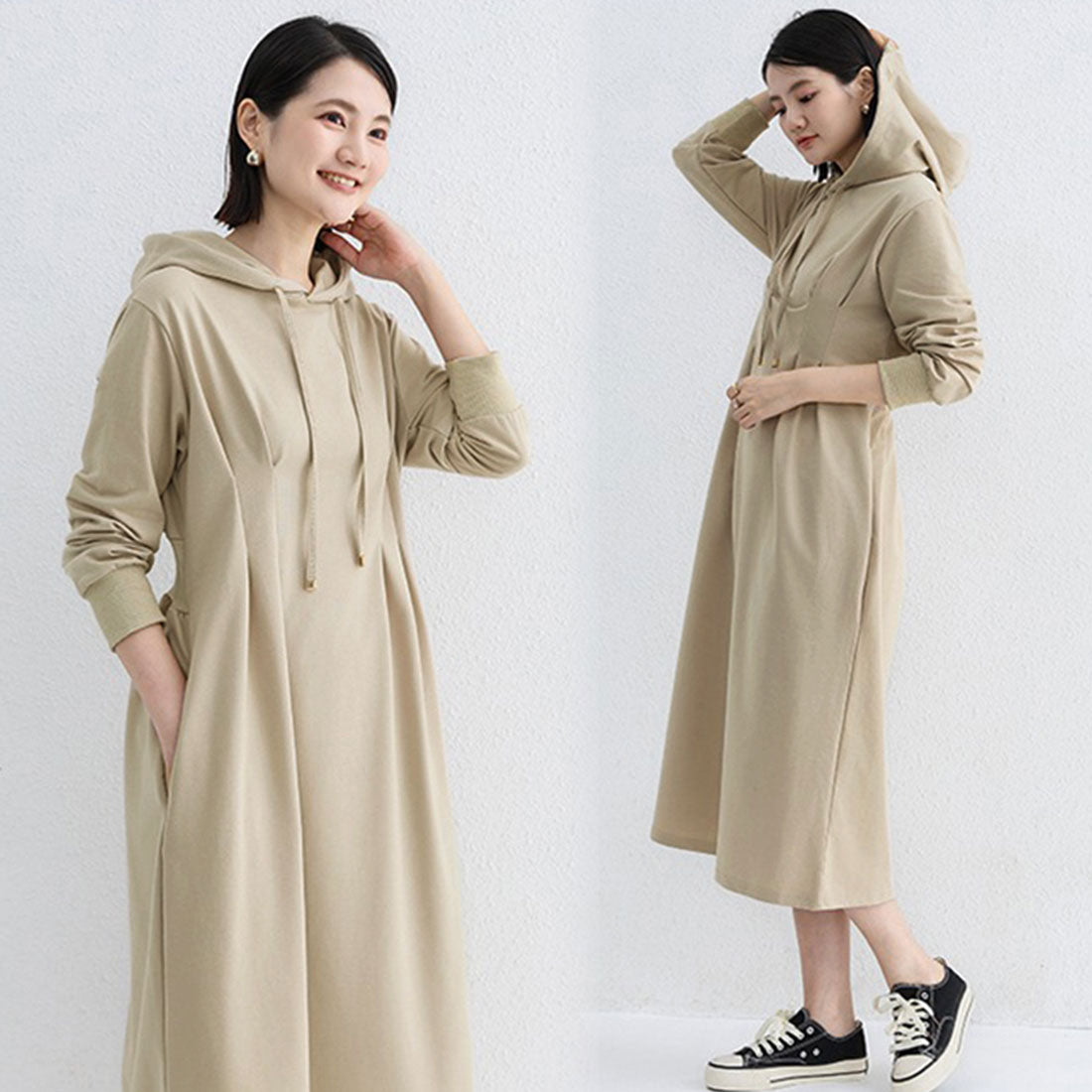 將外套的隨性與連衣裙的可愛完美融合的連帽衛衣裙。