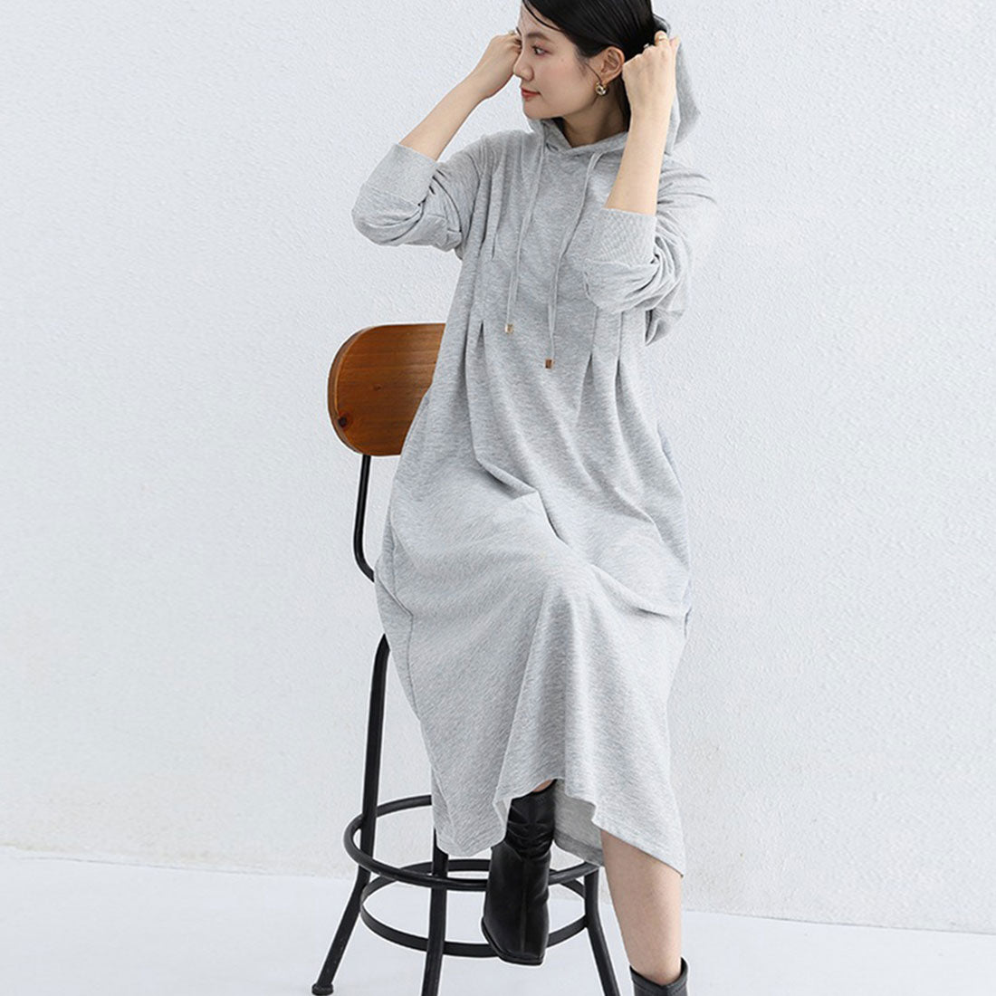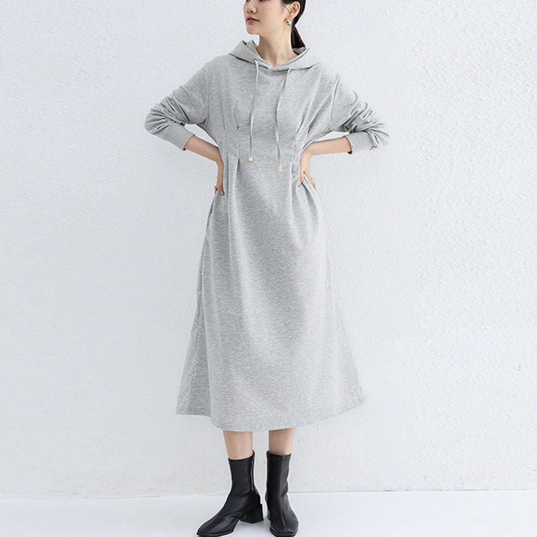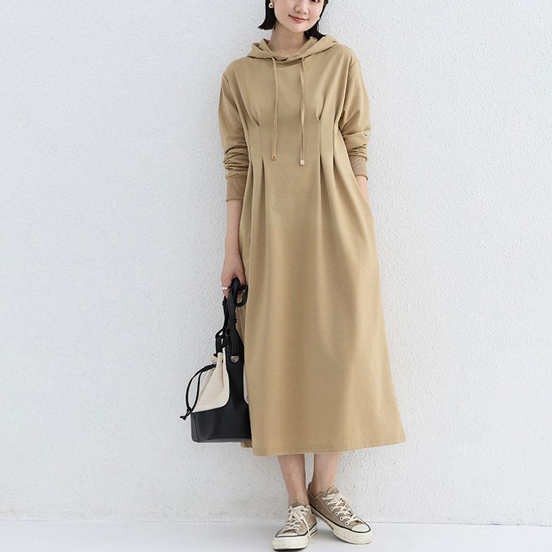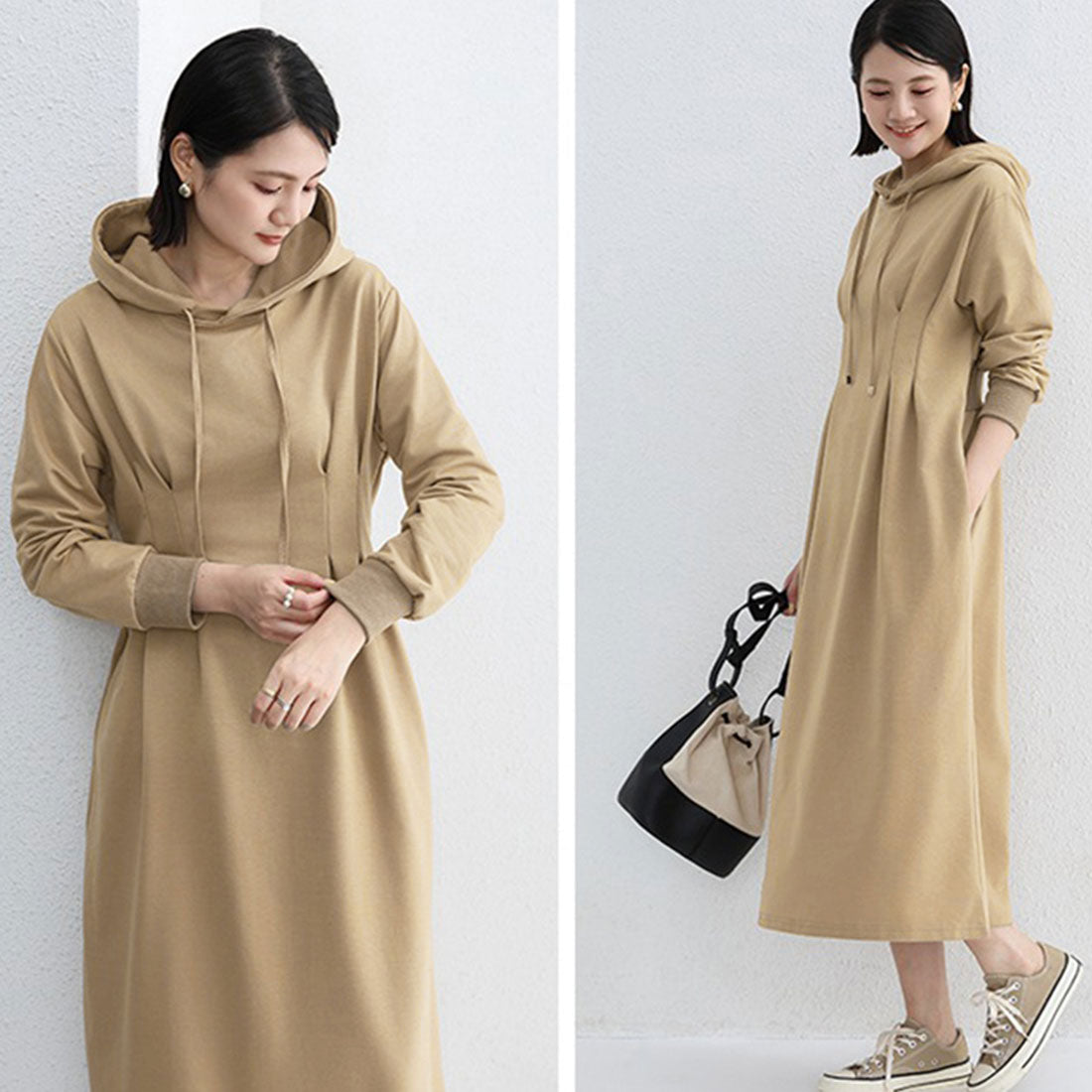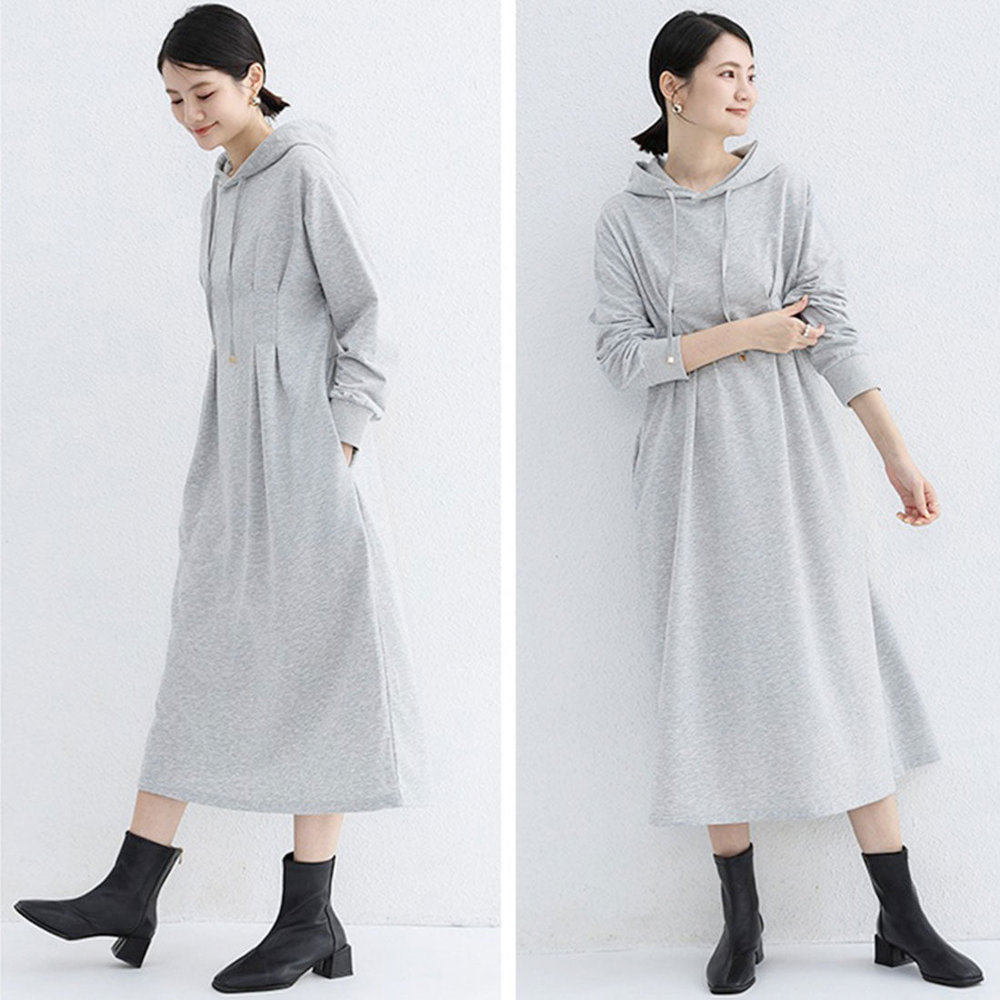 將外套的隨性與連衣裙的可愛完美融合的連帽衛衣裙。