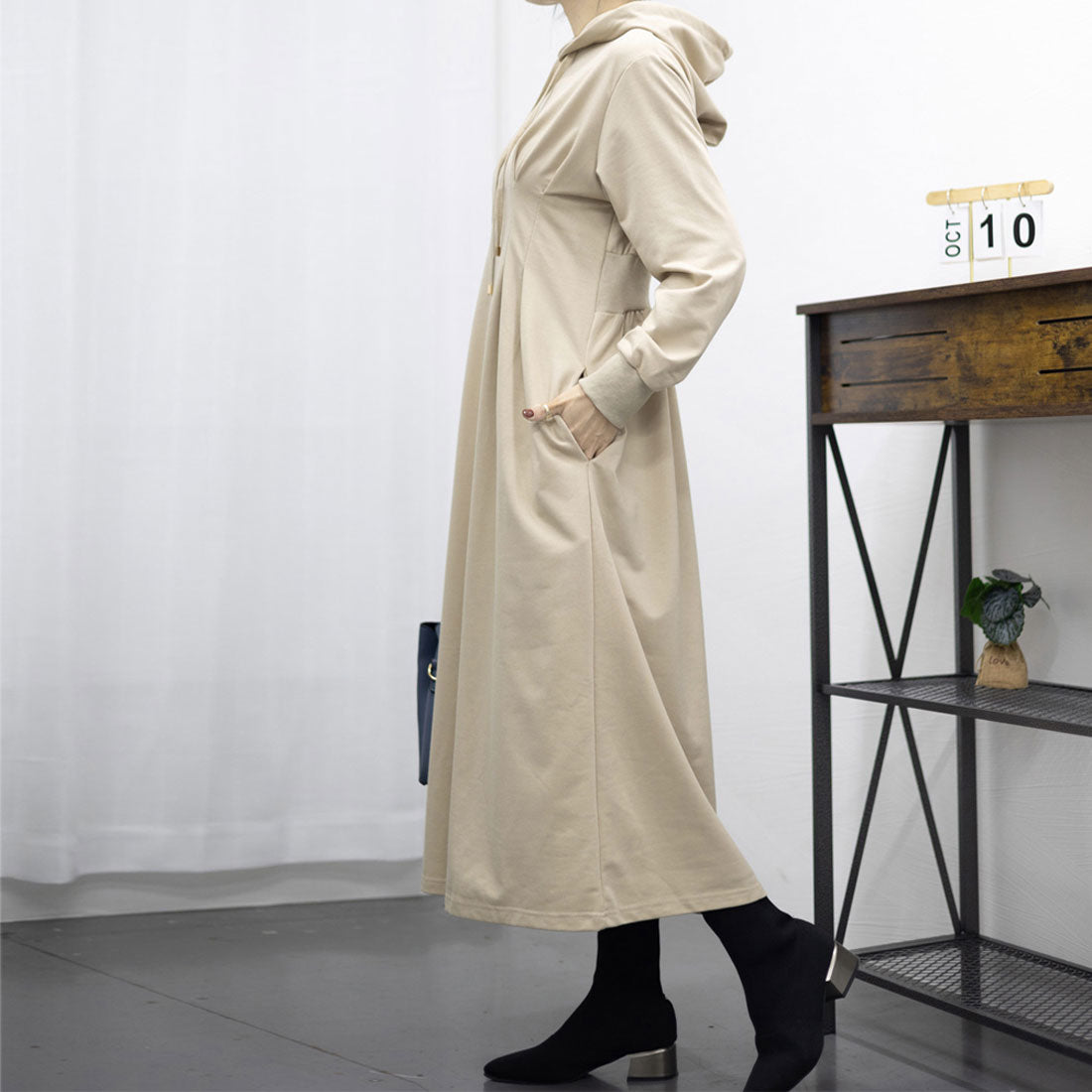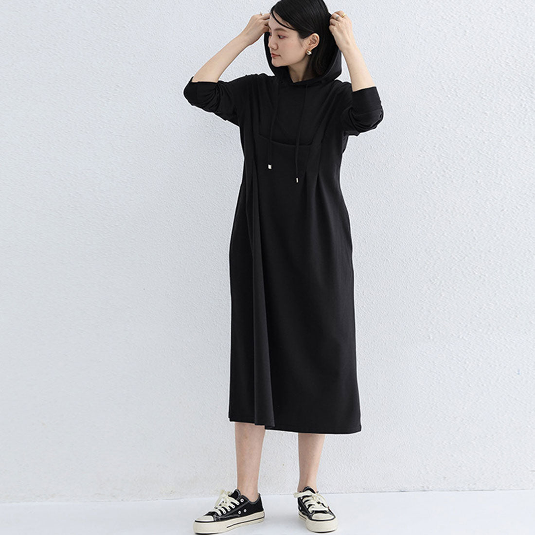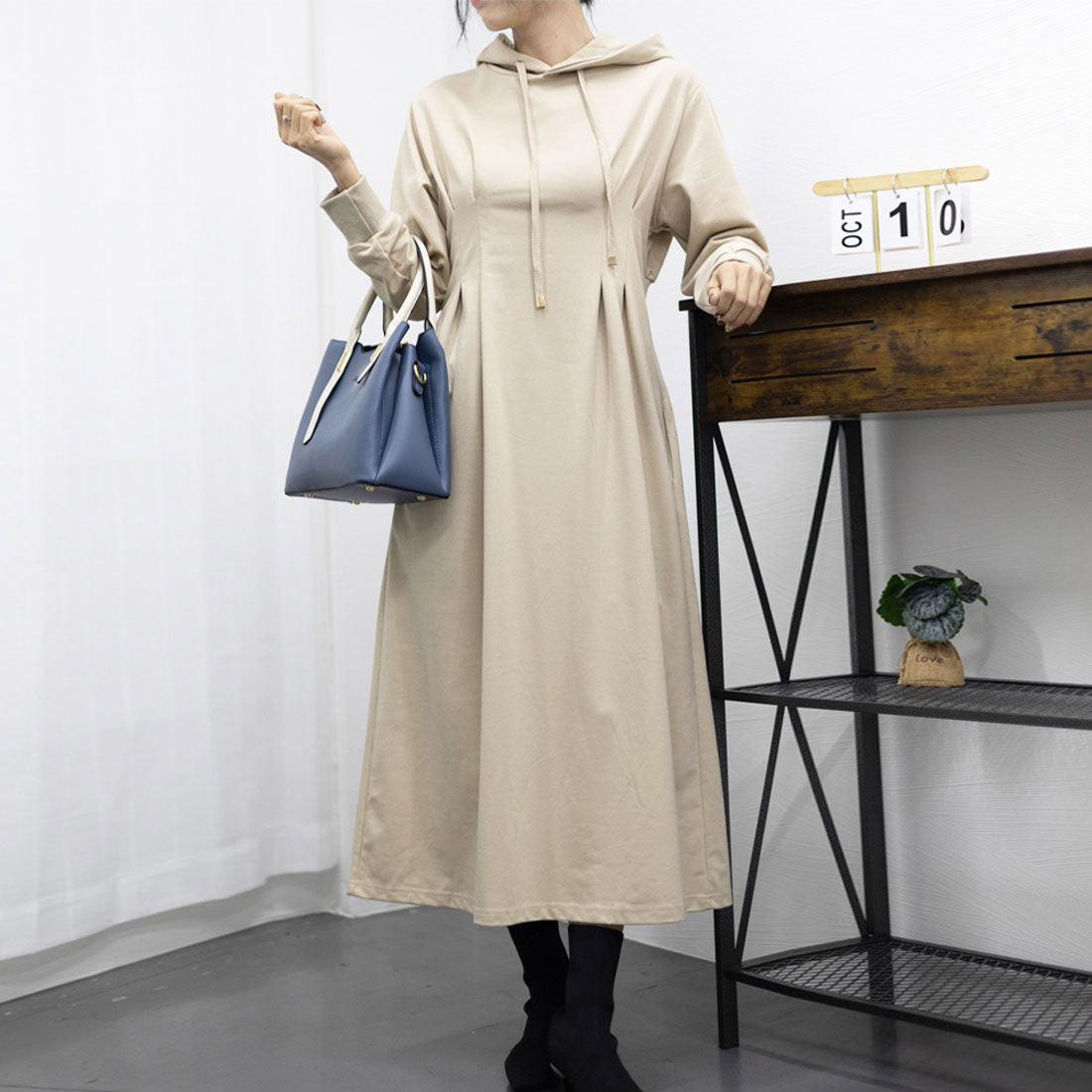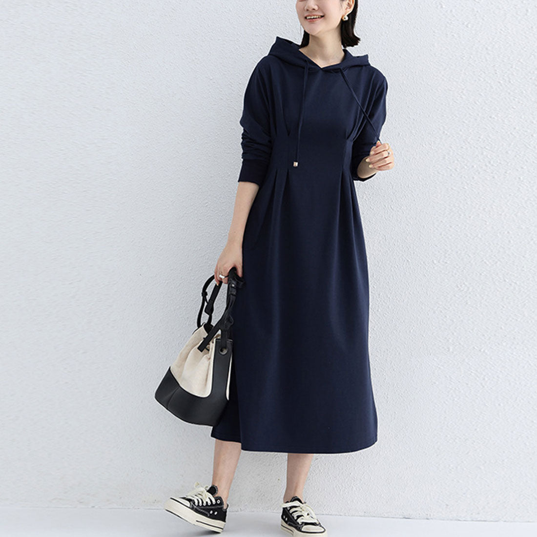 將外套的隨性與連衣裙的可愛完美融合的連帽衛衣裙。